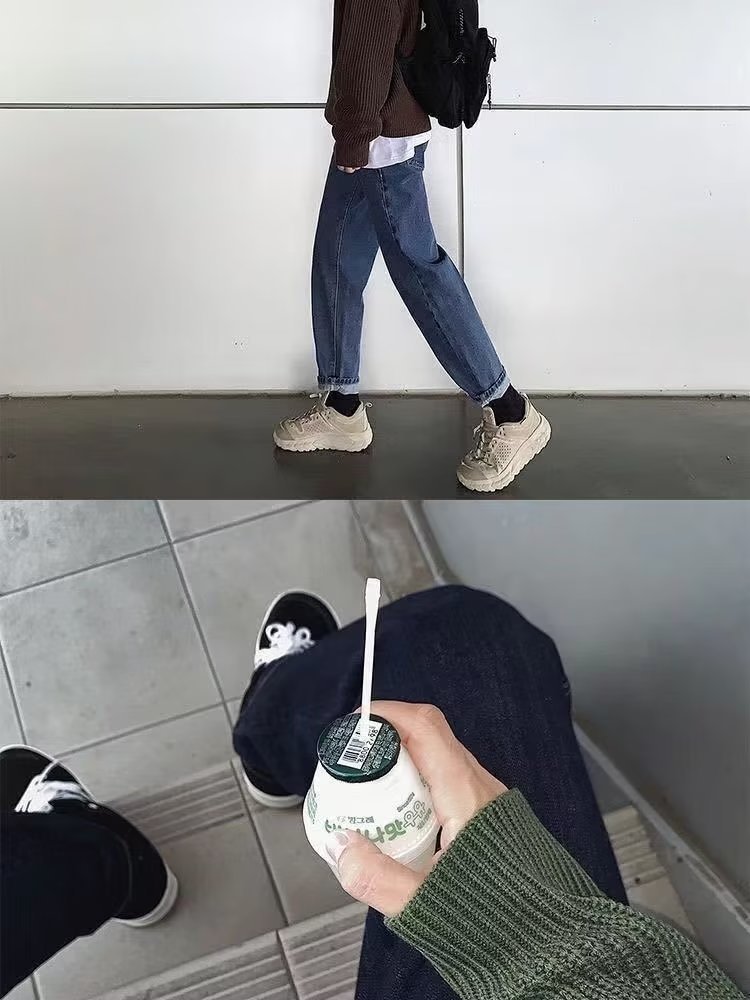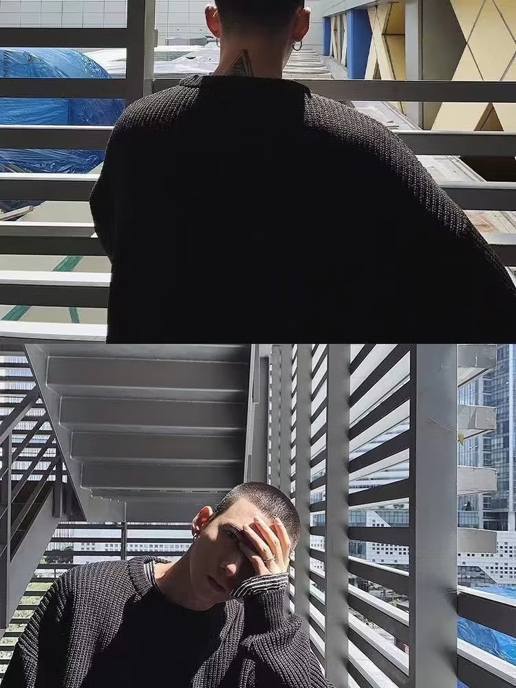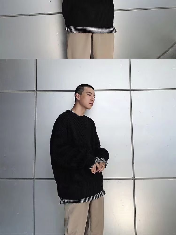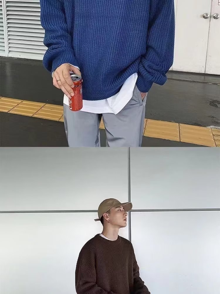 가을과 겨울 트렌디 한 브랜드 솔리드 컬러 내부 라운드 넥 스웨터 남자 한국 스타일 느슨한 캐주얼 레트로 트렌디 한 스웨터 탑