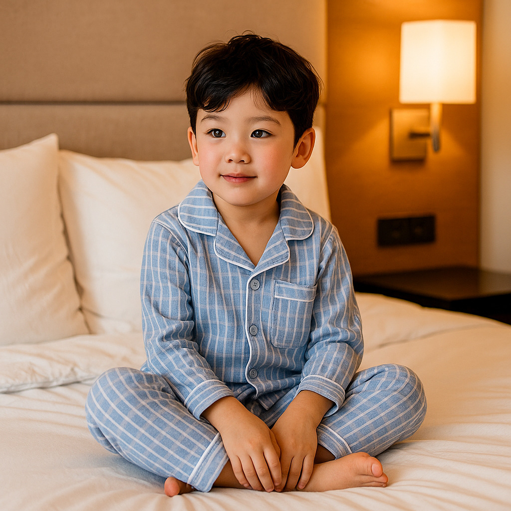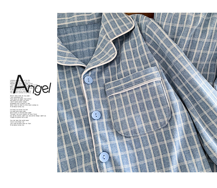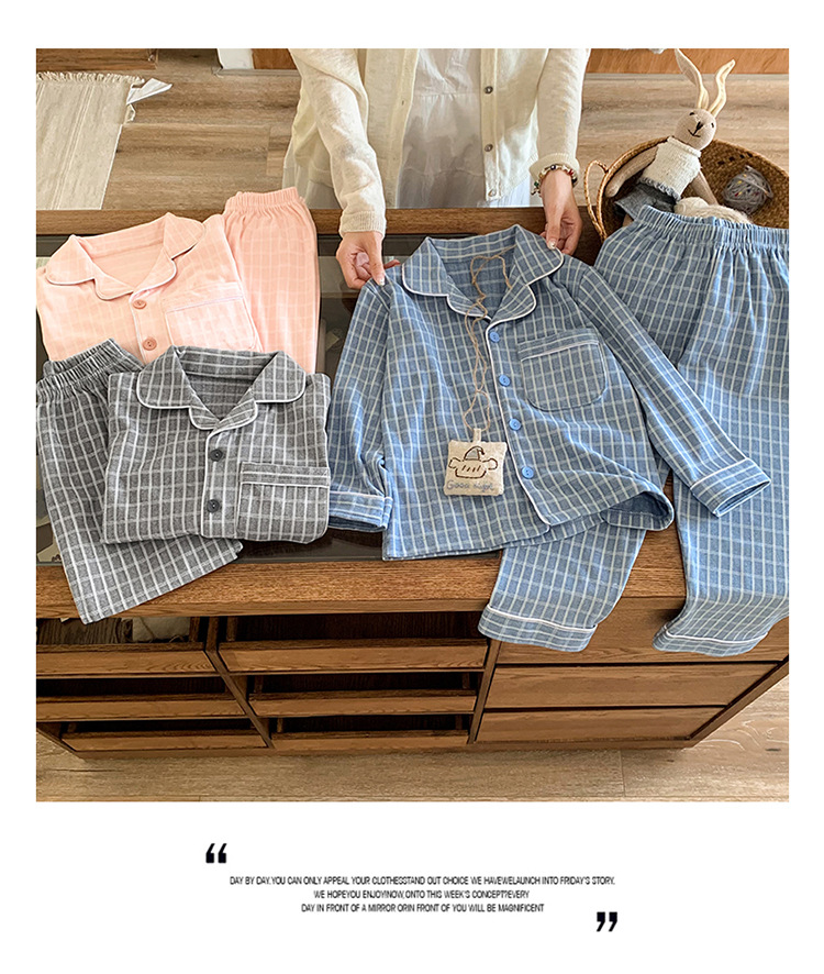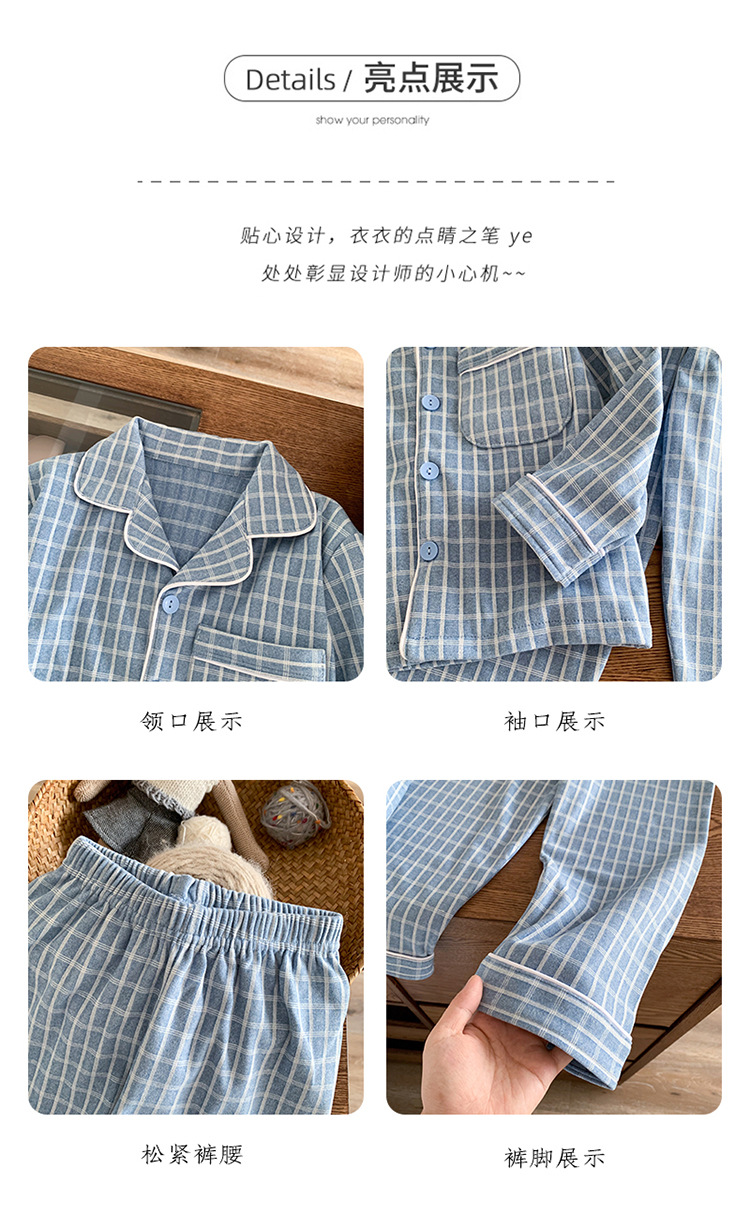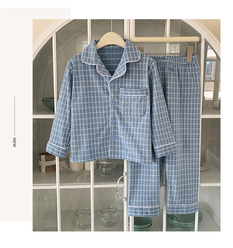 [무료 배송]] 가을 어린이 가정 의류 세트 소년과 소녀 긴팔 바지 간단한 옷깃 격자 무늬 잠옷