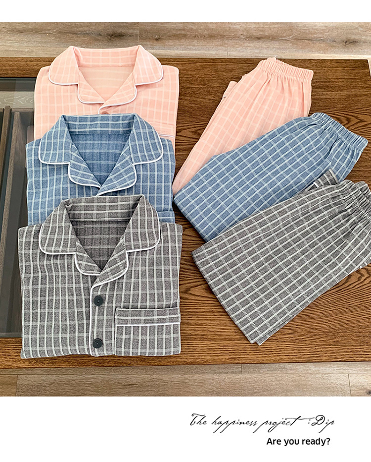 [무료 배송]] 가을 어린이 가정 의류 세트 소년과 소녀 긴팔 바지 간단한 옷깃 격자 무늬 잠옷스토어 가기