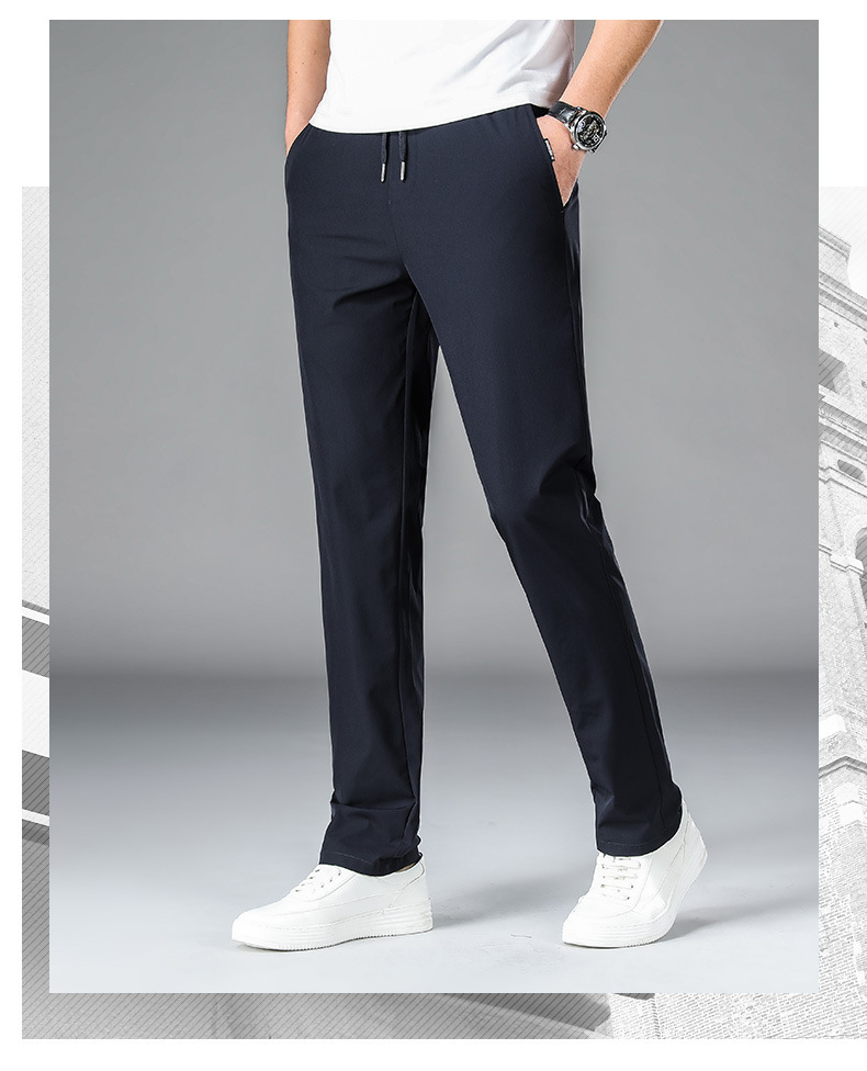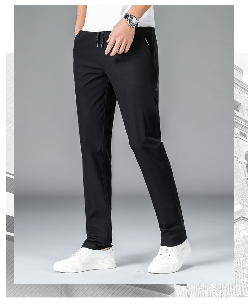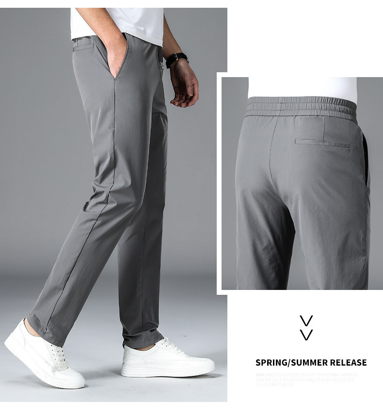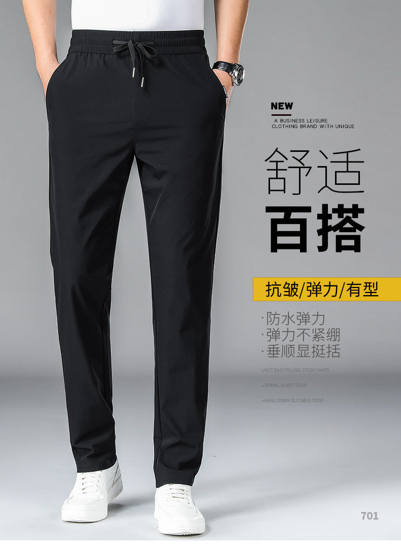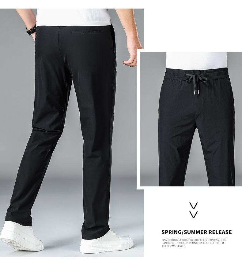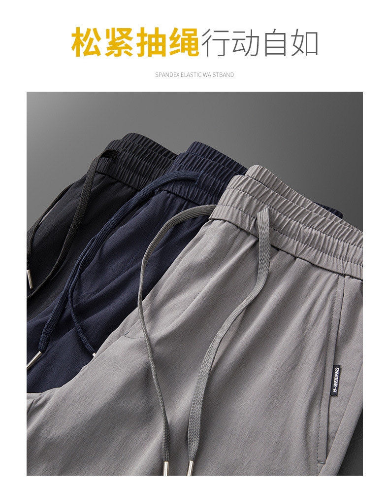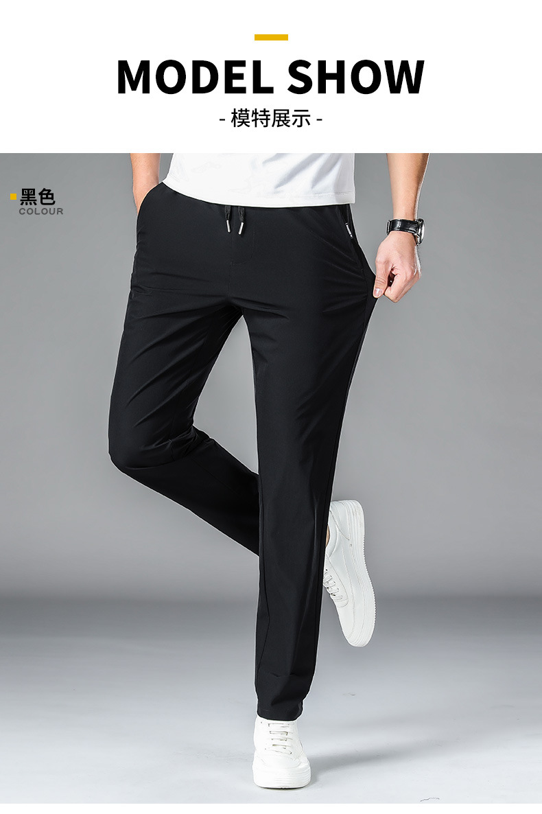 Weilong 의류 아이스 실크 바지 남자 바지 여름 얇은 스트레이트 느슨한 고탄성 빠른 건조 에어컨 바지 스포츠 캐주얼 바지