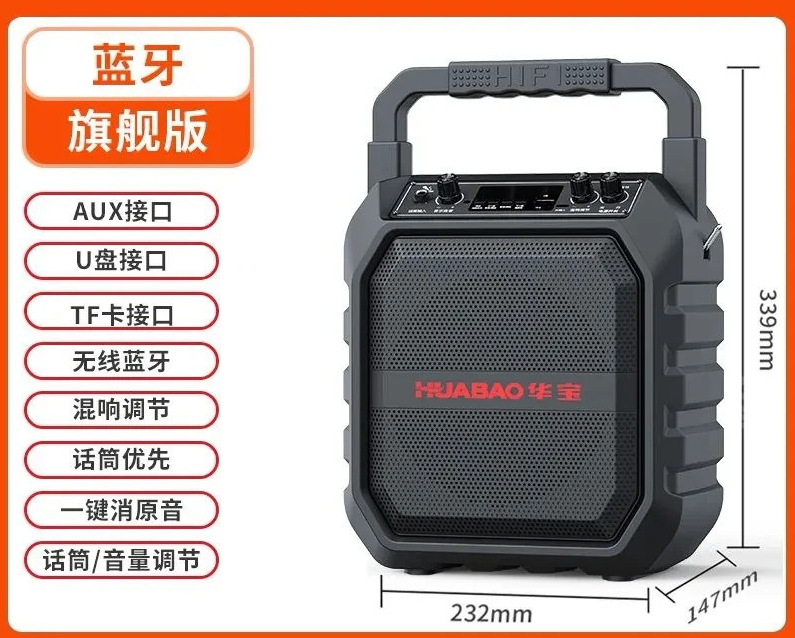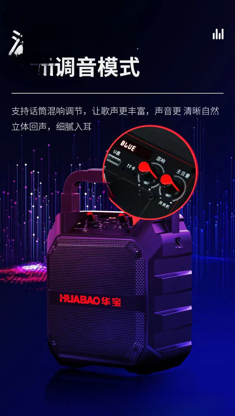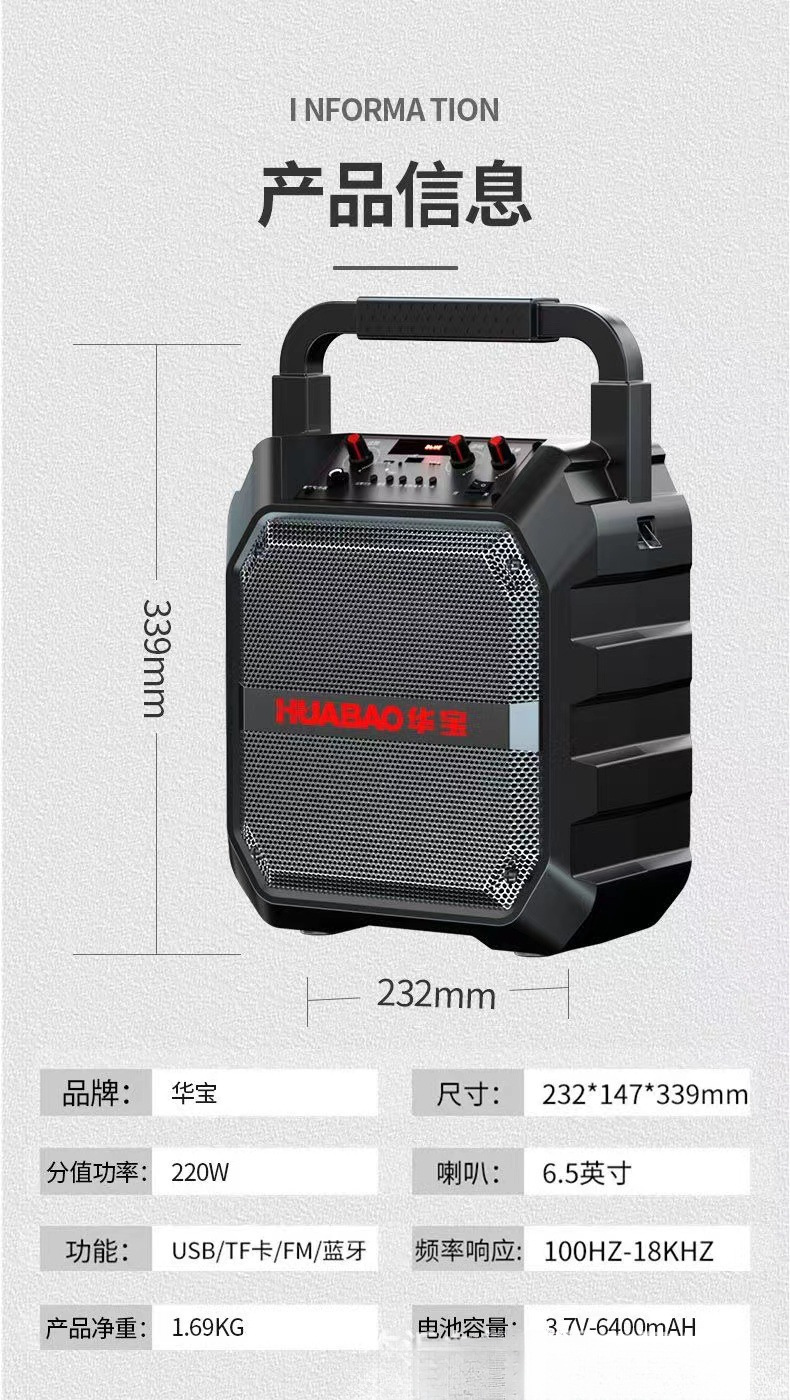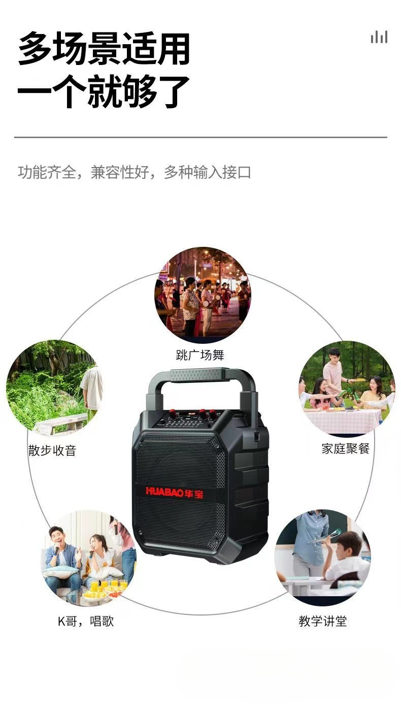 Huabao 무선 블루투스 스피커 대형 볼륨 스퀘어 댄스 휴대용 야외 휴대용 카드 홈 K-노래 오디오