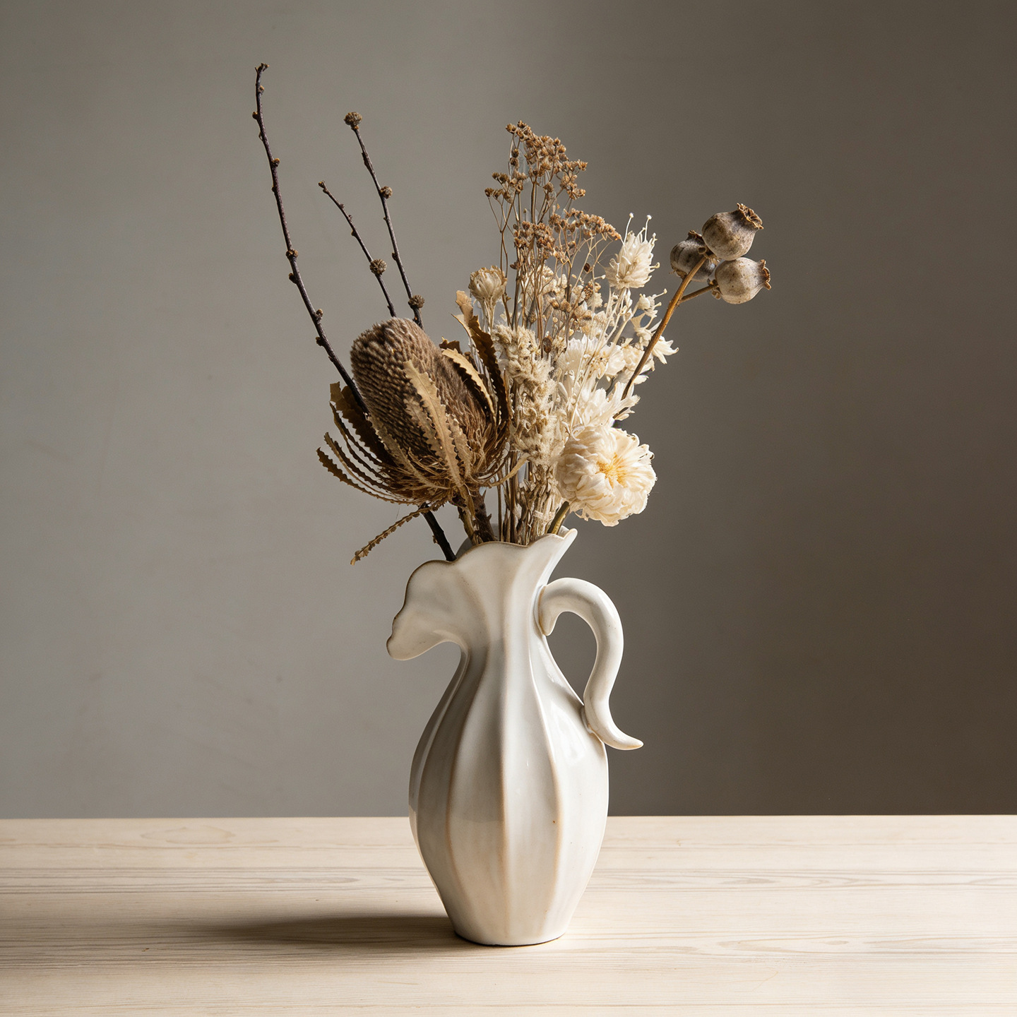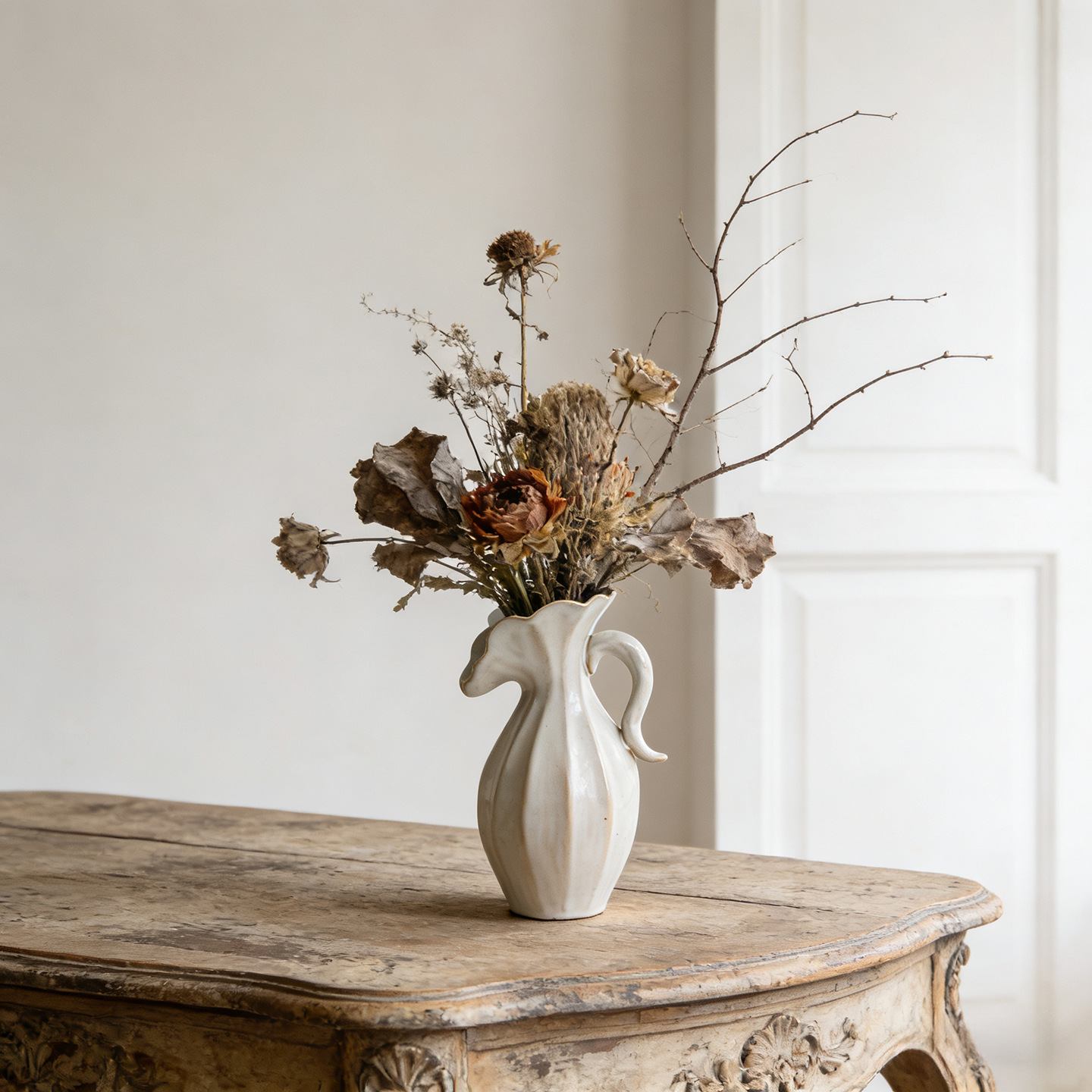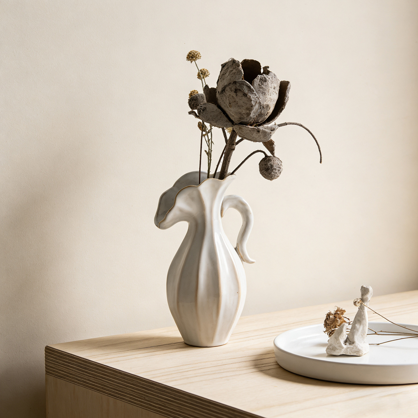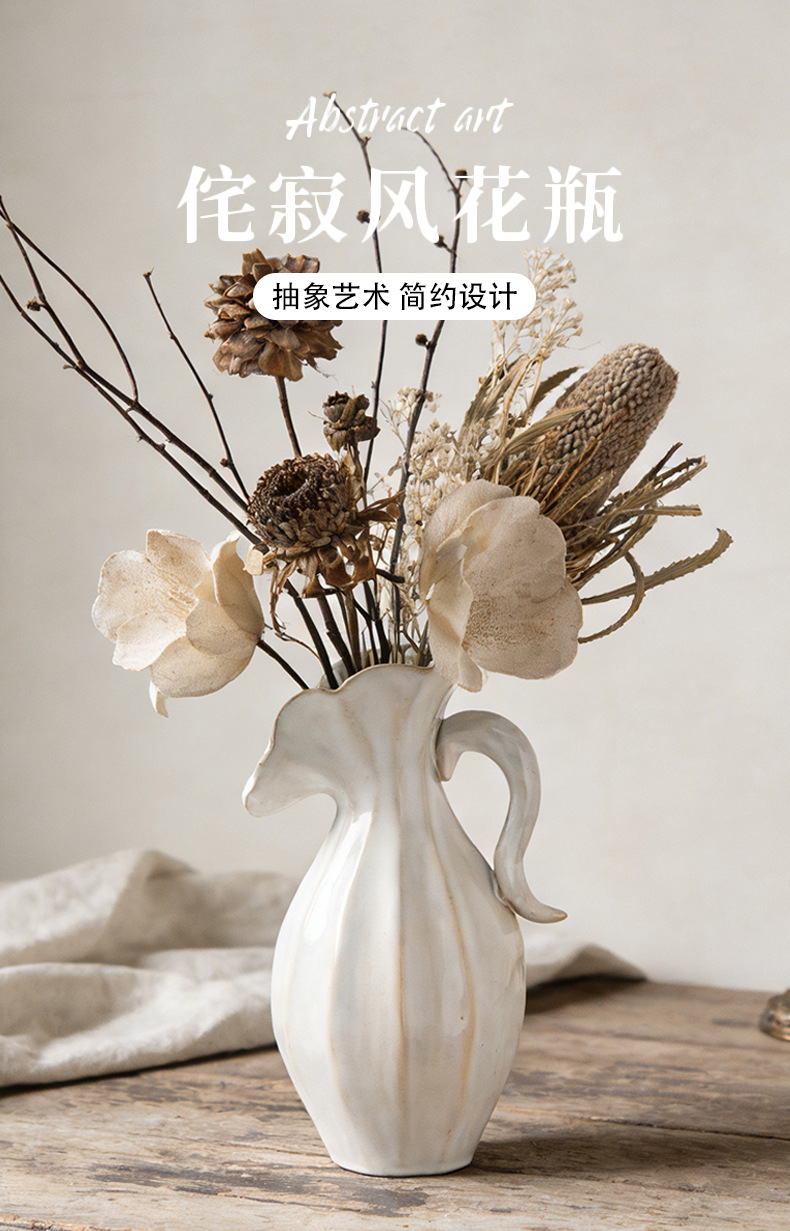 북유럽 크림 스타일 현대 세라믹 꽃병 장식 꽃 말린 꽃 거실 TV 캐비닛 수경 꽃은 외국 무역 교차 국경을 맞다스토어 가기