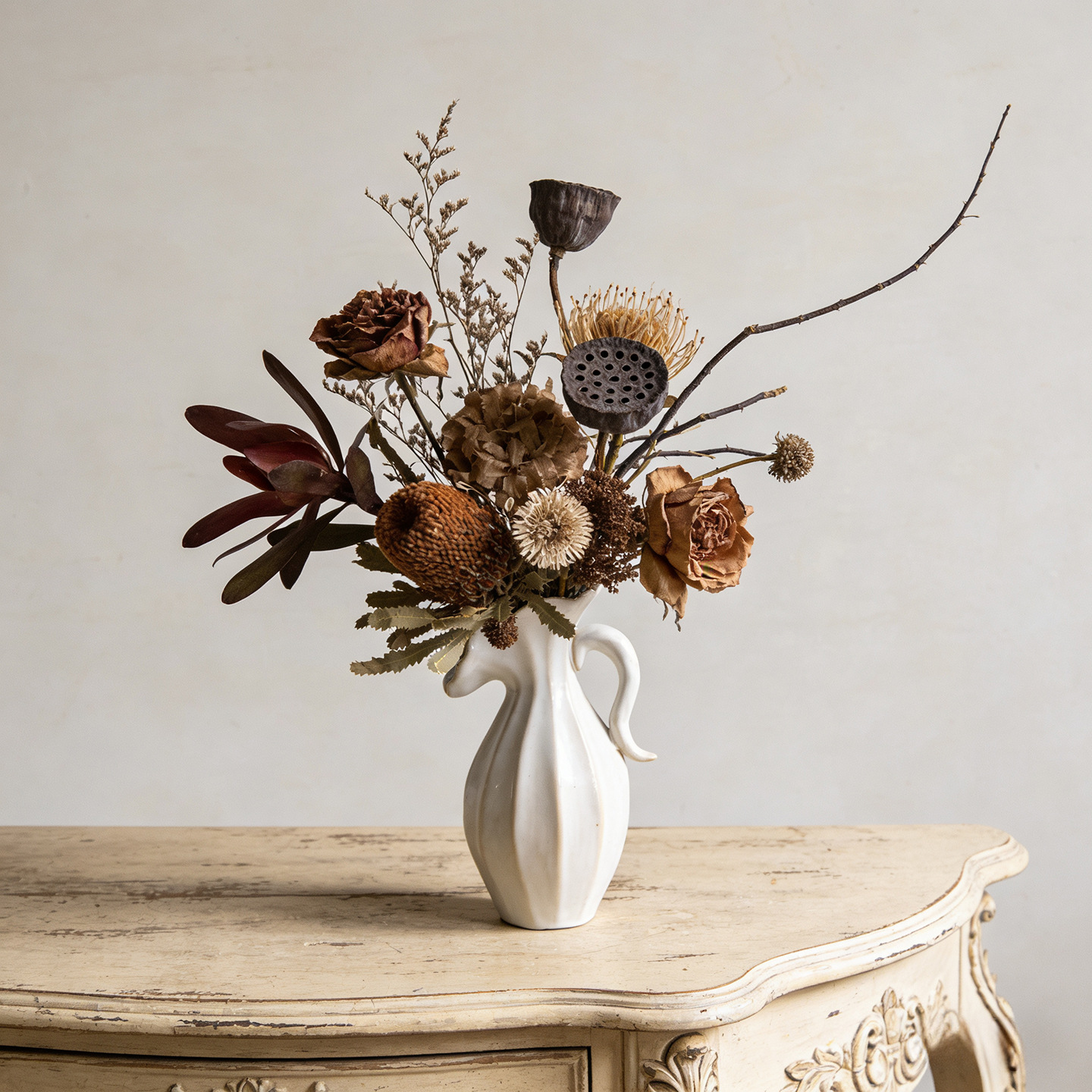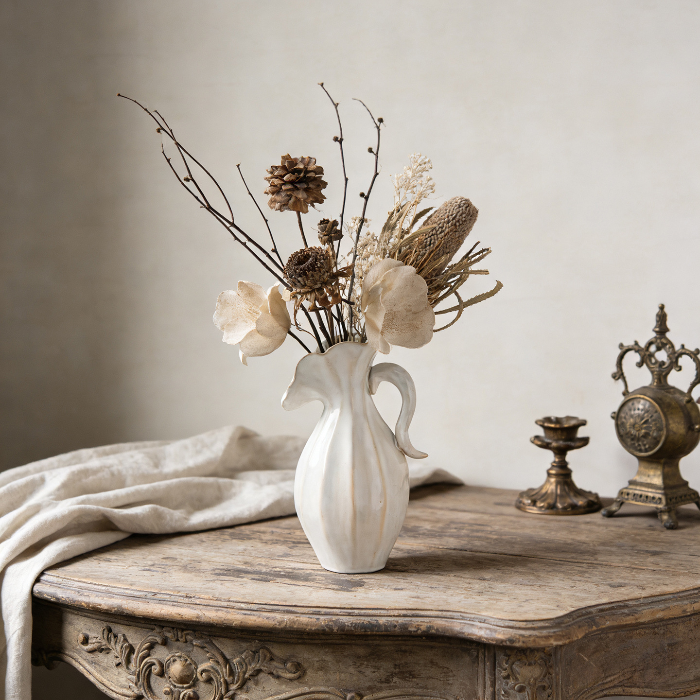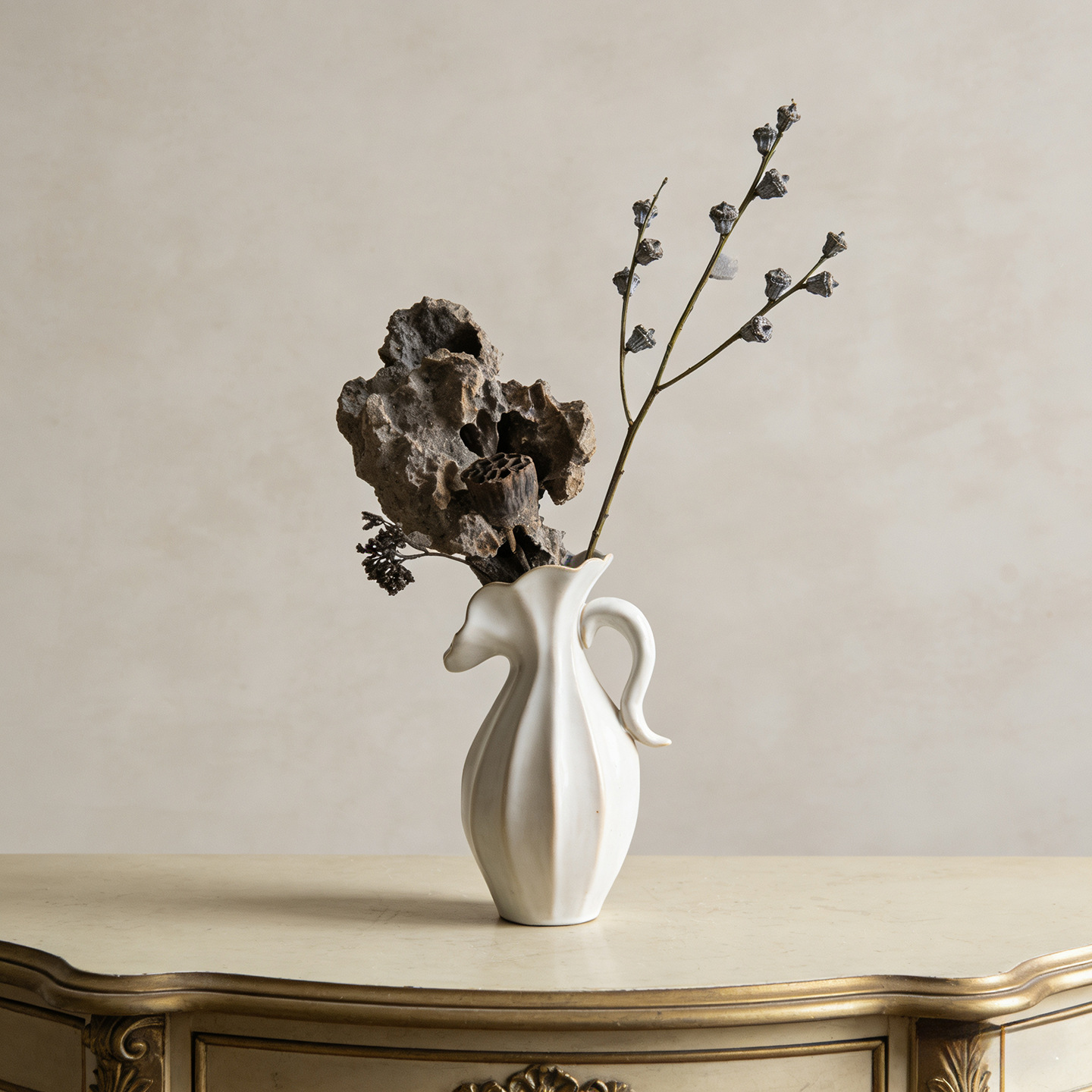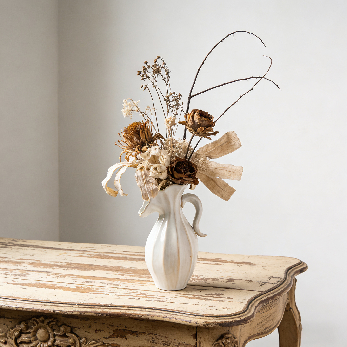 북유럽 크림 스타일 현대 세라믹 꽃병 장식 꽃 말린 꽃 거실 TV 캐비닛 수경 꽃은 외국 무역 교차 국경을 맞다스토어 가기