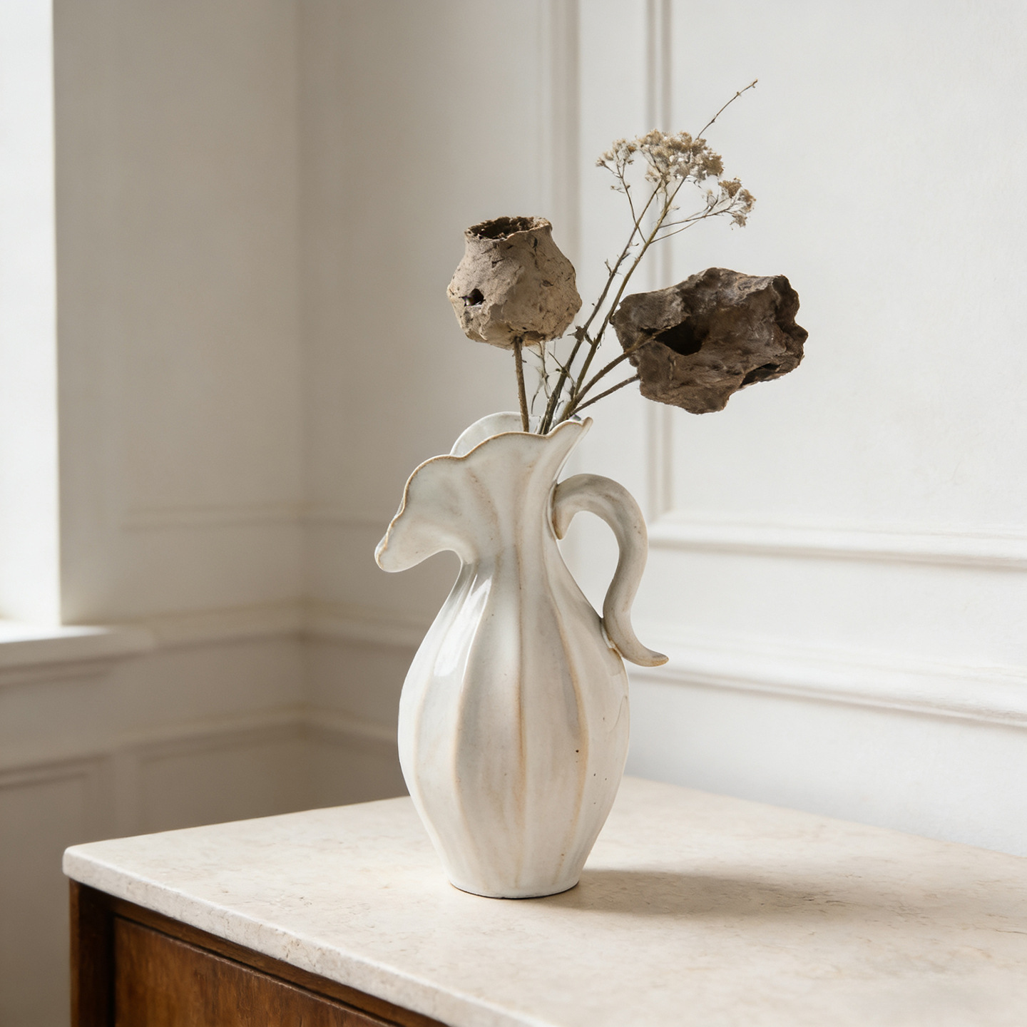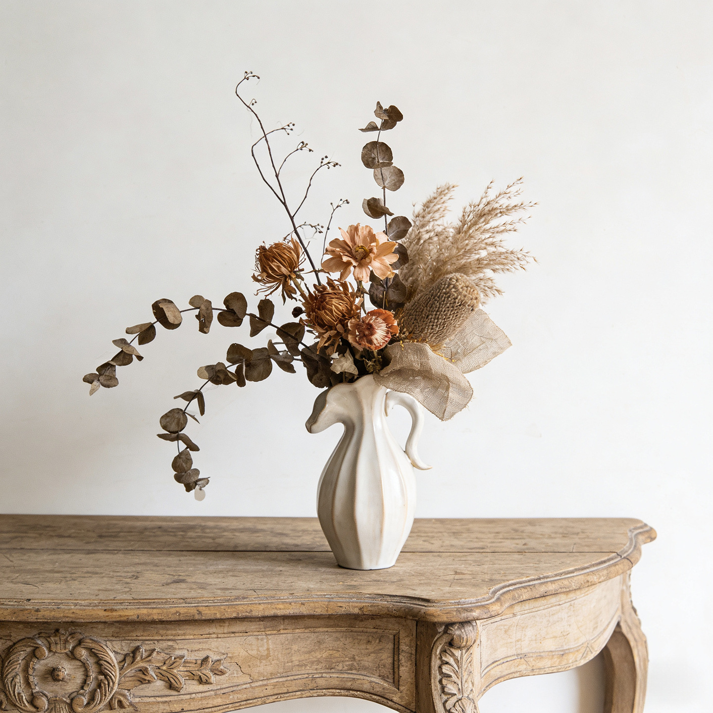 북유럽 크림 스타일 현대 세라믹 꽃병 장식 꽃 말린 꽃 거실 TV 캐비닛 수경 꽃은 외국 무역 교차 국경을 맞다
