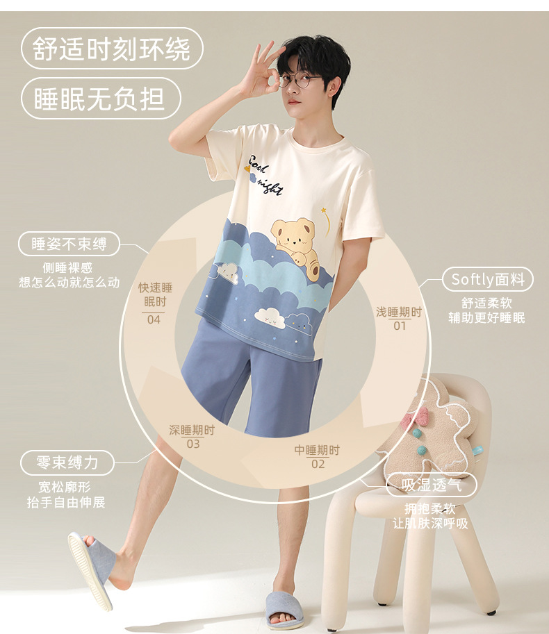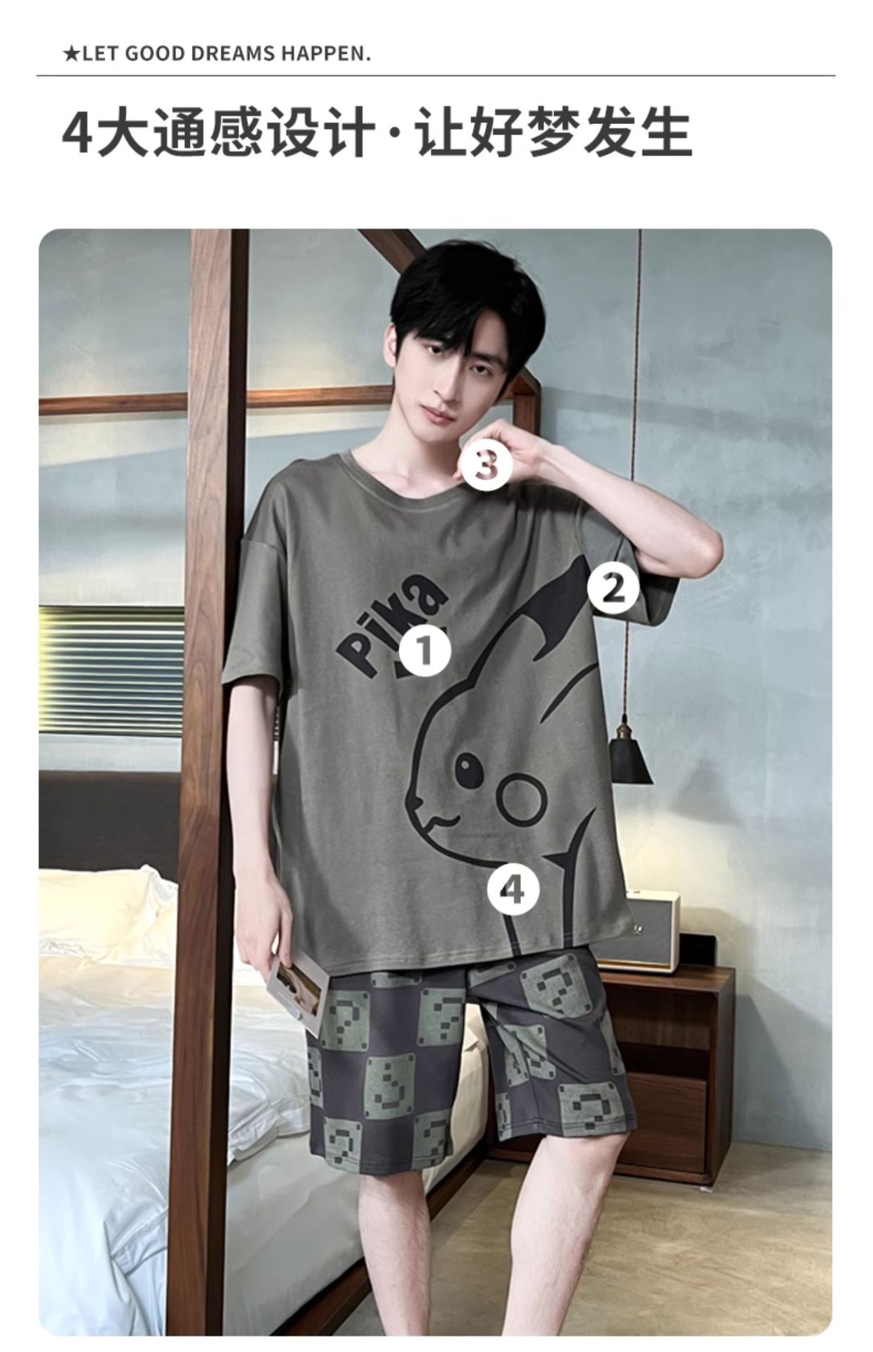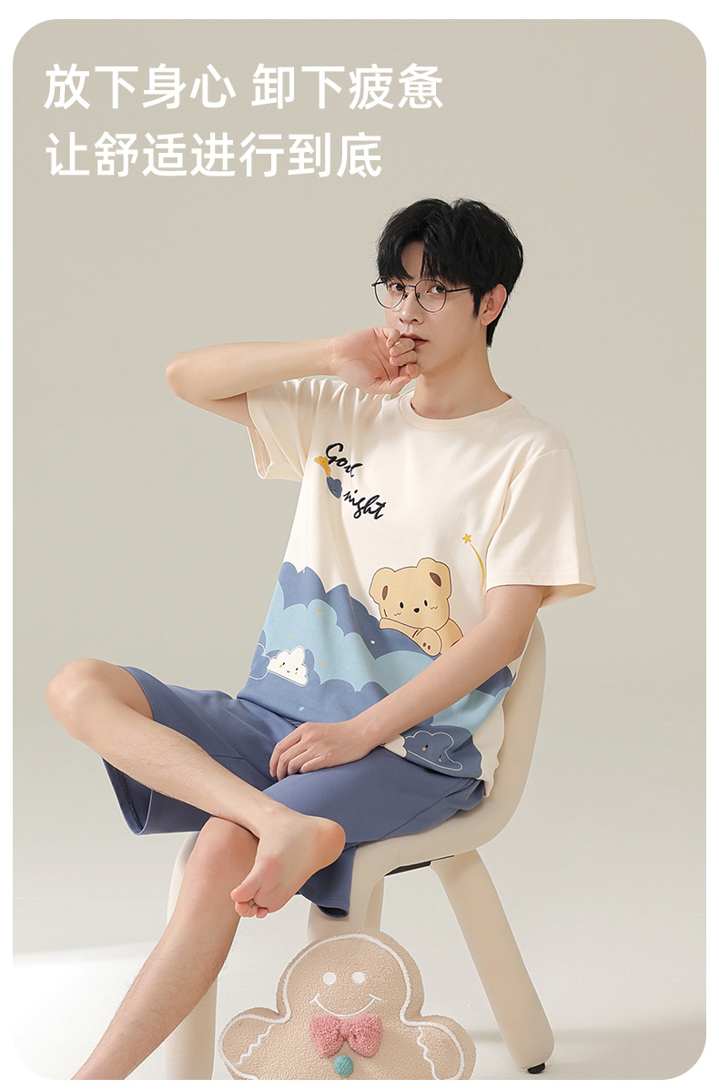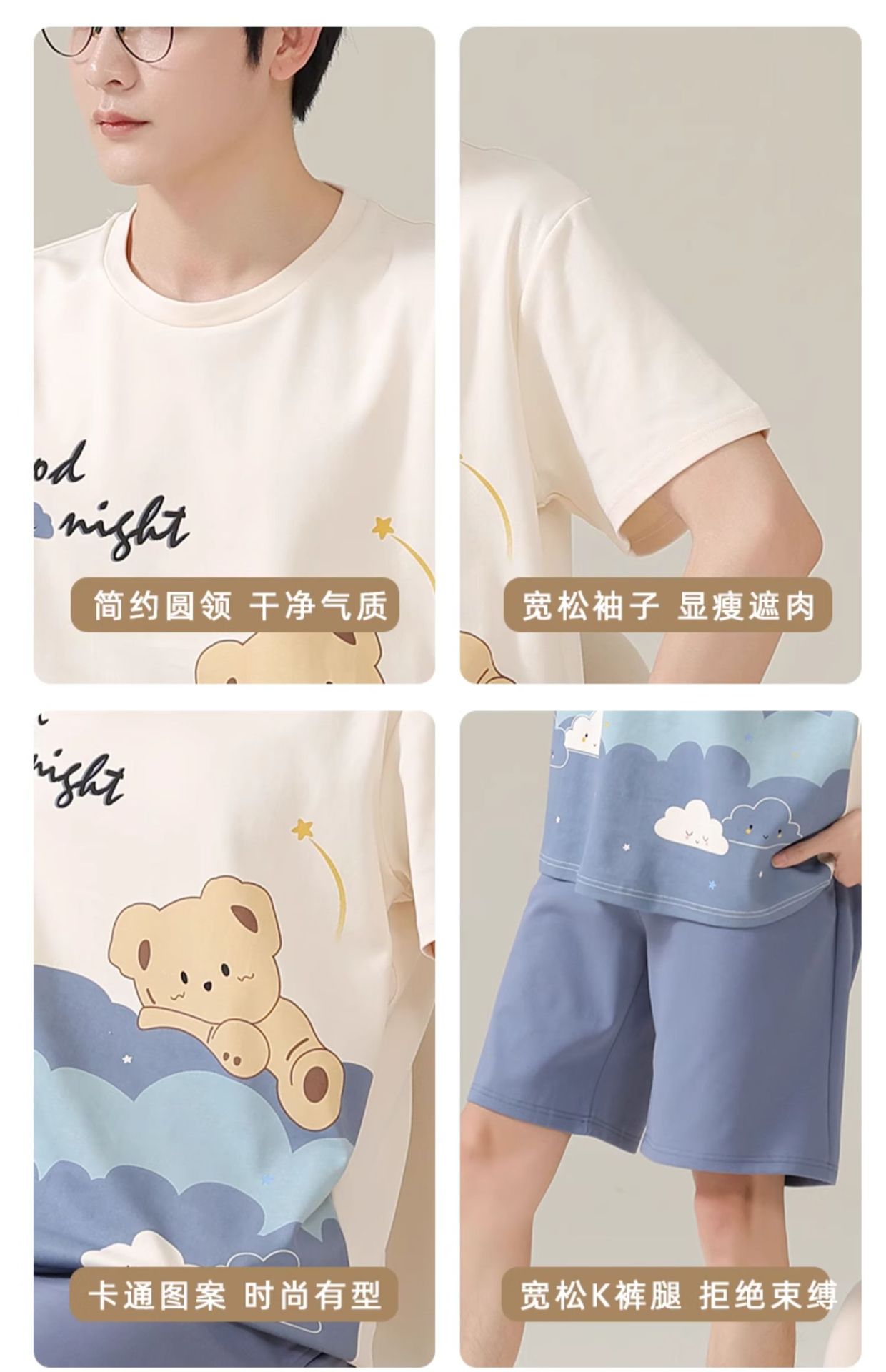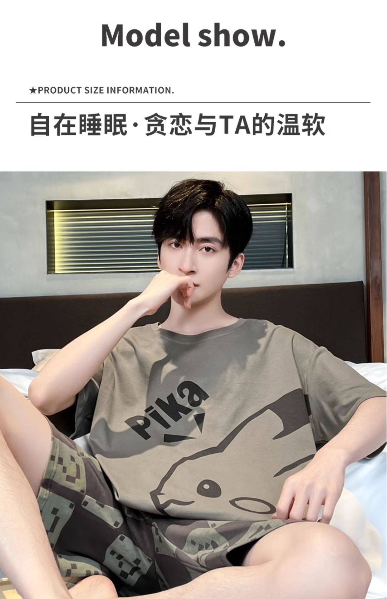 잠옷 남자 여름 2025 새로운 반팔 세트 여름 청소년 만화 기숙사 홈 의류 여름 세트스토어 가기
