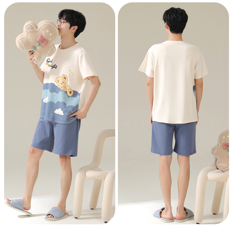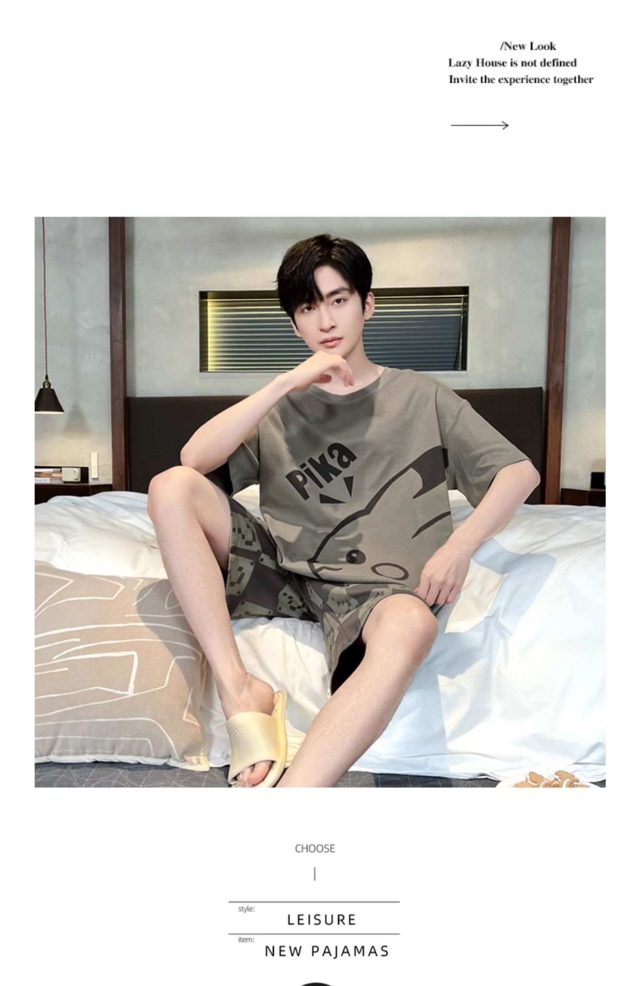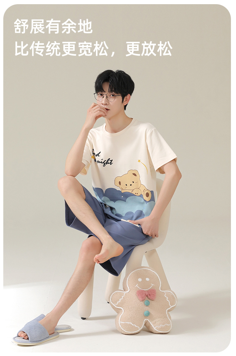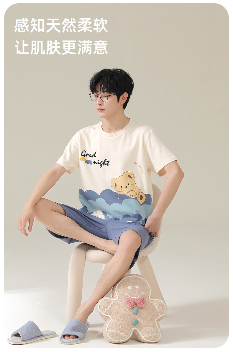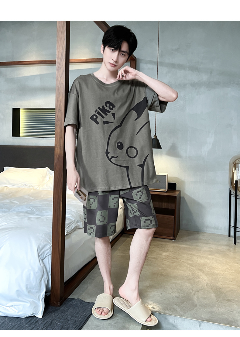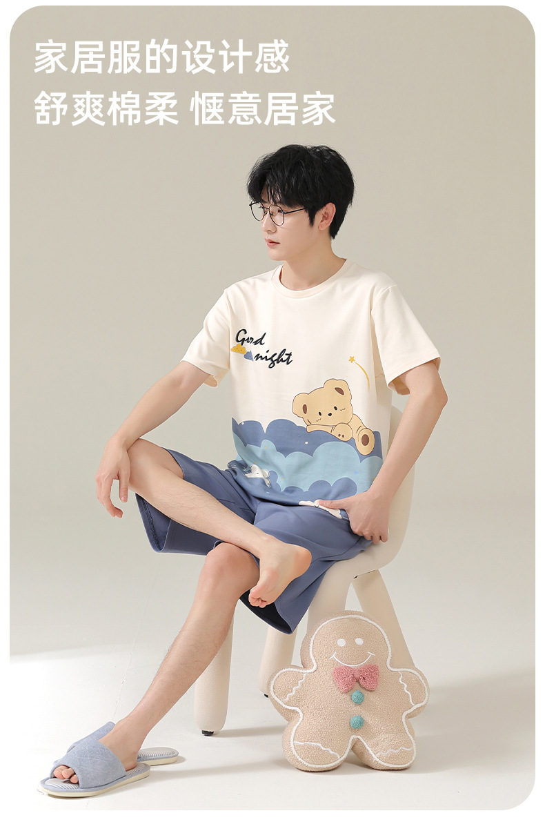 잠옷 남자 여름 2025 새로운 반팔 세트 여름 청소년 만화 기숙사 홈 의류 여름 세트스토어 가기