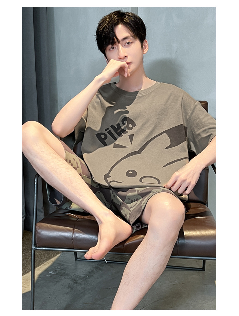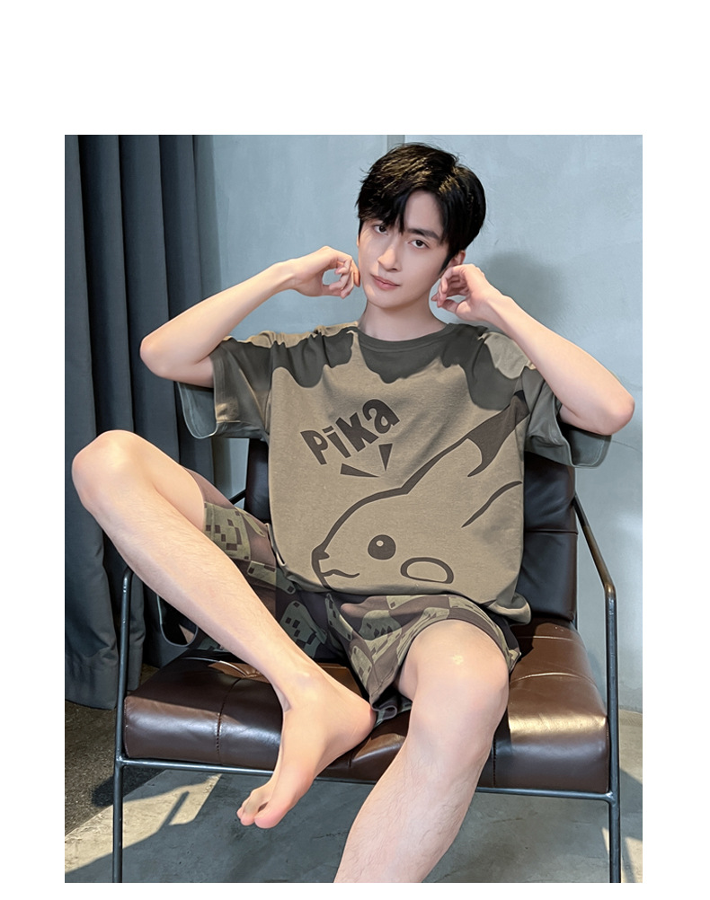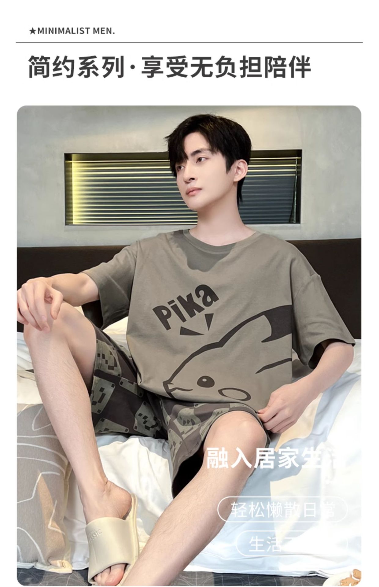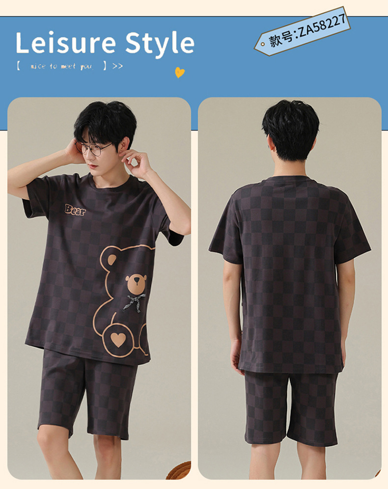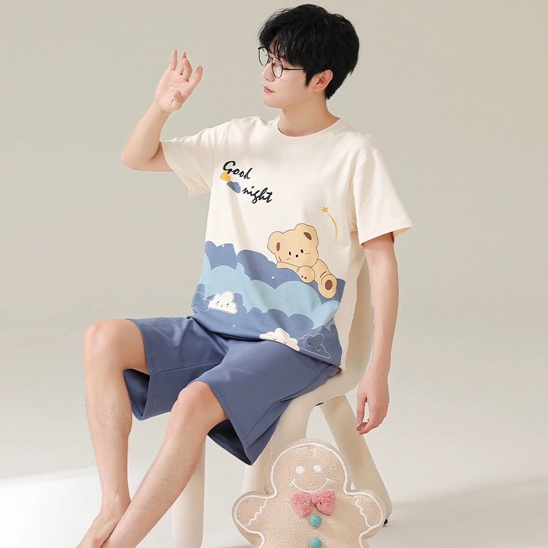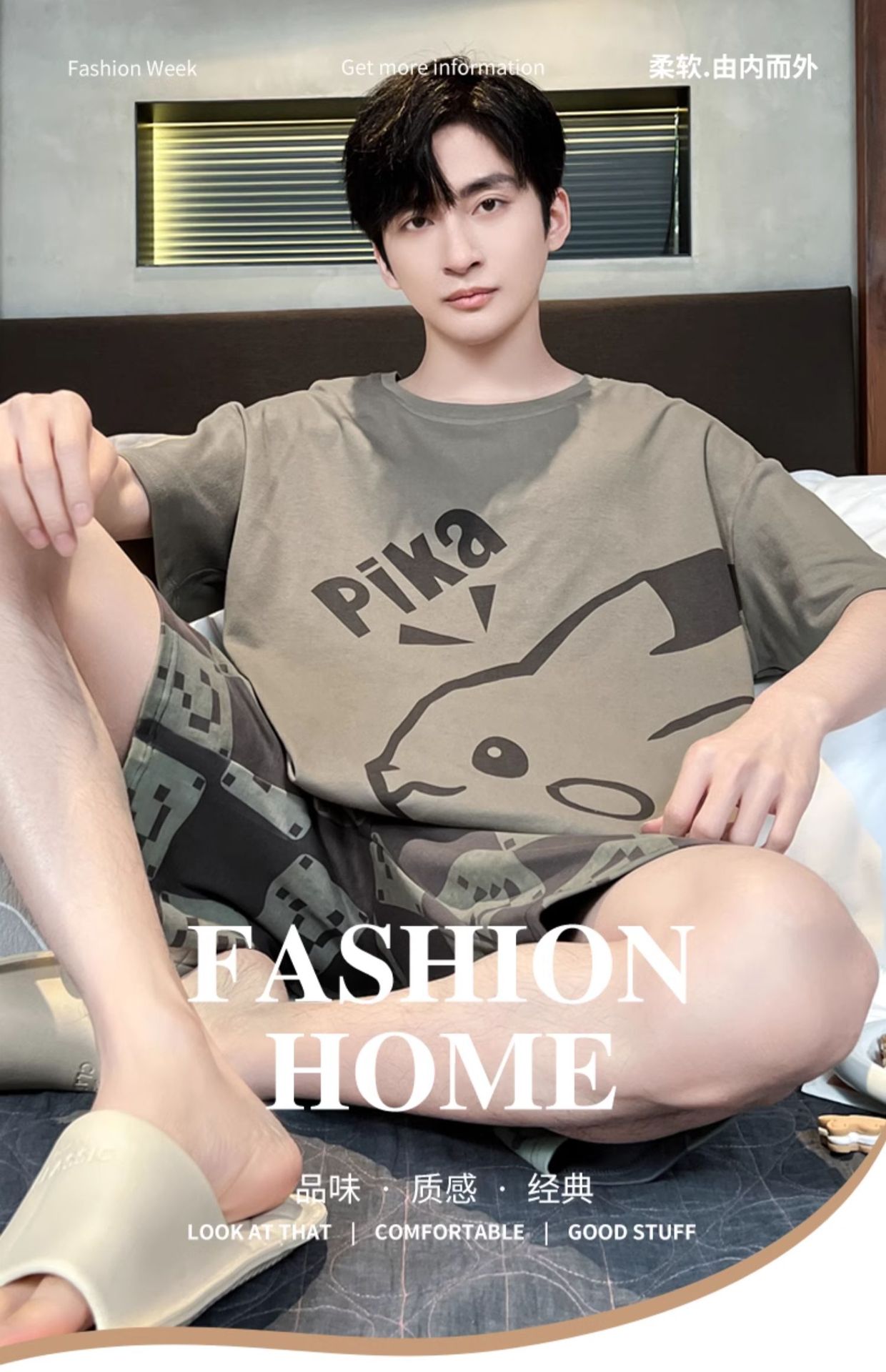잠옷 남자 여름 2025 새로운 반팔 세트 여름 청소년 만화 기숙사 홈 의류 여름 세트스토어 가기