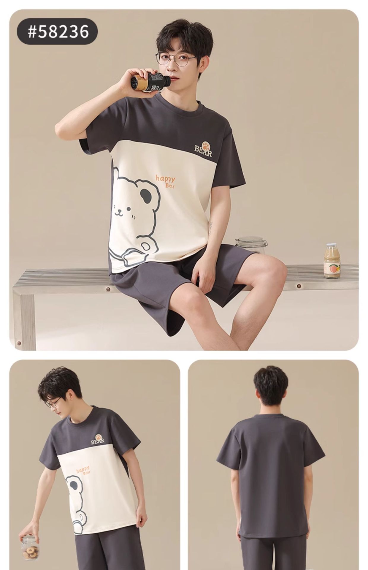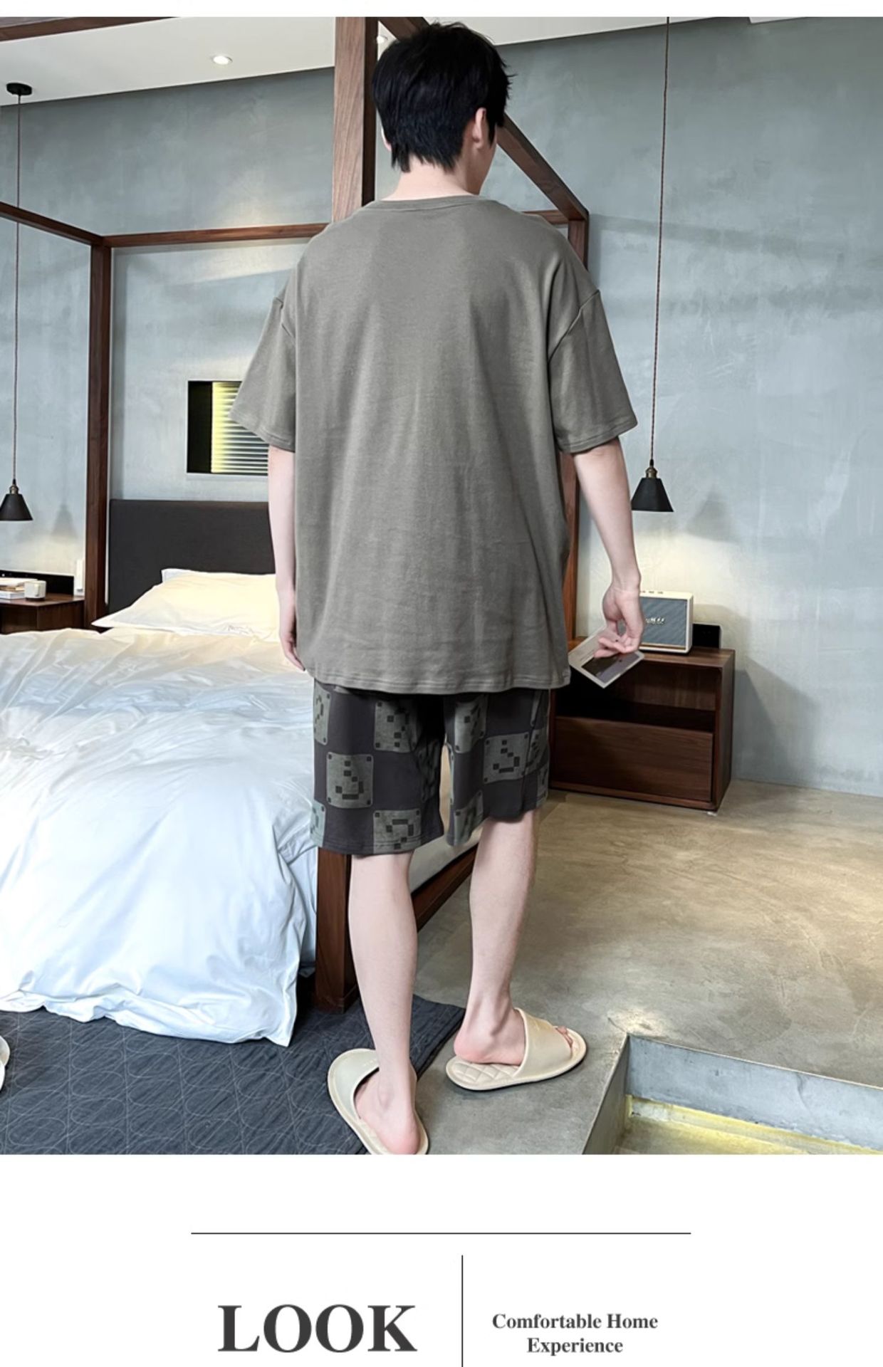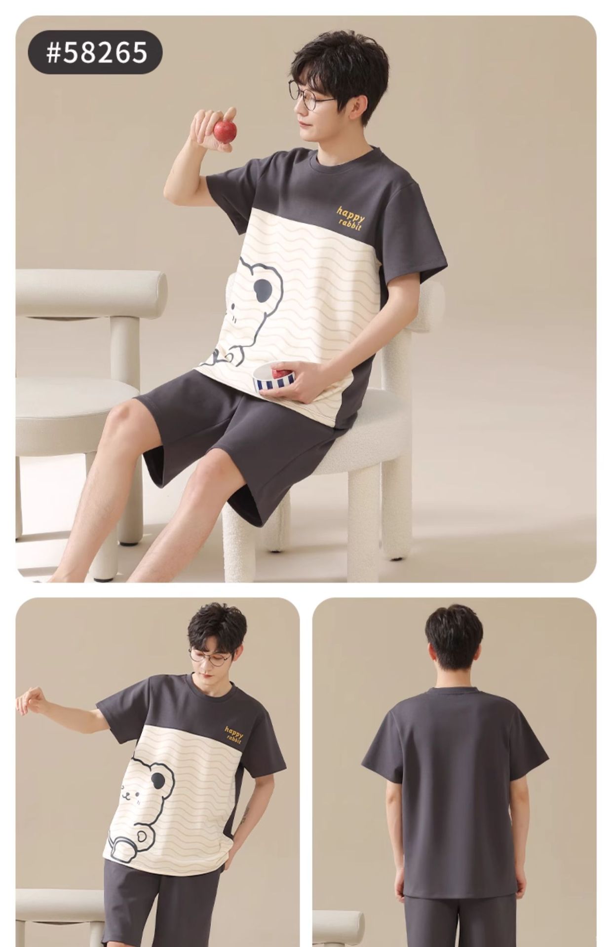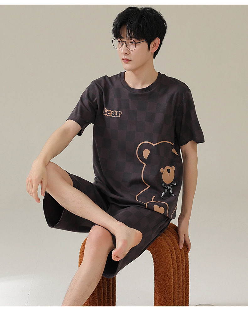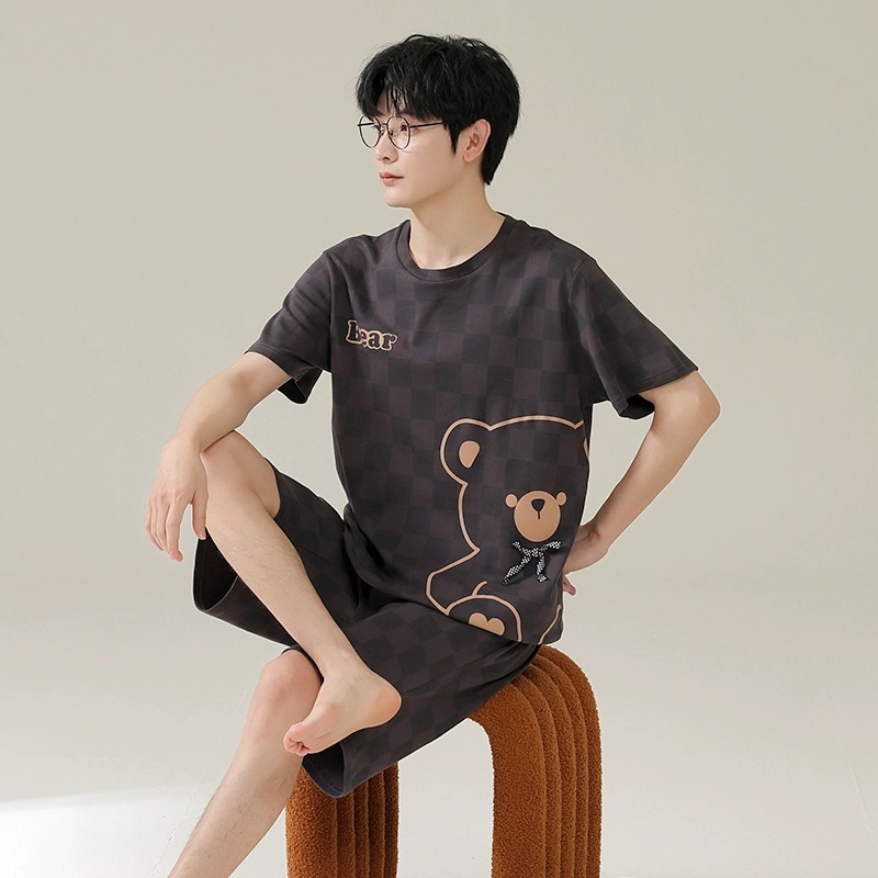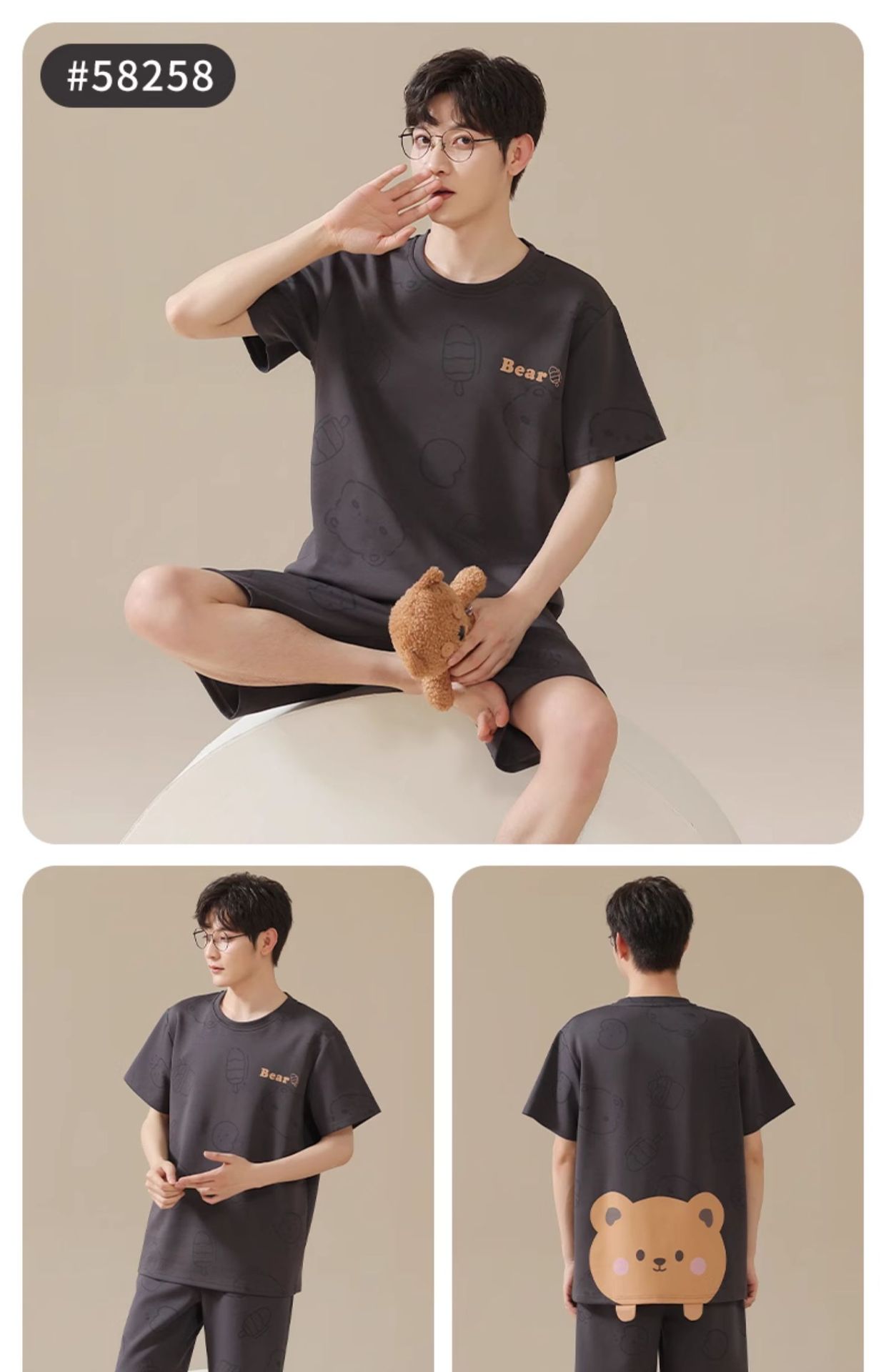 잠옷 남자 여름 2025 새로운 반팔 세트 여름 청소년 만화 기숙사 홈 의류 여름 세트스토어 가기