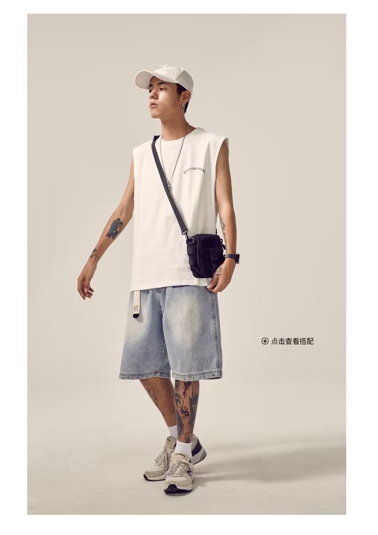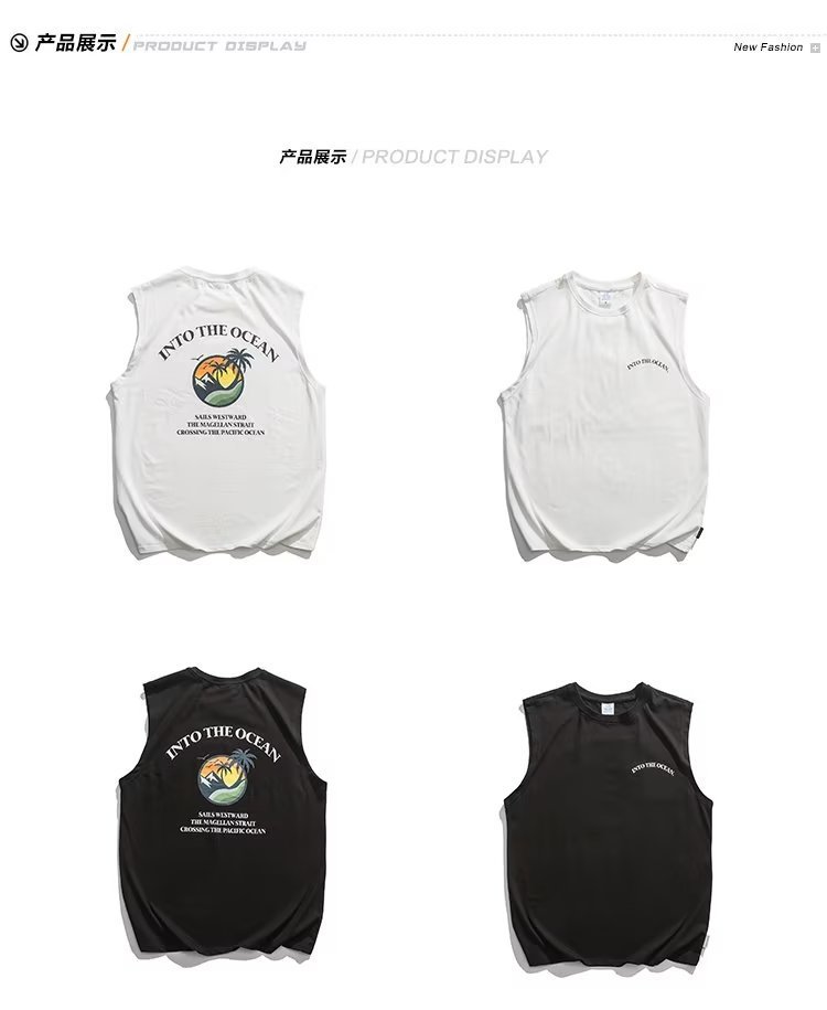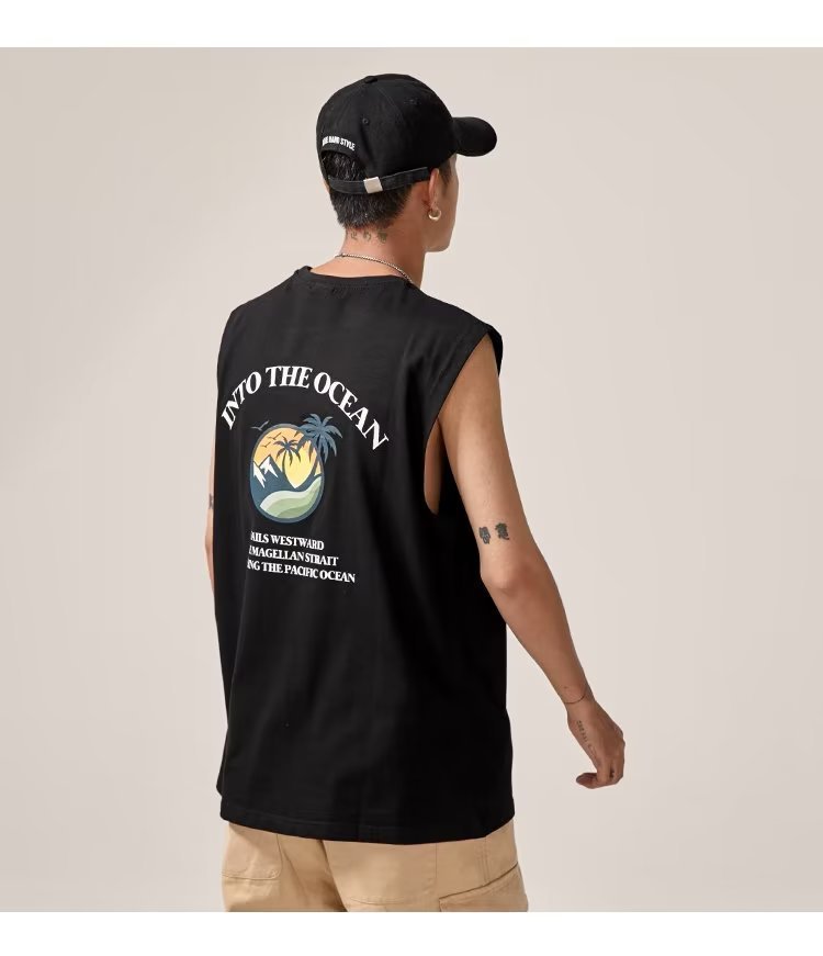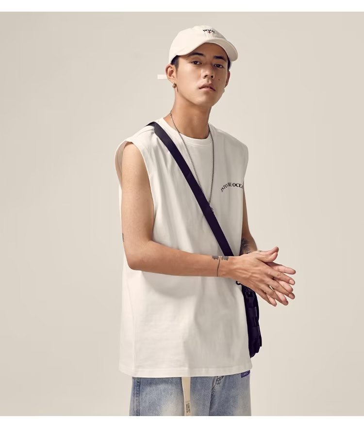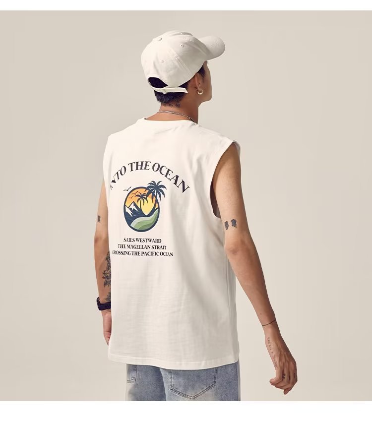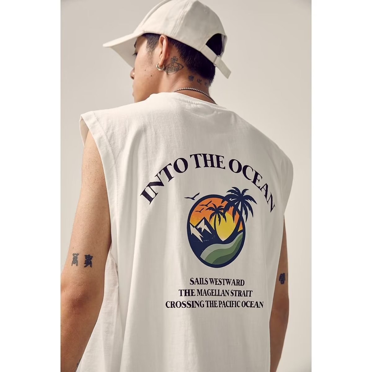 미국식 분위기 양복 조끼 남성 여름 Ins 트렌디 한 브랜드 프린트 스포츠 탑 트렌디 한 느슨한 민소매 티셔츠 언더 셔츠스토어 가기