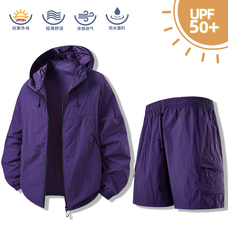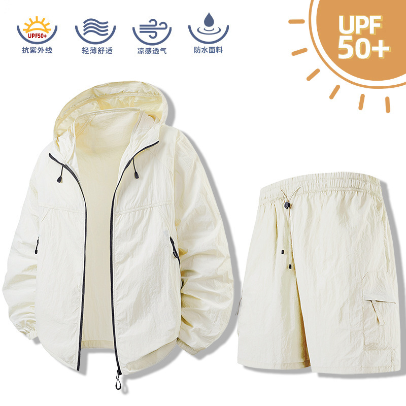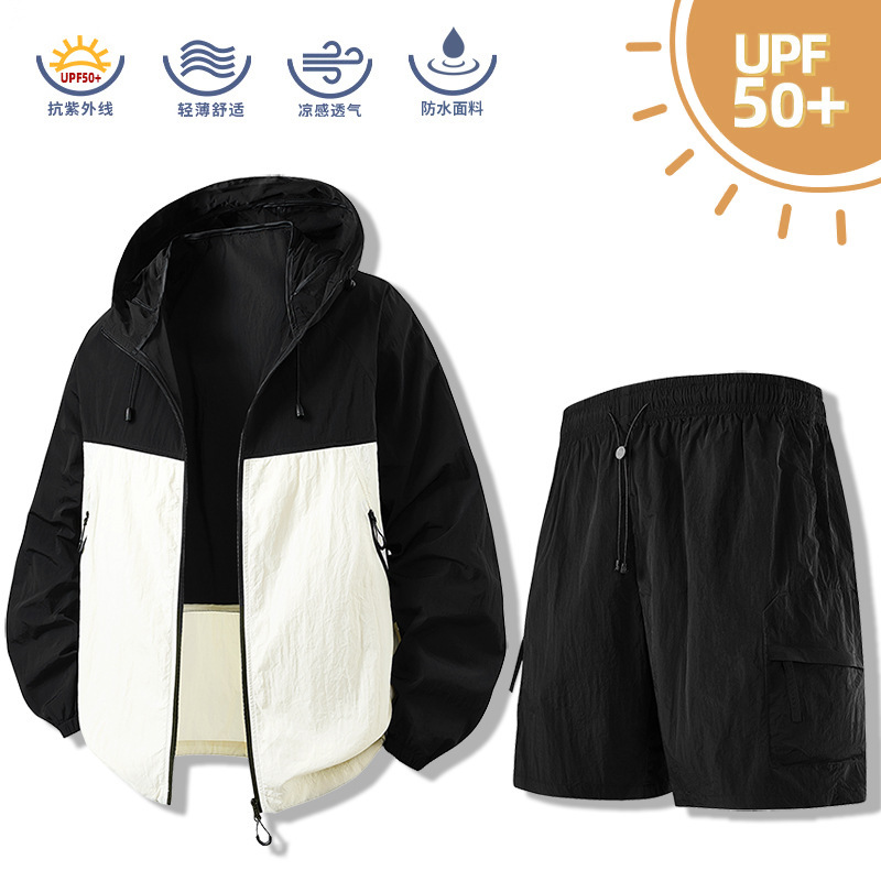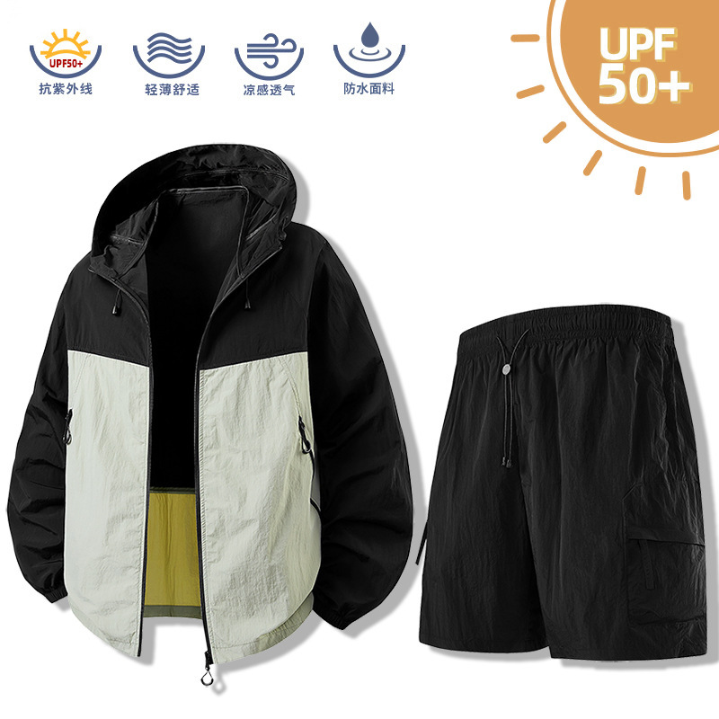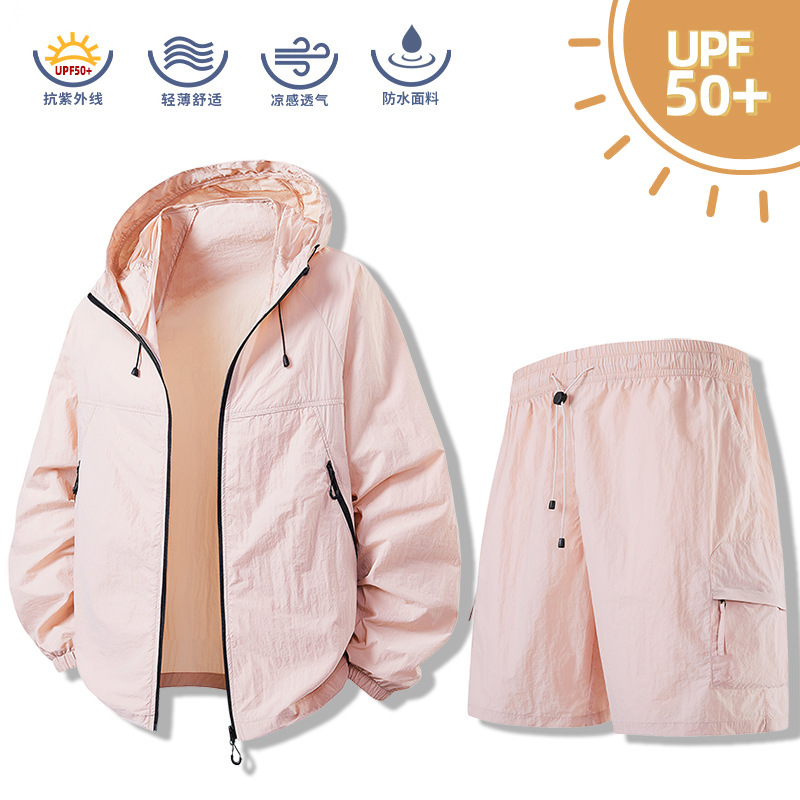 여름 새로운 후드 썬 스크린 세트 스킨 의류 남성 커플 여름 통기성 야외 낚시 스킨 코트 낚시