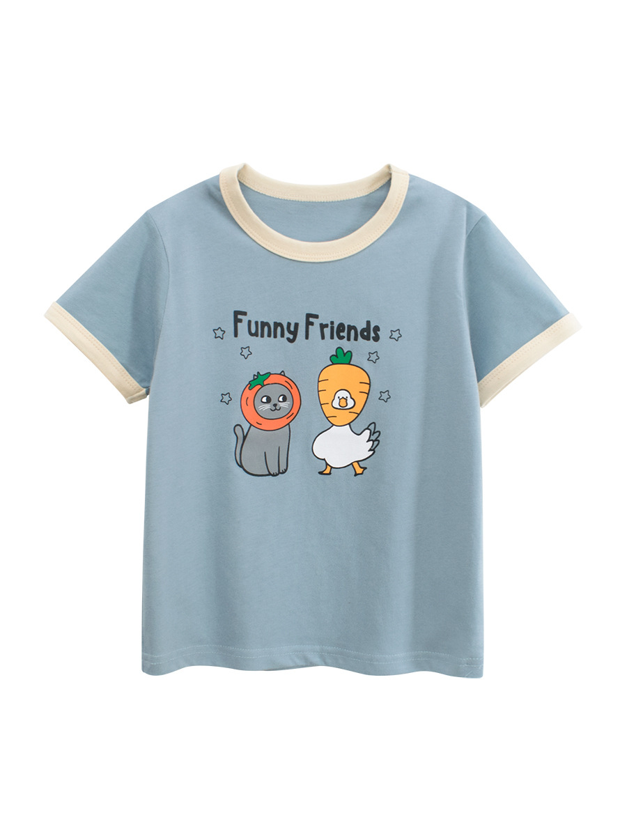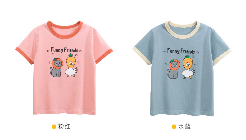 27 홈 여름 어린이 반팔 티셔츠 소녀 한국 아동복 만화 인쇄 아기 옷 국경 공급스토어 가기