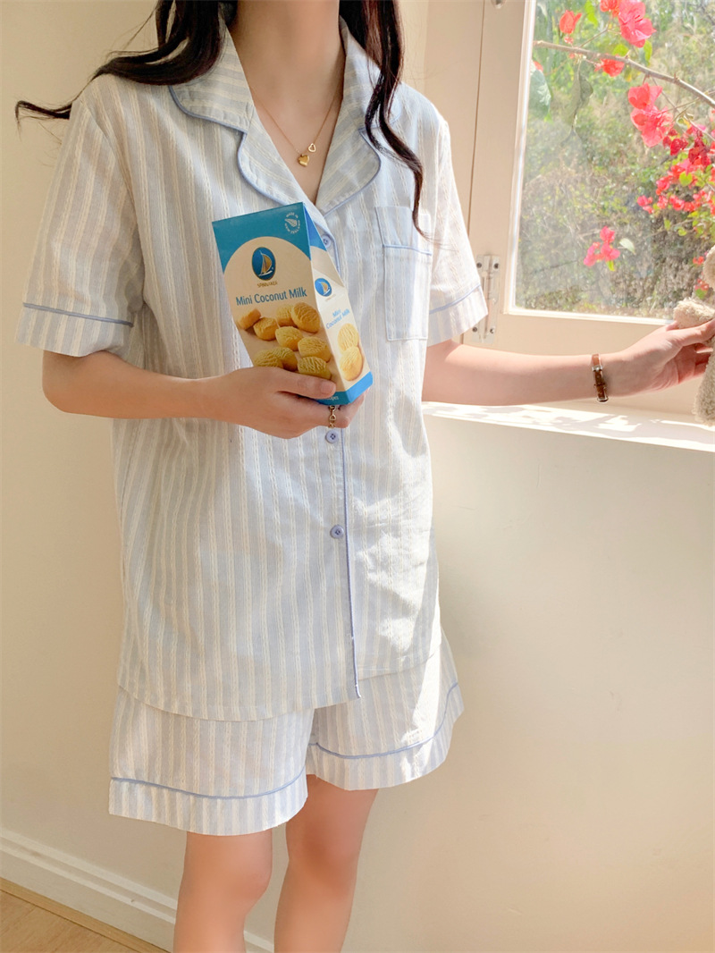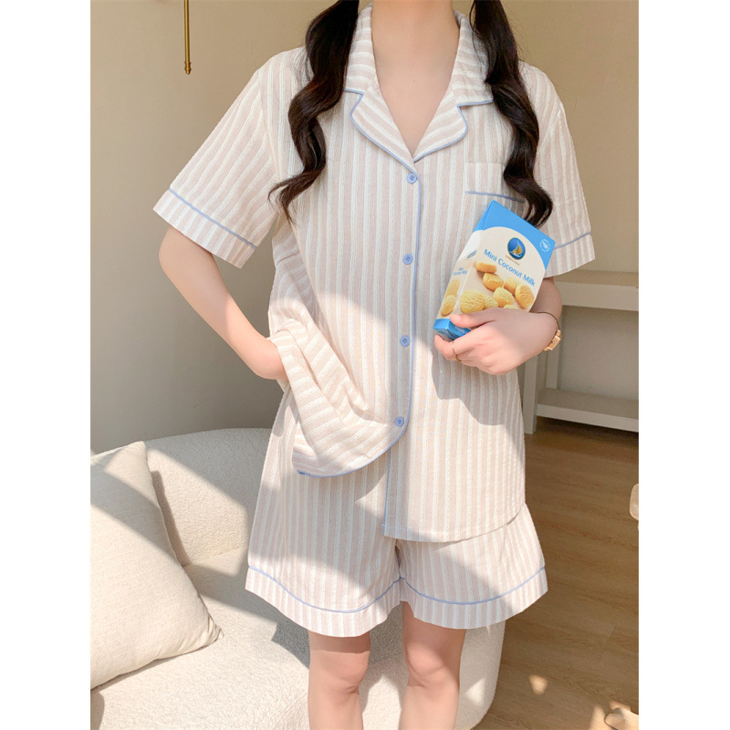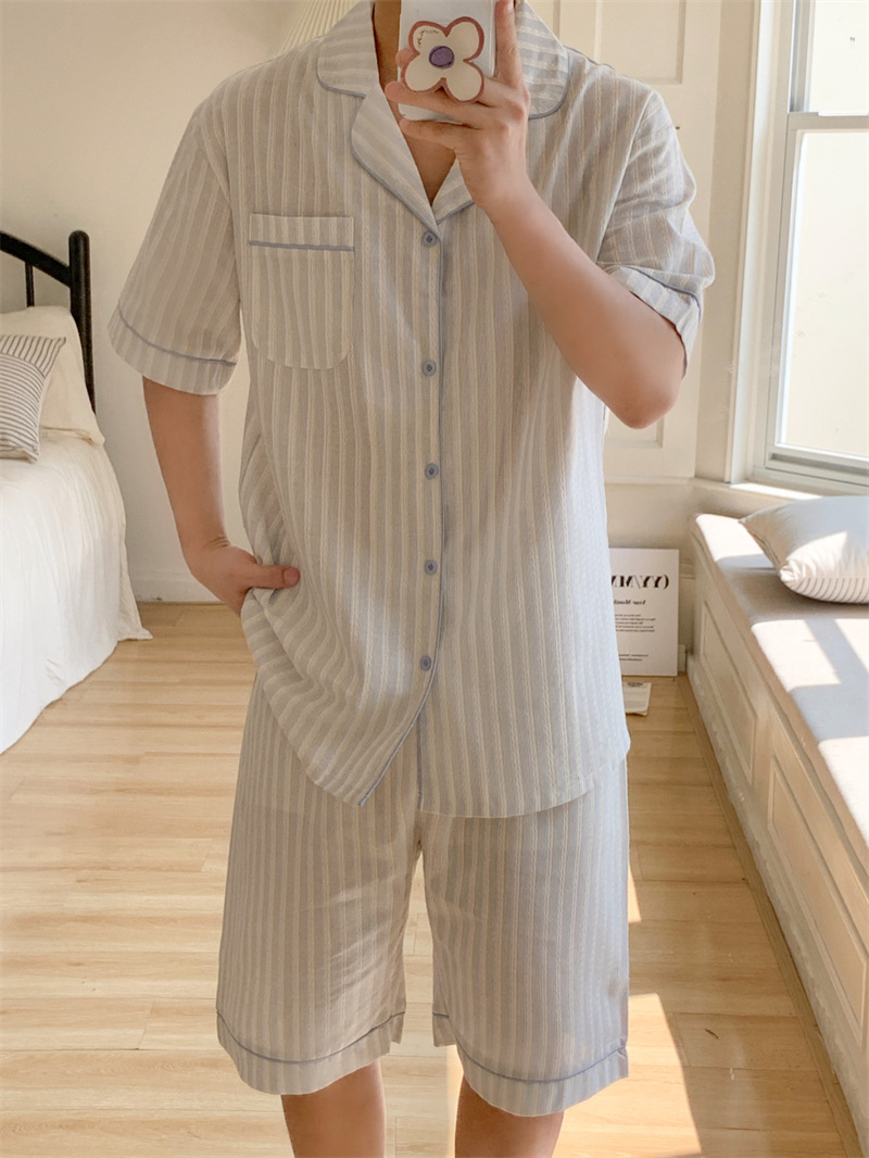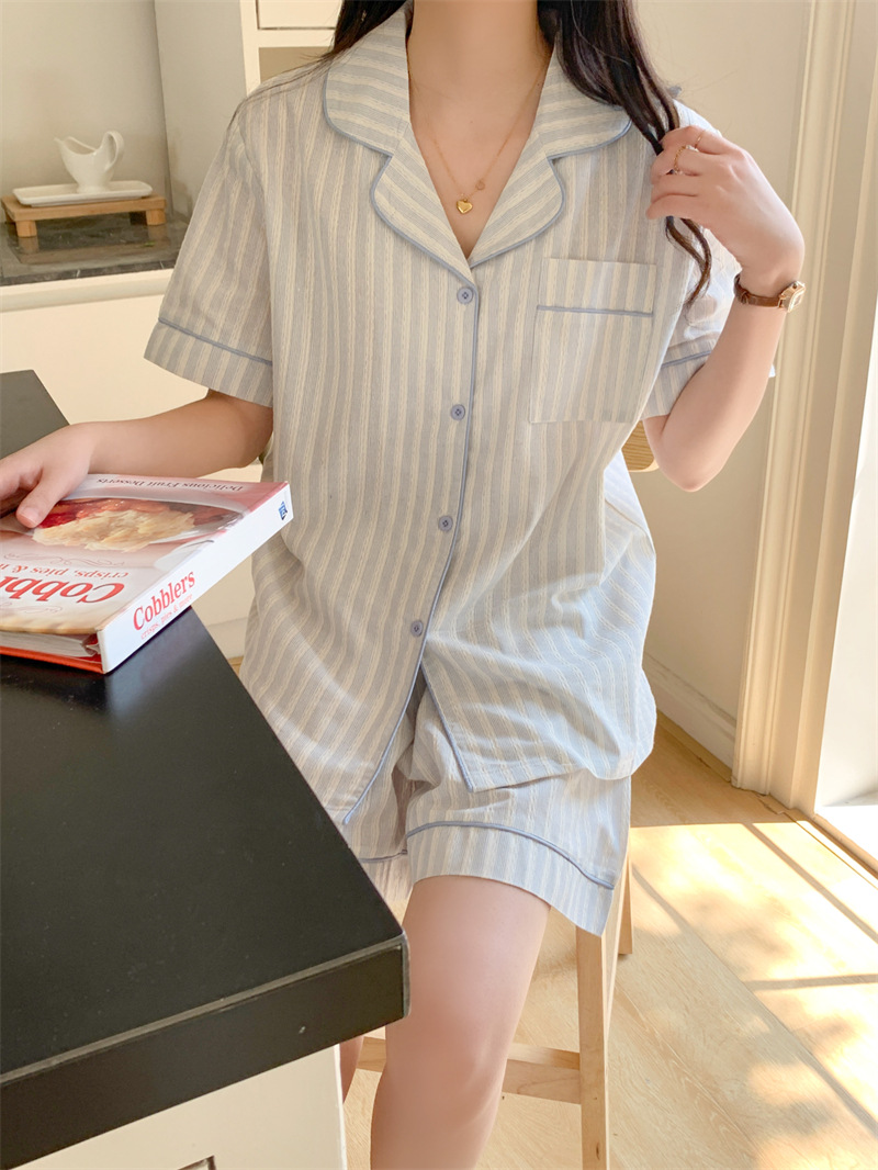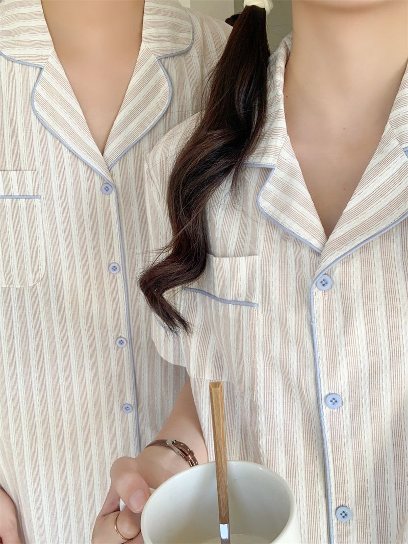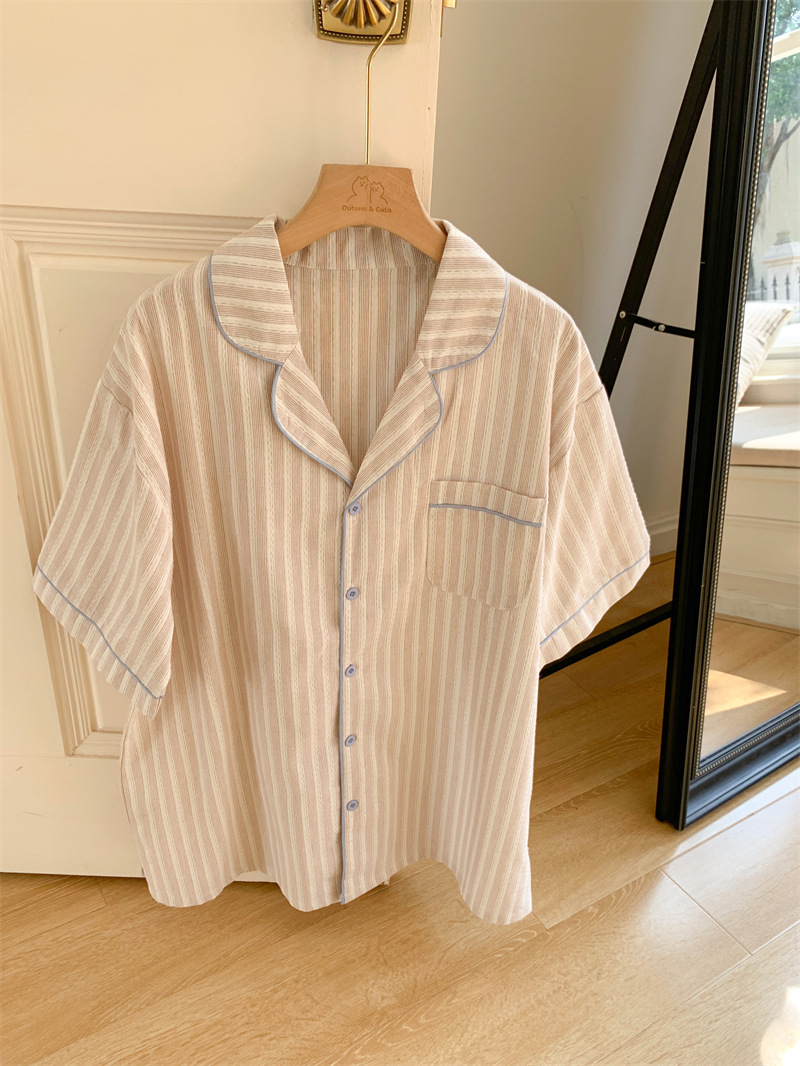 여성을위한 국경 독점 여름 새로운 캐주얼 느슨한 커플 외주 여성의 간단한 줄무늬 한국 남성 홈 의류