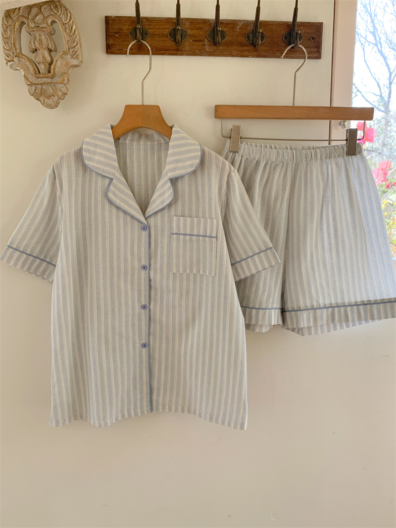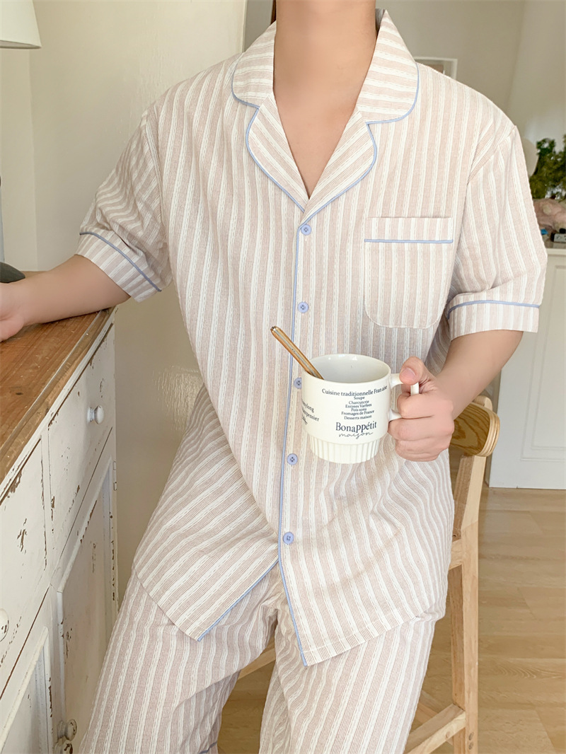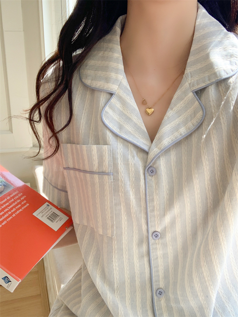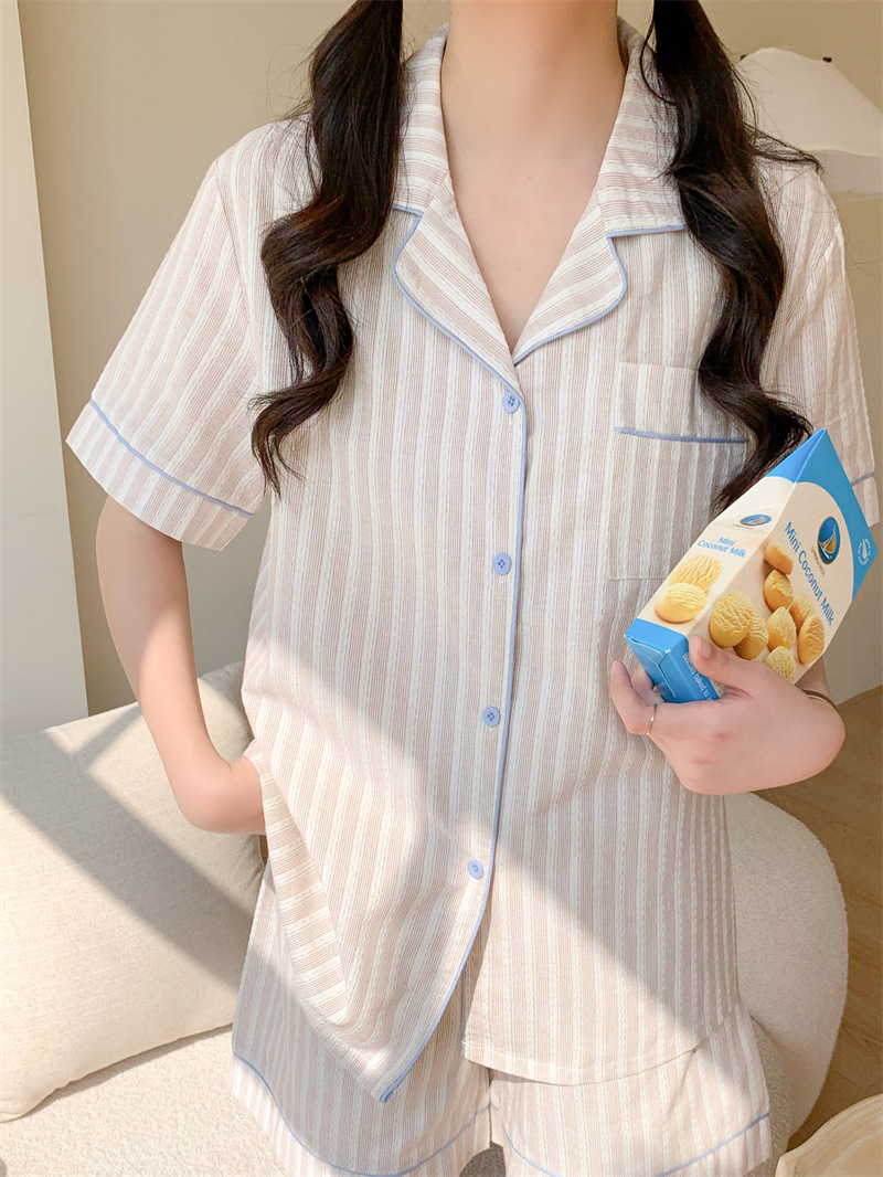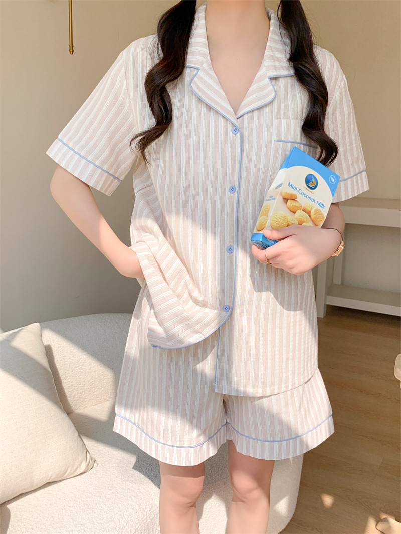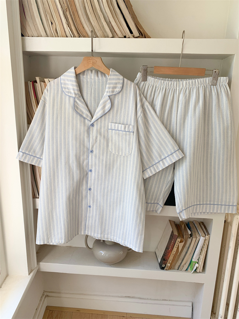 여성을위한 국경 독점 여름 새로운 캐주얼 느슨한 커플 외주 여성의 간단한 줄무늬 한국 남성 홈 의류