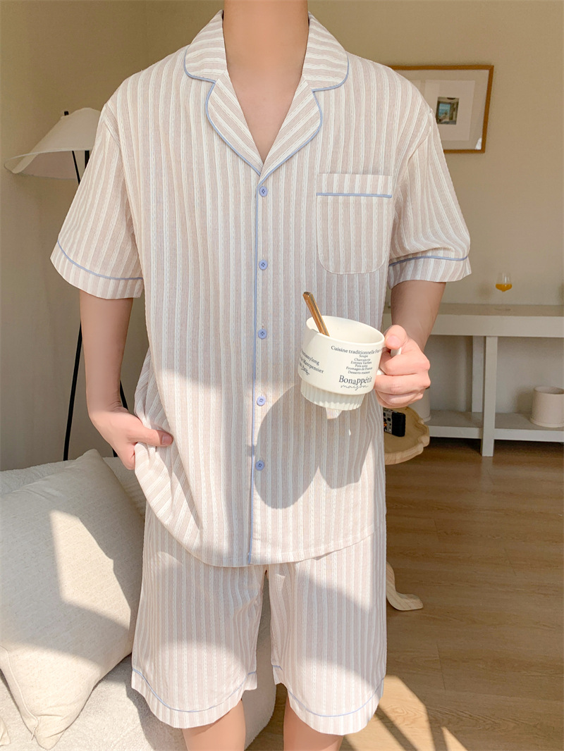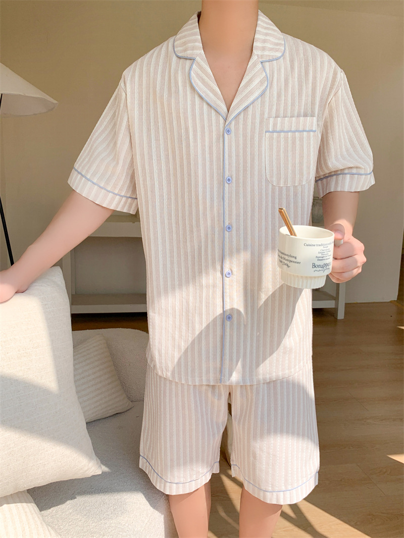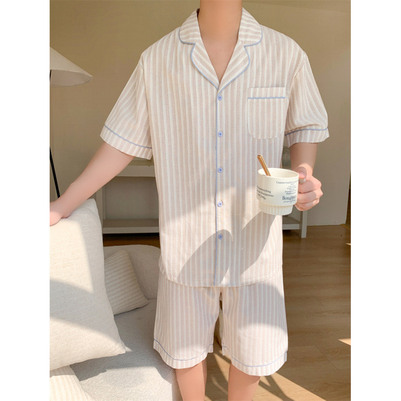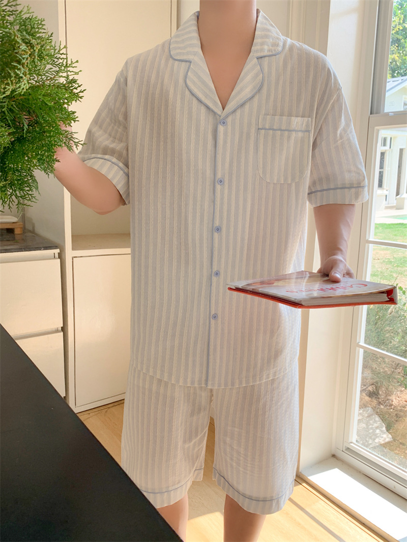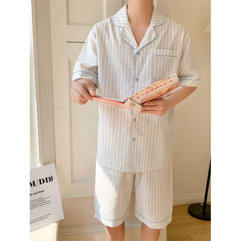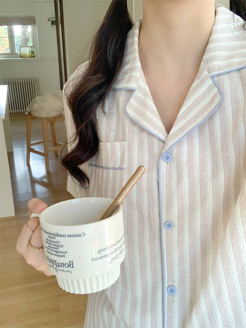 여성을위한 국경 독점 여름 새로운 캐주얼 느슨한 커플 외주 여성의 간단한 줄무늬 한국 남성 홈 의류