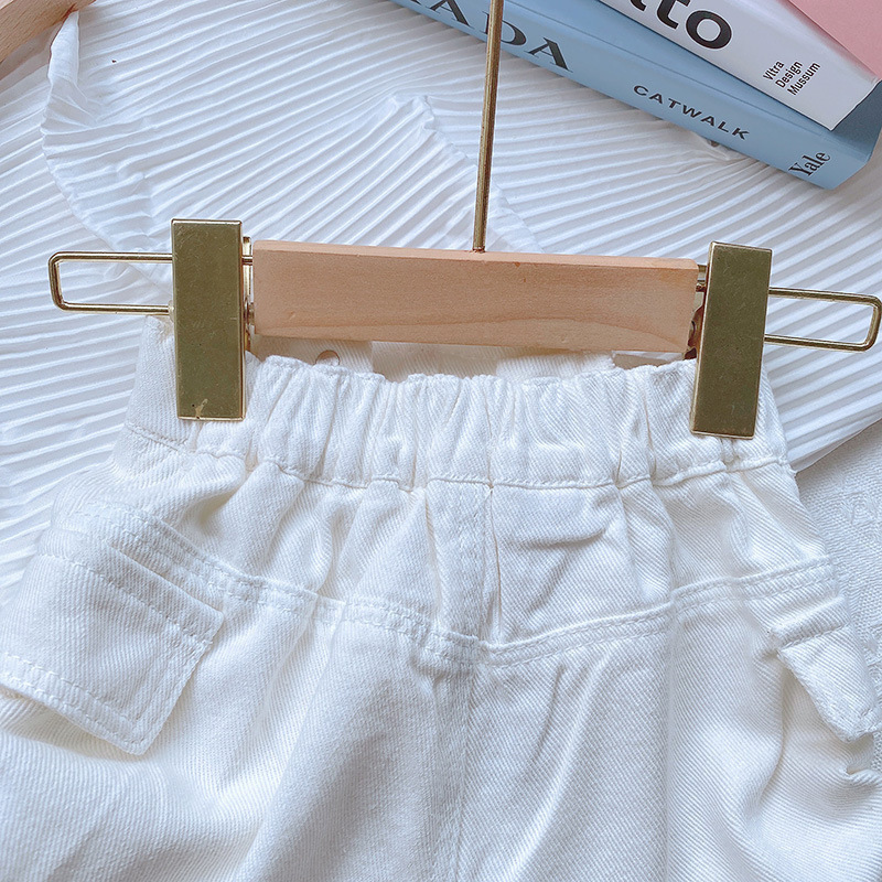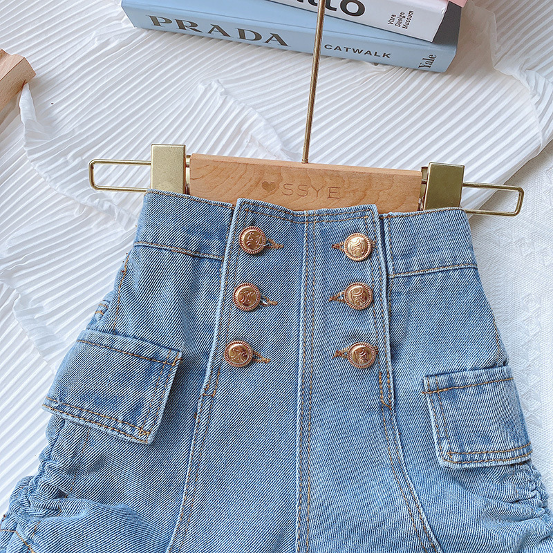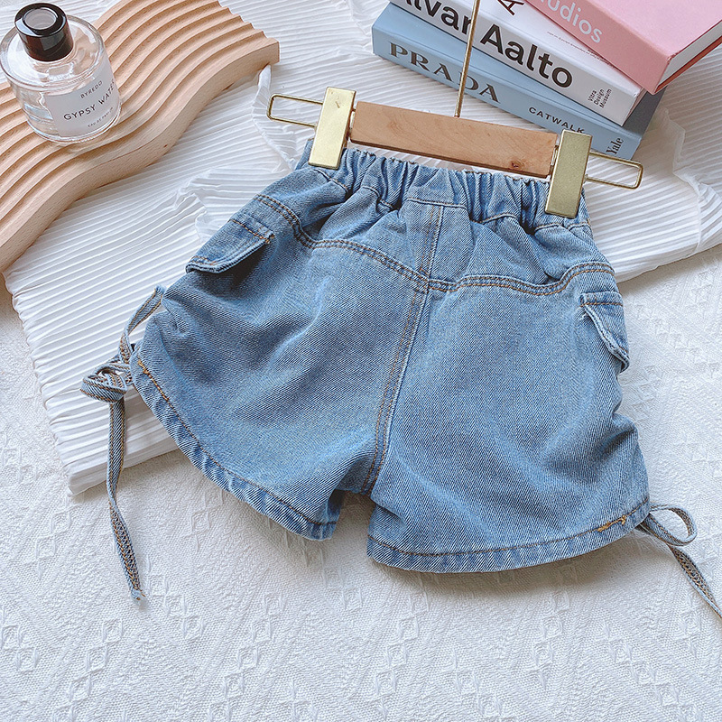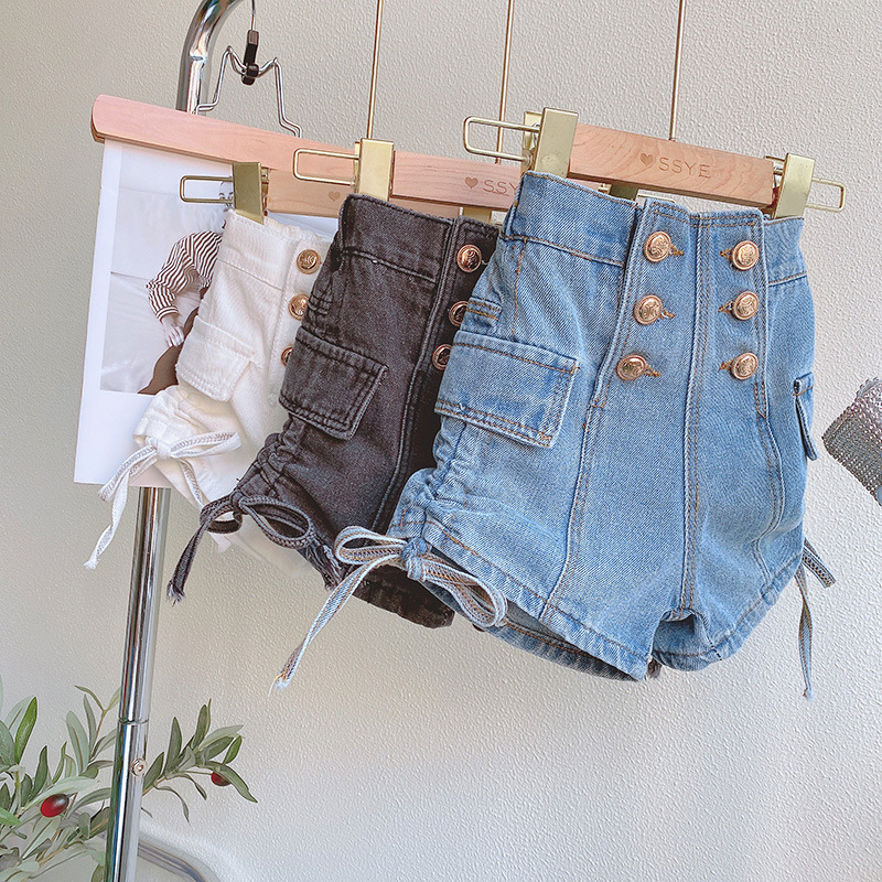 소녀 반바지 여름 2025 새로운 한국 스타일 어린이 세련 된 끈 버튼 청바지 소녀 유행 핫 바지스토어 가기