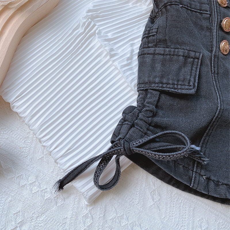 소녀 반바지 여름 2025 새로운 한국 스타일 어린이 세련 된 끈 버튼 청바지 소녀 유행 핫 바지