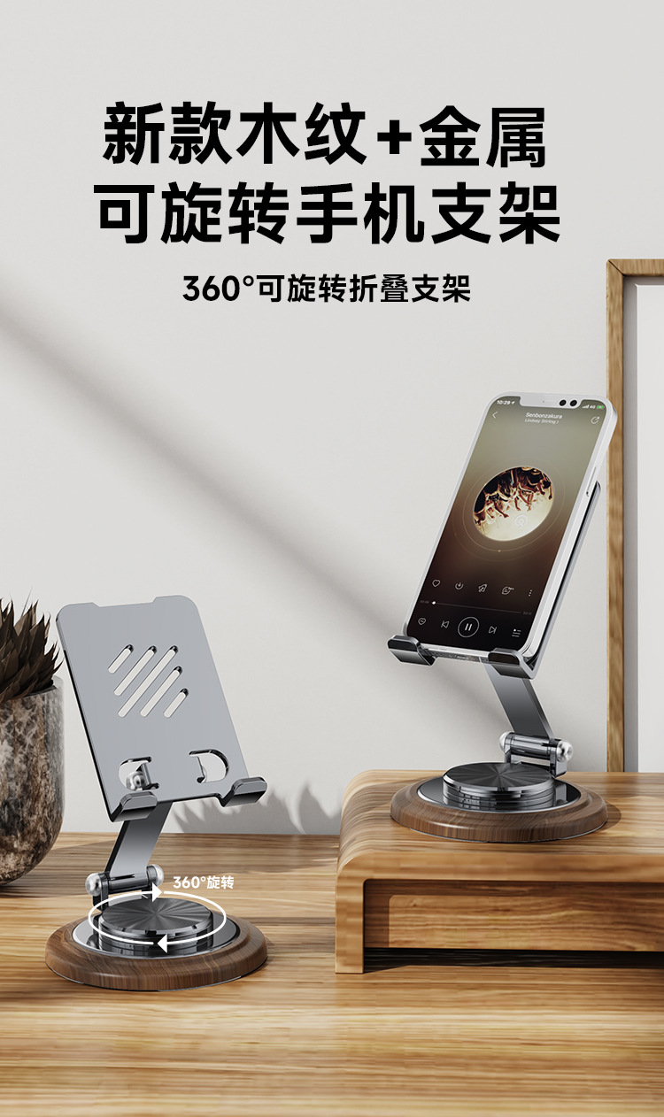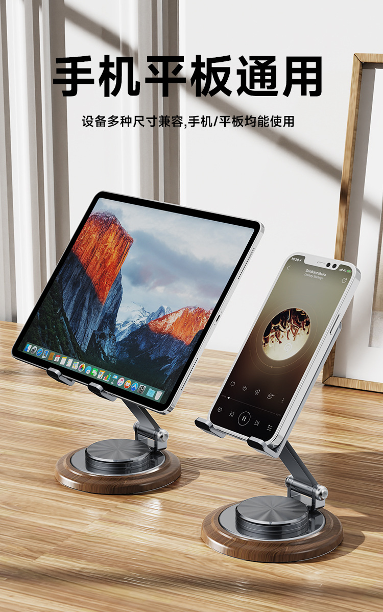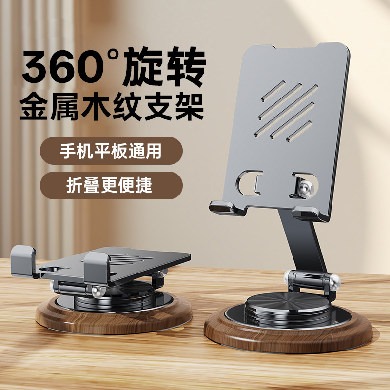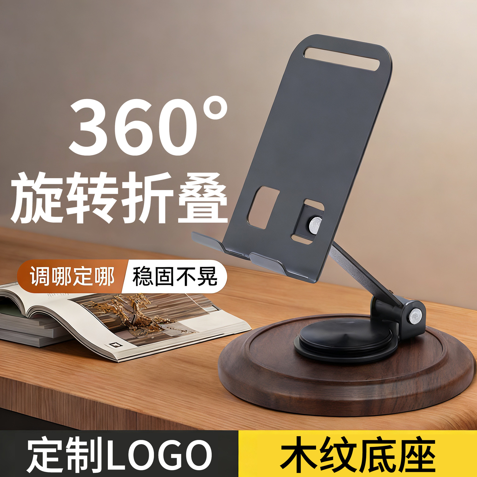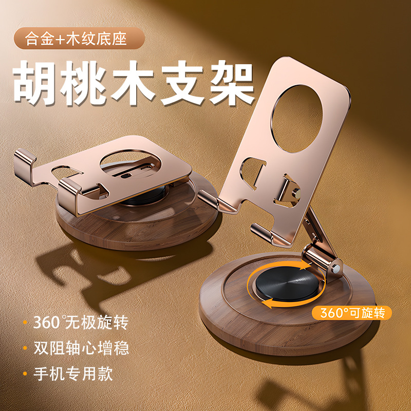 호두나무 베이스 금속 스탠드 720도 회전 접이식 두꺼운 원목 멀티 호환 휴대폰 및 태블릿 범용스토어 가기