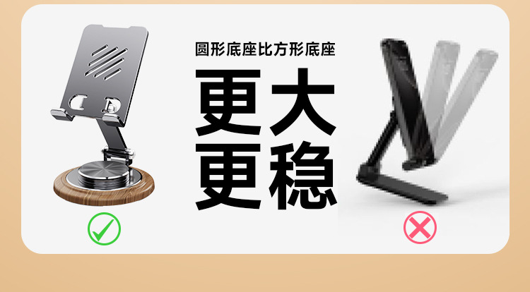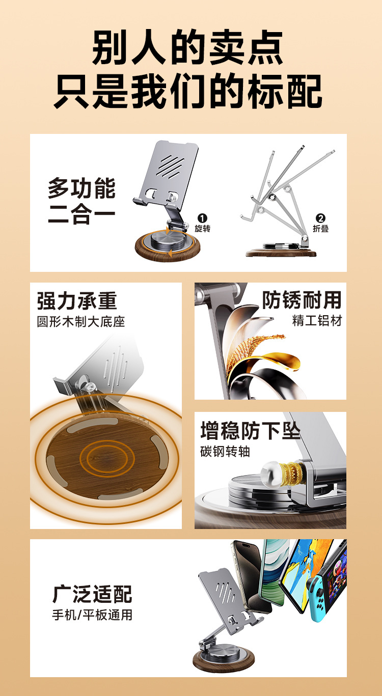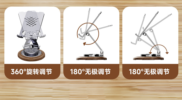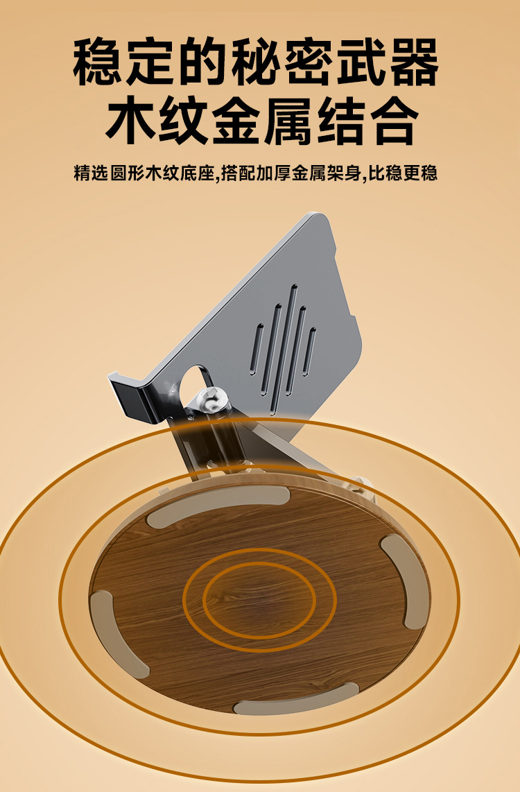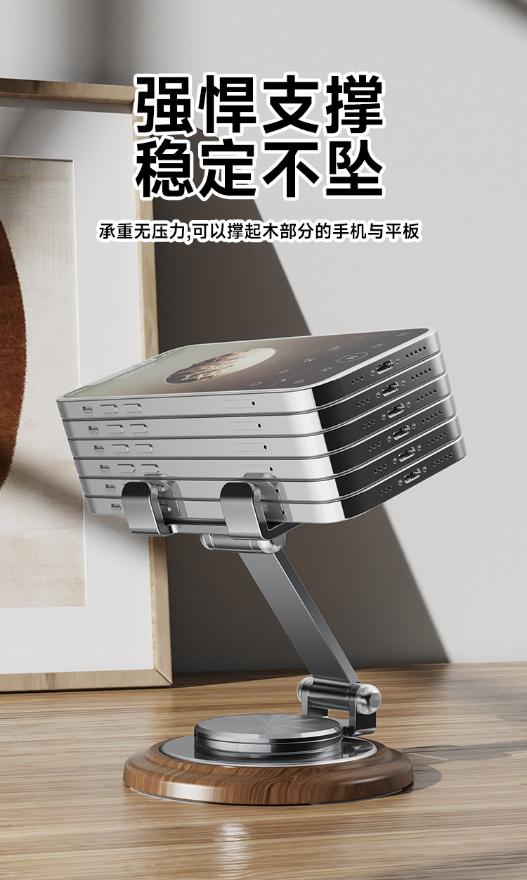 호두나무 베이스 금속 스탠드 720도 회전 접이식 두꺼운 원목 멀티 호환 휴대폰 및 태블릿 범용스토어 가기