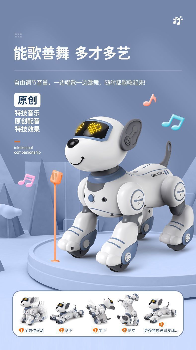 국경을 넘는 지능형 추적 로봇, 전동 거꾸로 걷는 음악 춤추는 프로그래밍 가능한 애완견 장난감, 원격 조종 로봇 강아지스토어 가기