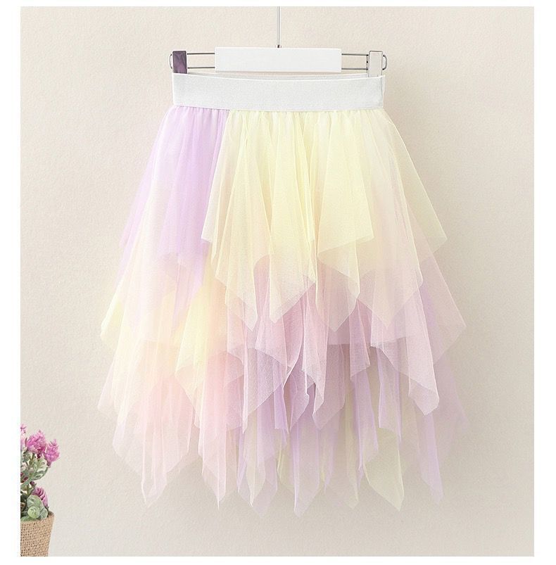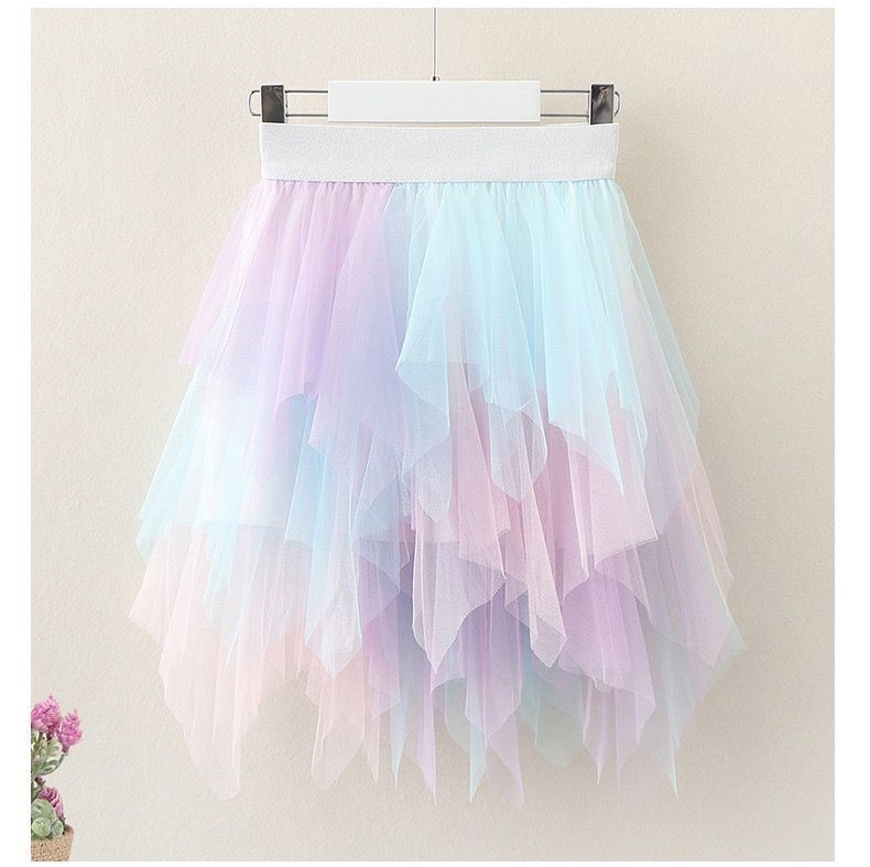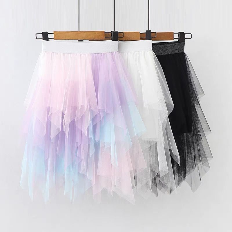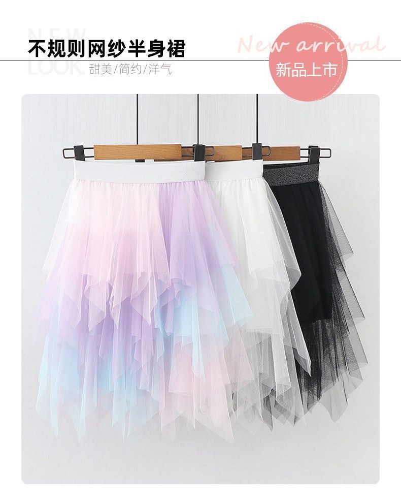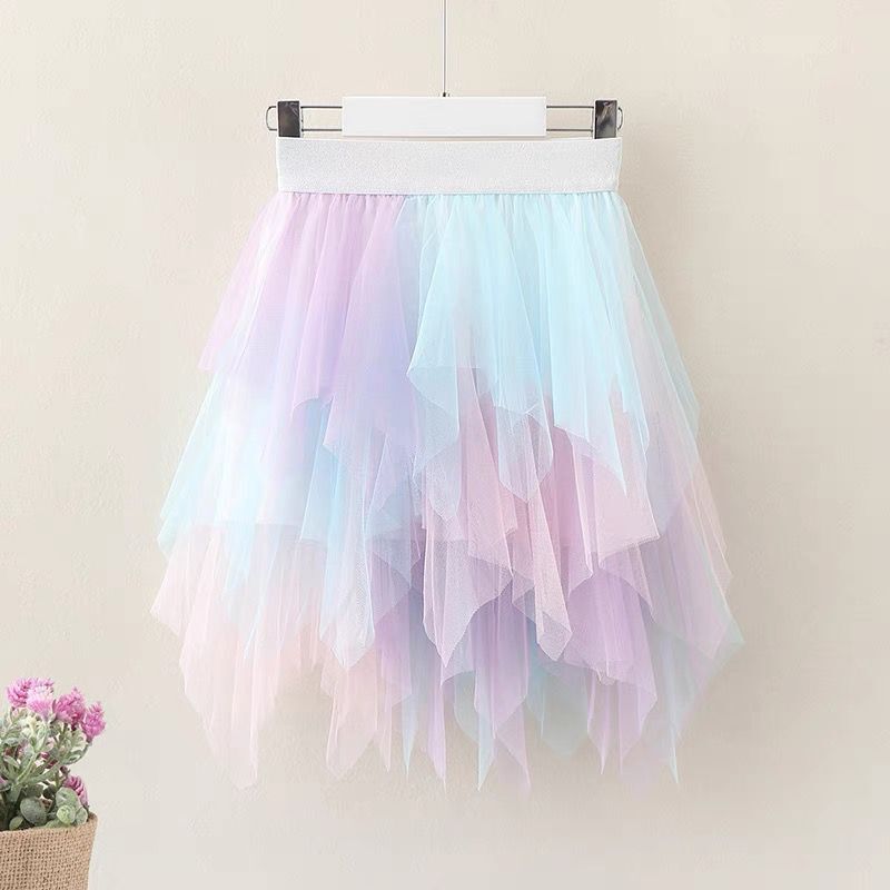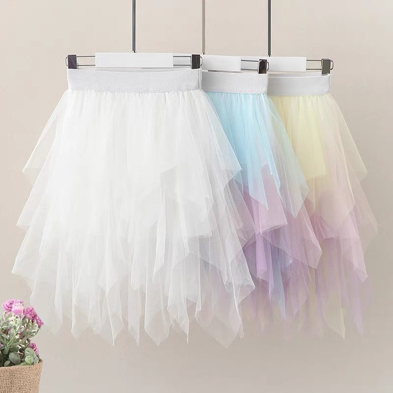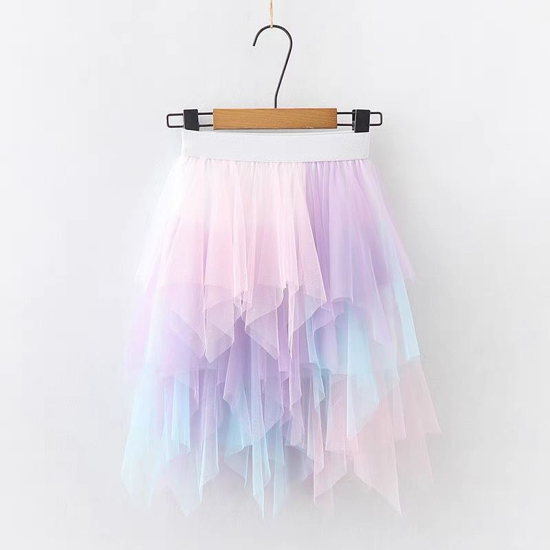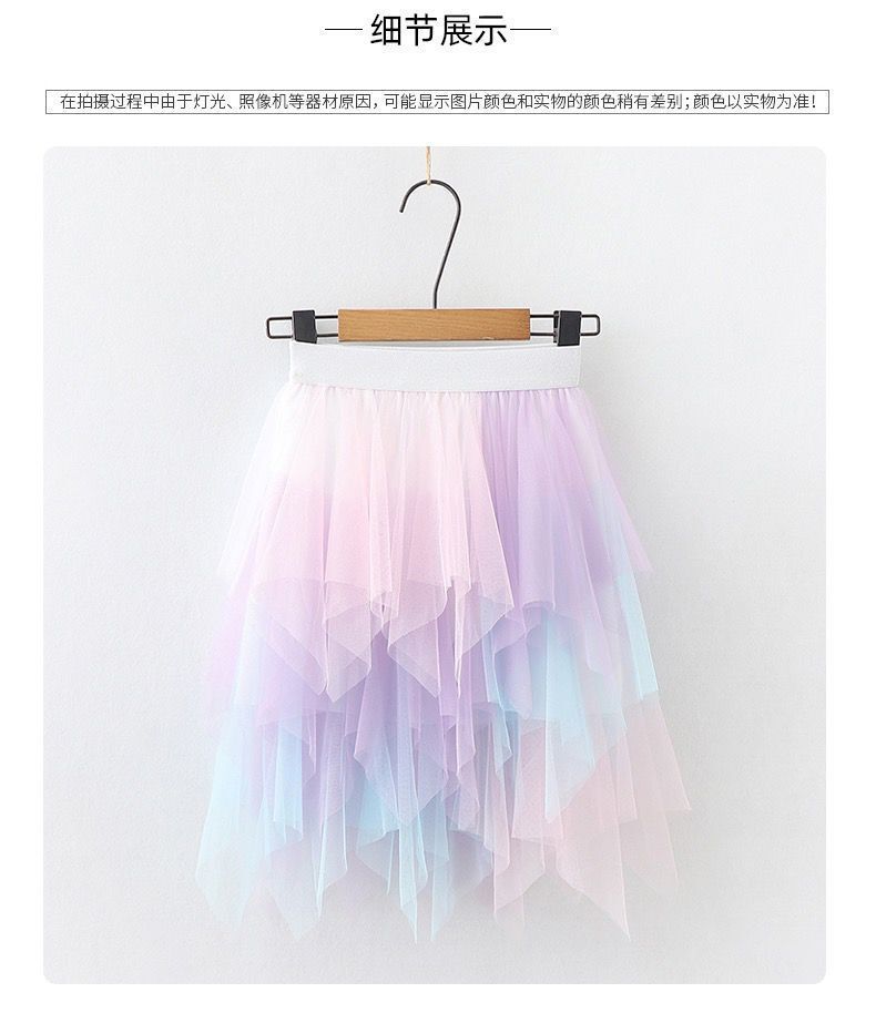 소녀 스커트 레인보우 주름 불규칙한 선박 스커트 공주 푹신한 스커트 어린이 서양식 여름 올 매치 쇼트 스커트스토어 가기