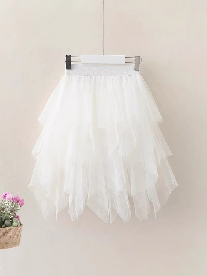 소녀 스커트 레인보우 주름 불규칙한 선박 스커트 공주 푹신한 스커트 어린이 서양식 여름 올 매치 쇼트 스커트