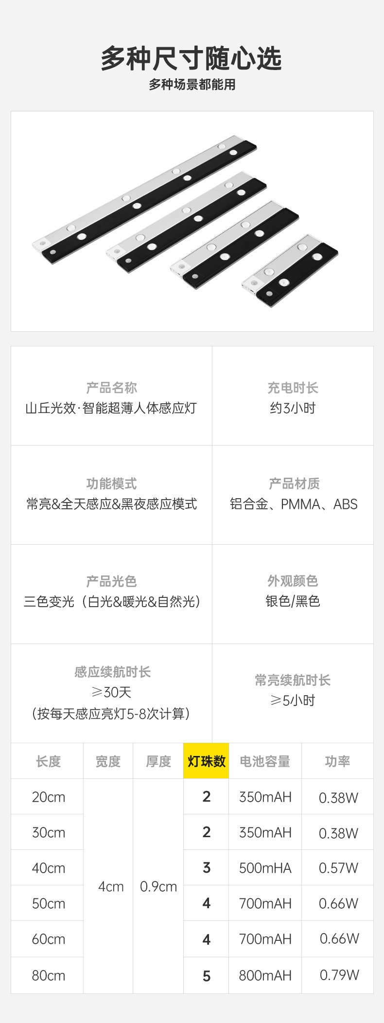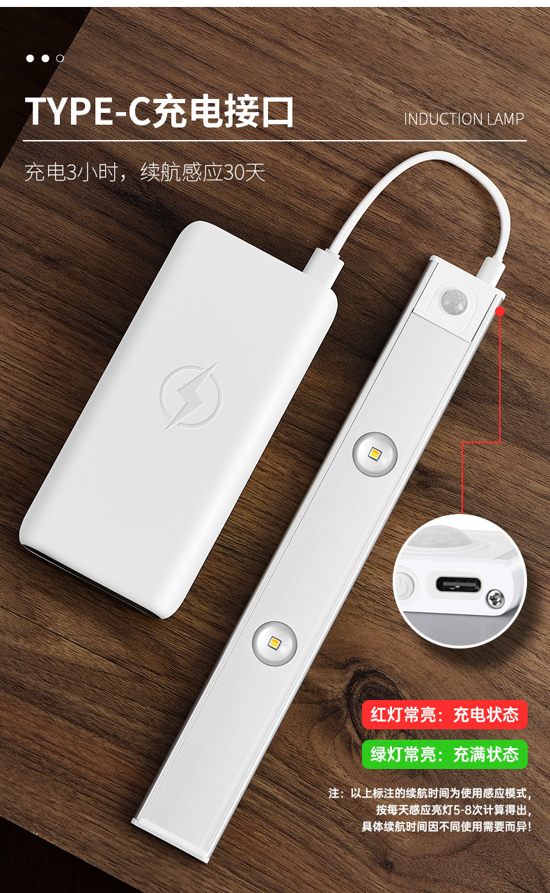 초박형 지능형 led 인체 유도 램프 충전 무료 구멍 캐비닛 옷장 신발 캐비닛 와인 캐비닛 고양이 아이 스트립스토어 가기