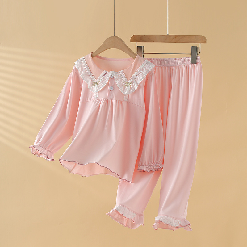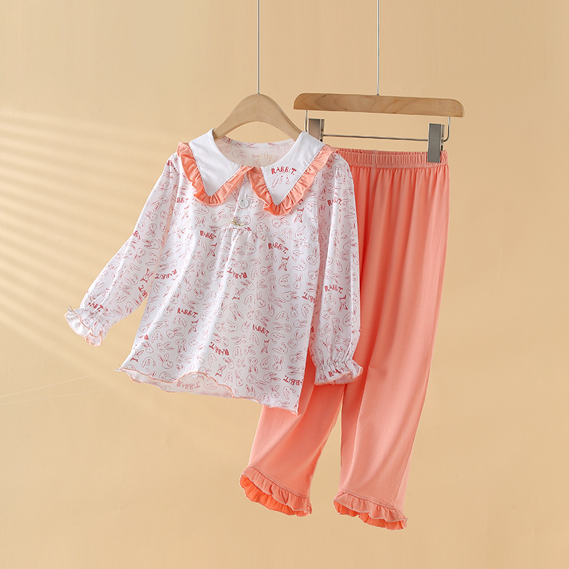 소녀 잠옷 얇은 봄 옷 2024 새로운 어린이 집 옷 어린 소녀 달콤한 긴 소매 아기 카디건 세트