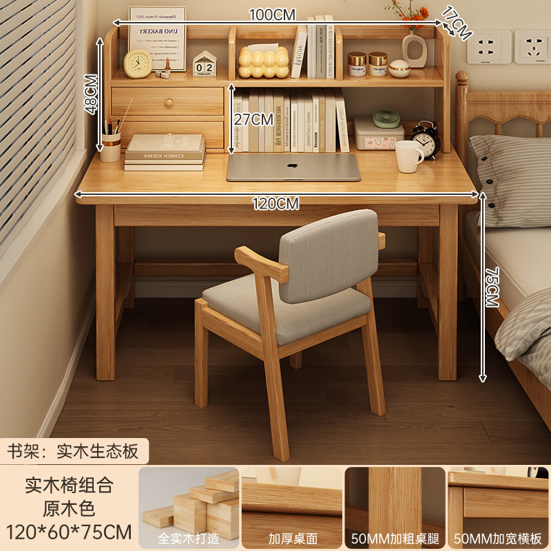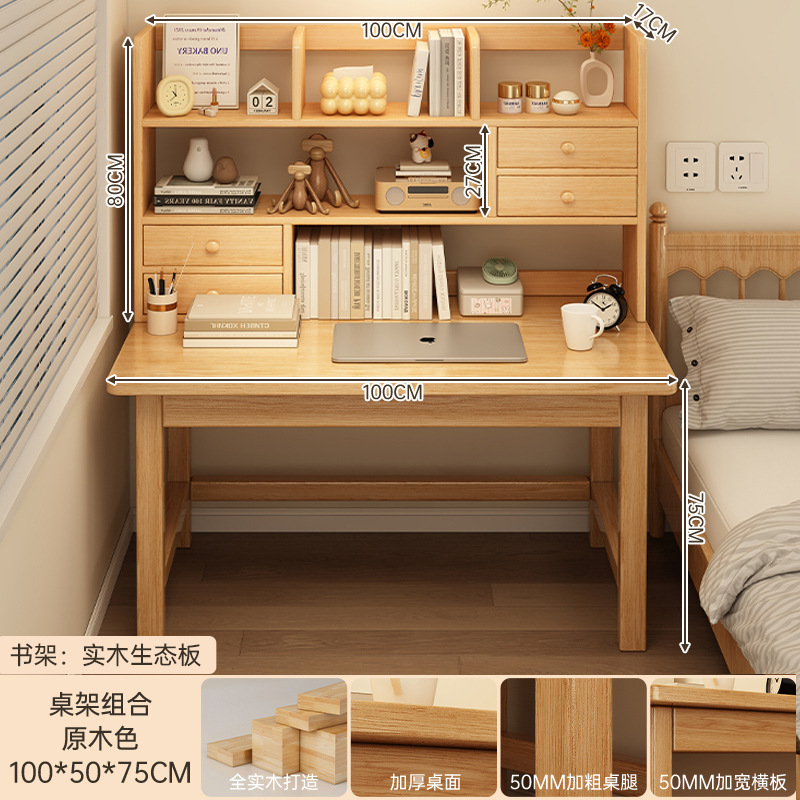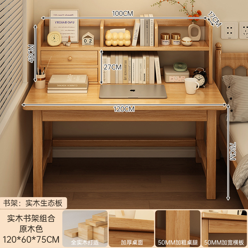 원목 책상 책장 일체형 테이블 학생용 가정 학습용 책상 간단한 테이블 침실용 책상 컴퓨터 테이블