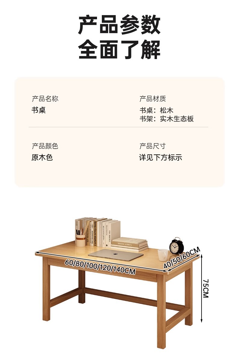 • [싱글테이블 + 책장] 120*60CM 원목색상