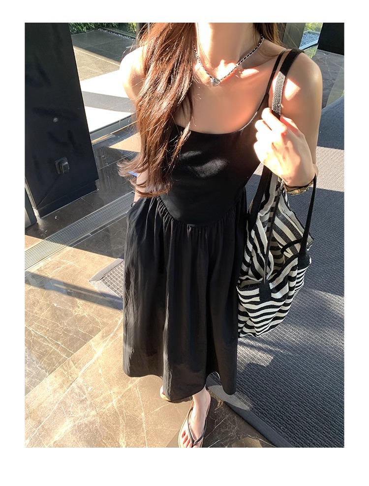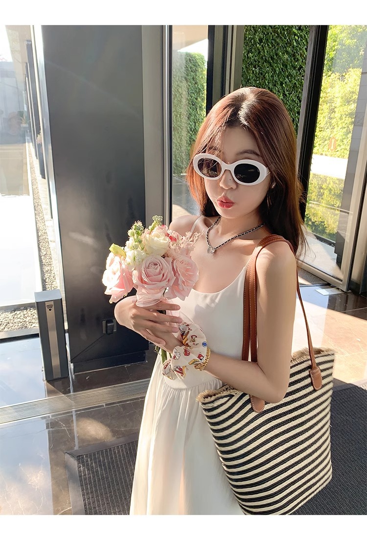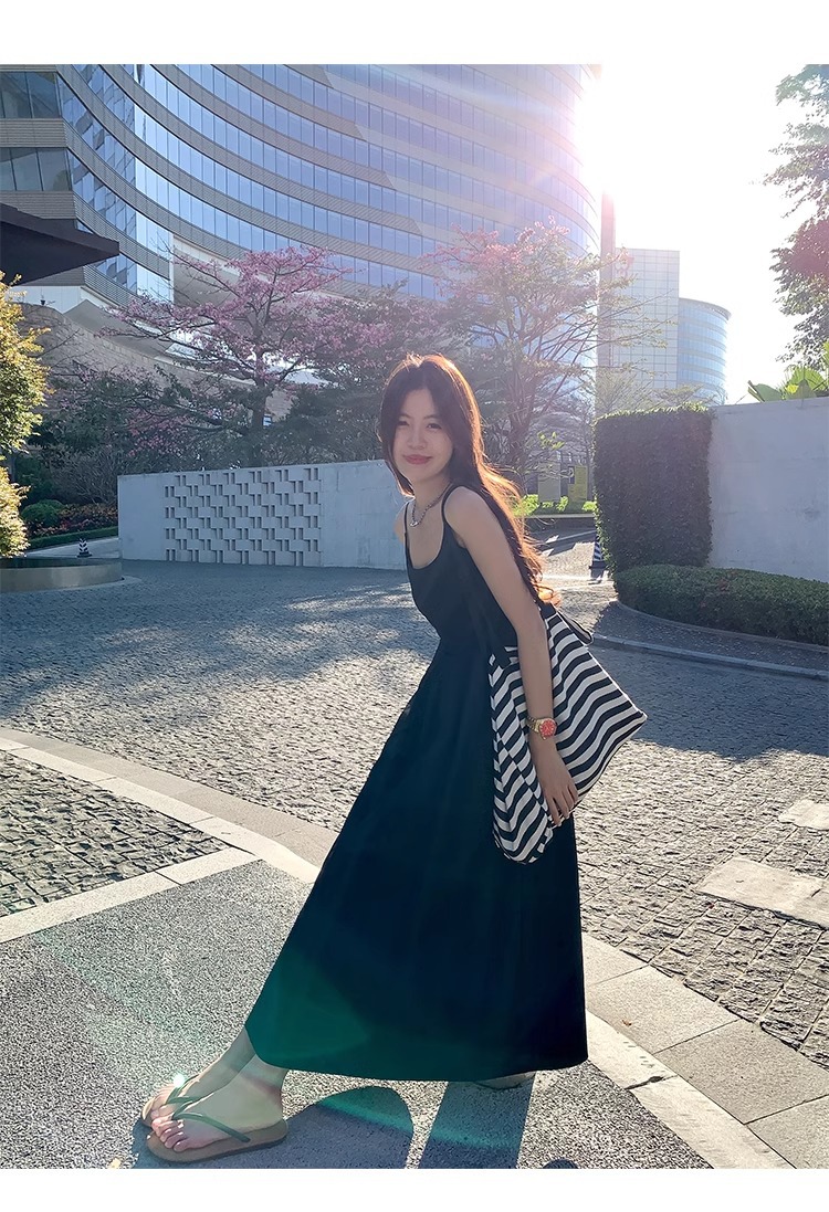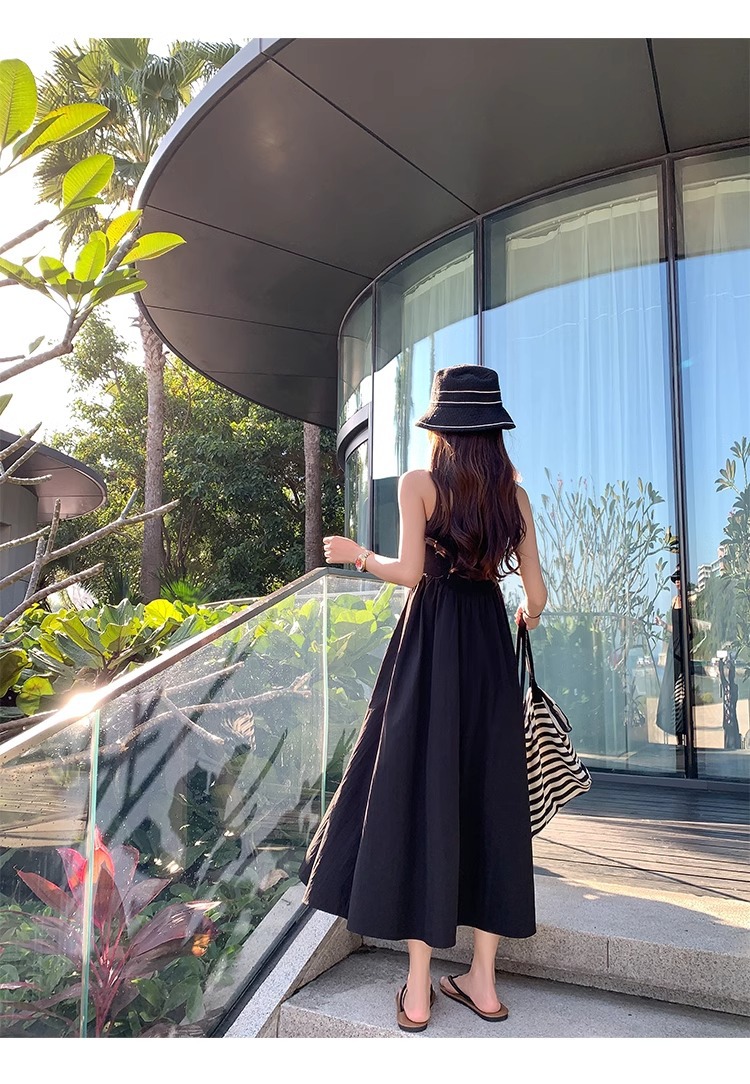 한국 스타일 부드러운 흰색 타이트 허리 슬링 원피스 휴일 스타일 달콤한 착용 슬리밍 우아한 긴 스커트