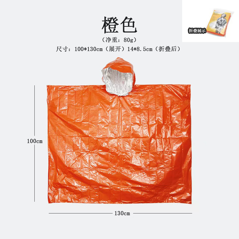 고객 맞춤형 알루미늄 필름 단열 야외용 일회용 PE 오렌지색 구급 우비 탐험용 우비 두꺼운 생존 담요 도매