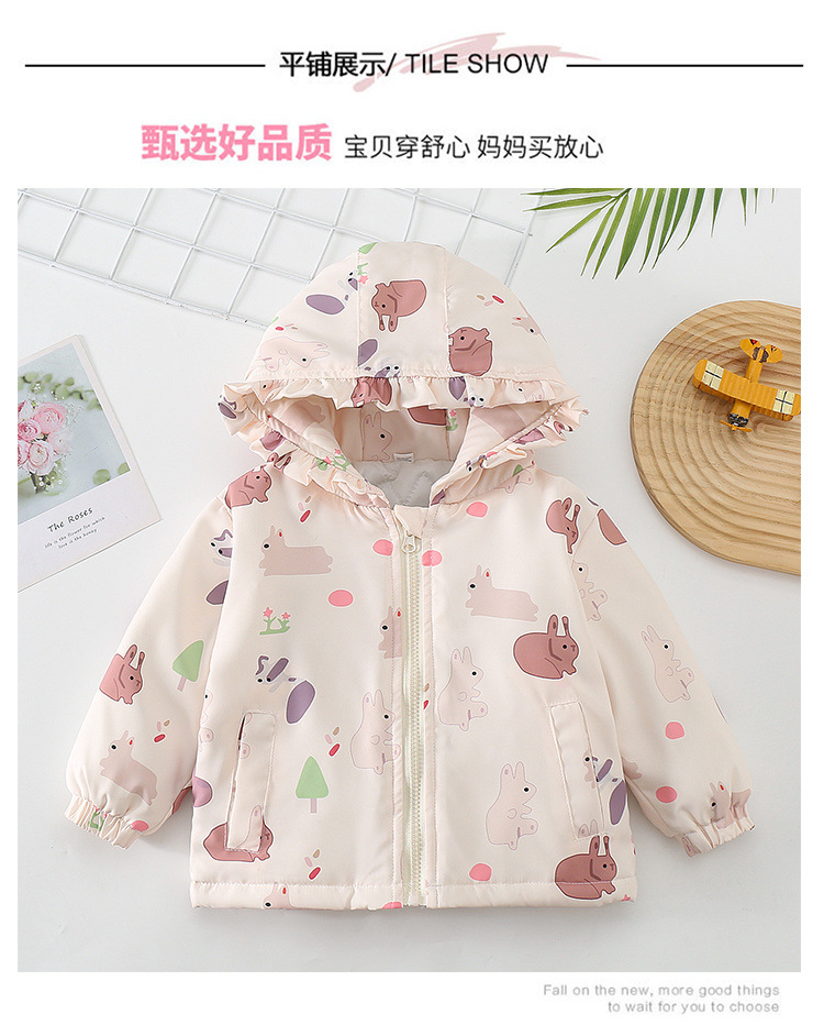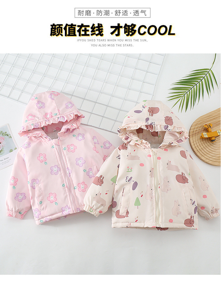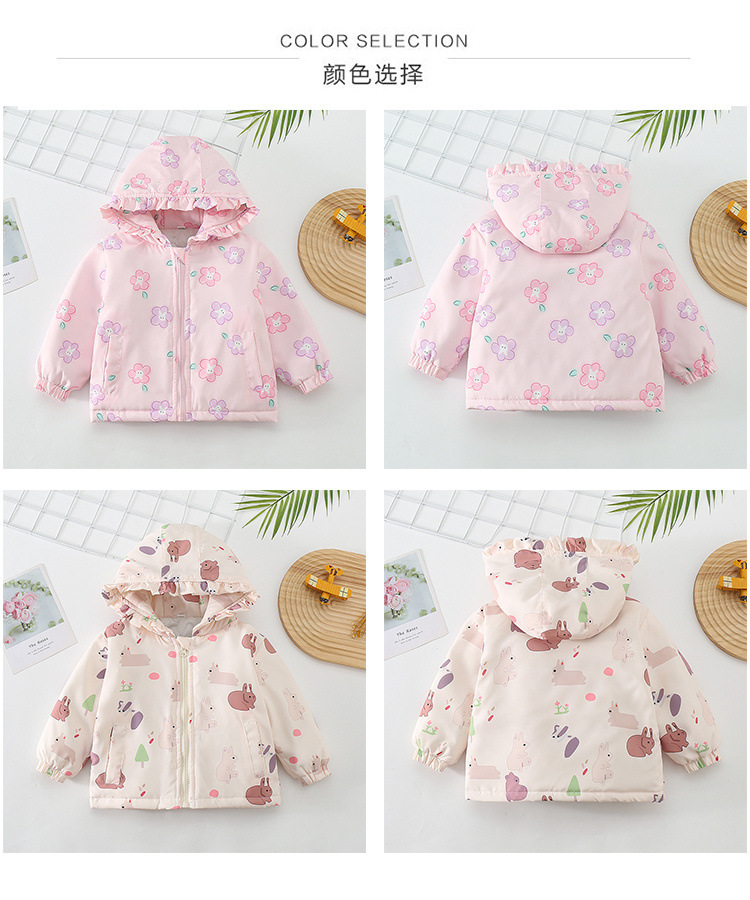 소녀의 봄과 가을 재킷 2025 새로운 도착 아기 소녀의 두 코튼 자켓 중소 어린이 캐주얼 자켓 트렌디 후드 코트