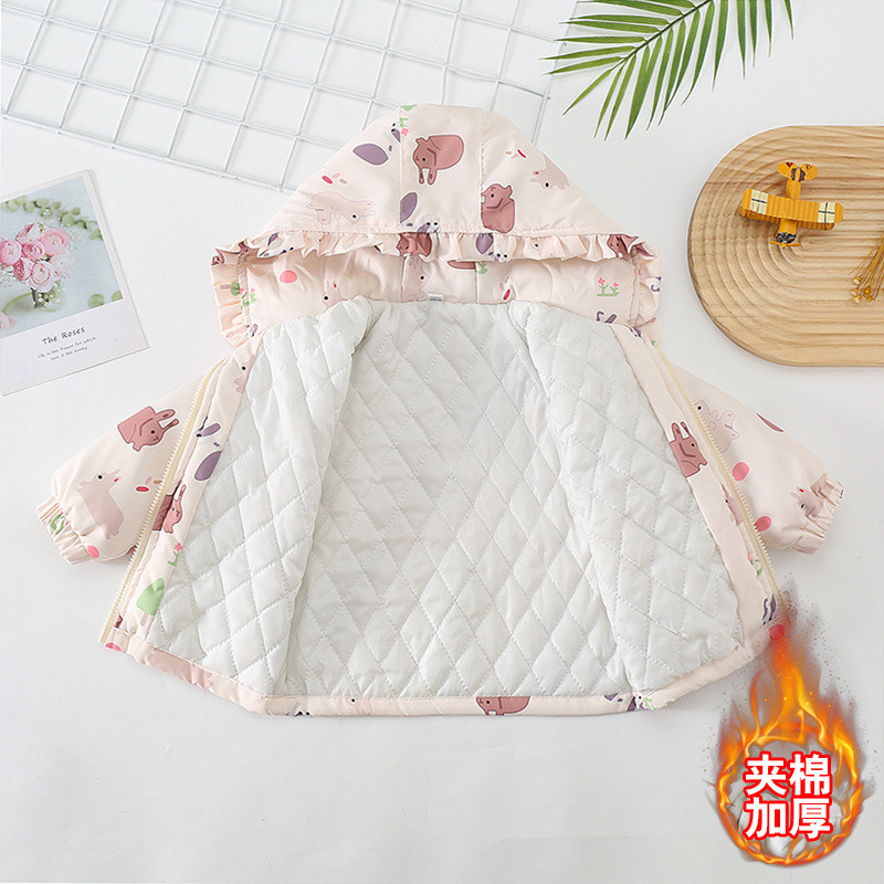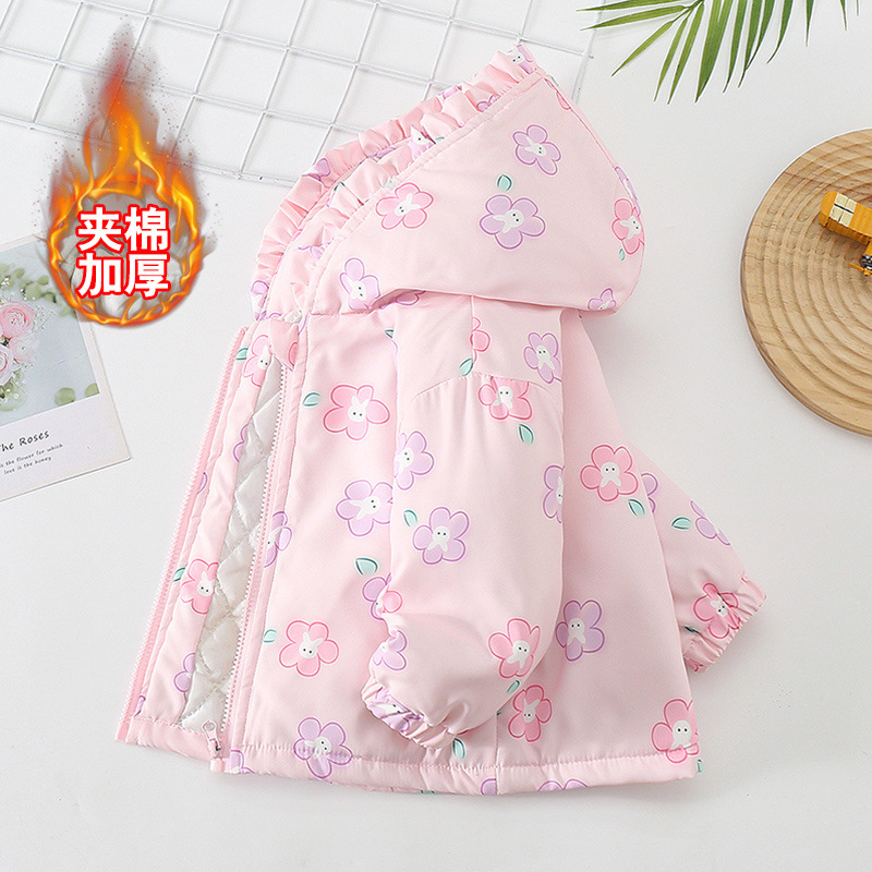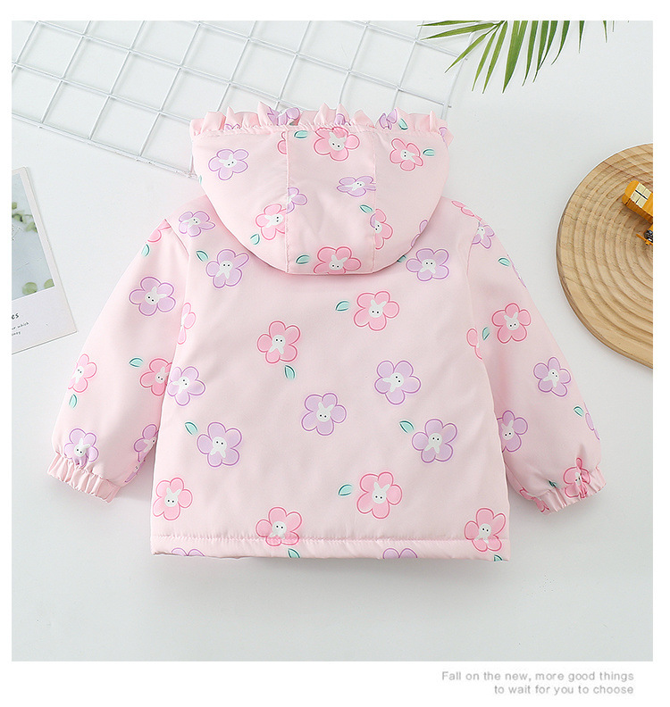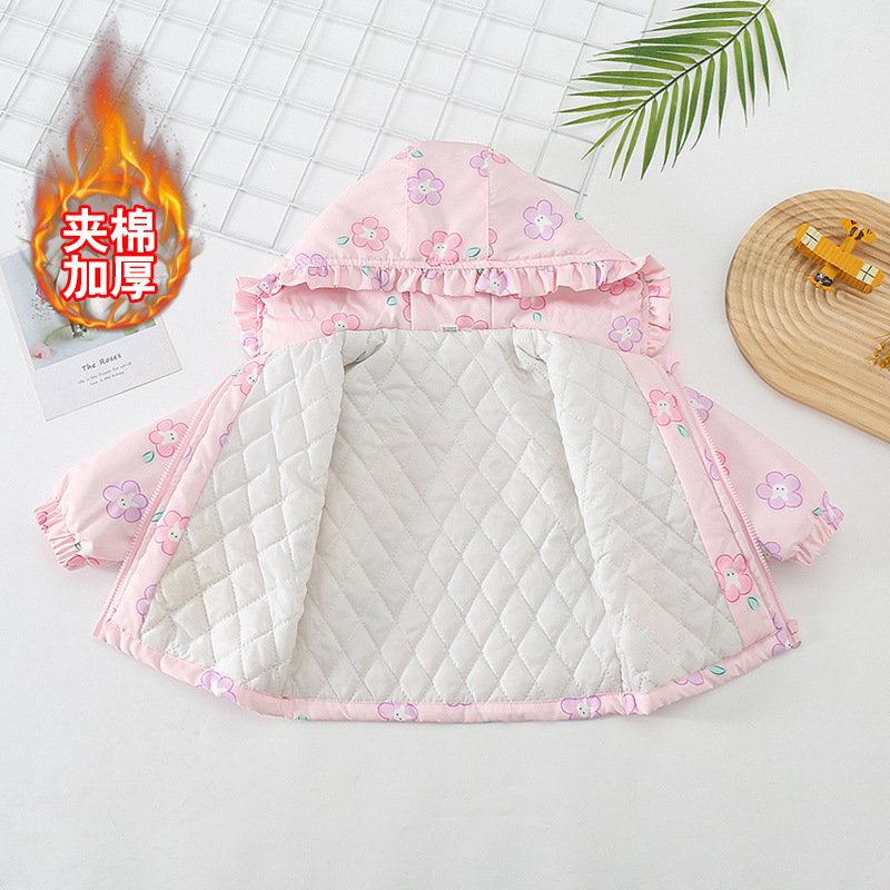 소녀의 봄과 가을 재킷 2025 새로운 도착 아기 소녀의 두 코튼 자켓 중소 어린이 캐주얼 자켓 트렌디 후드 코트스토어 가기