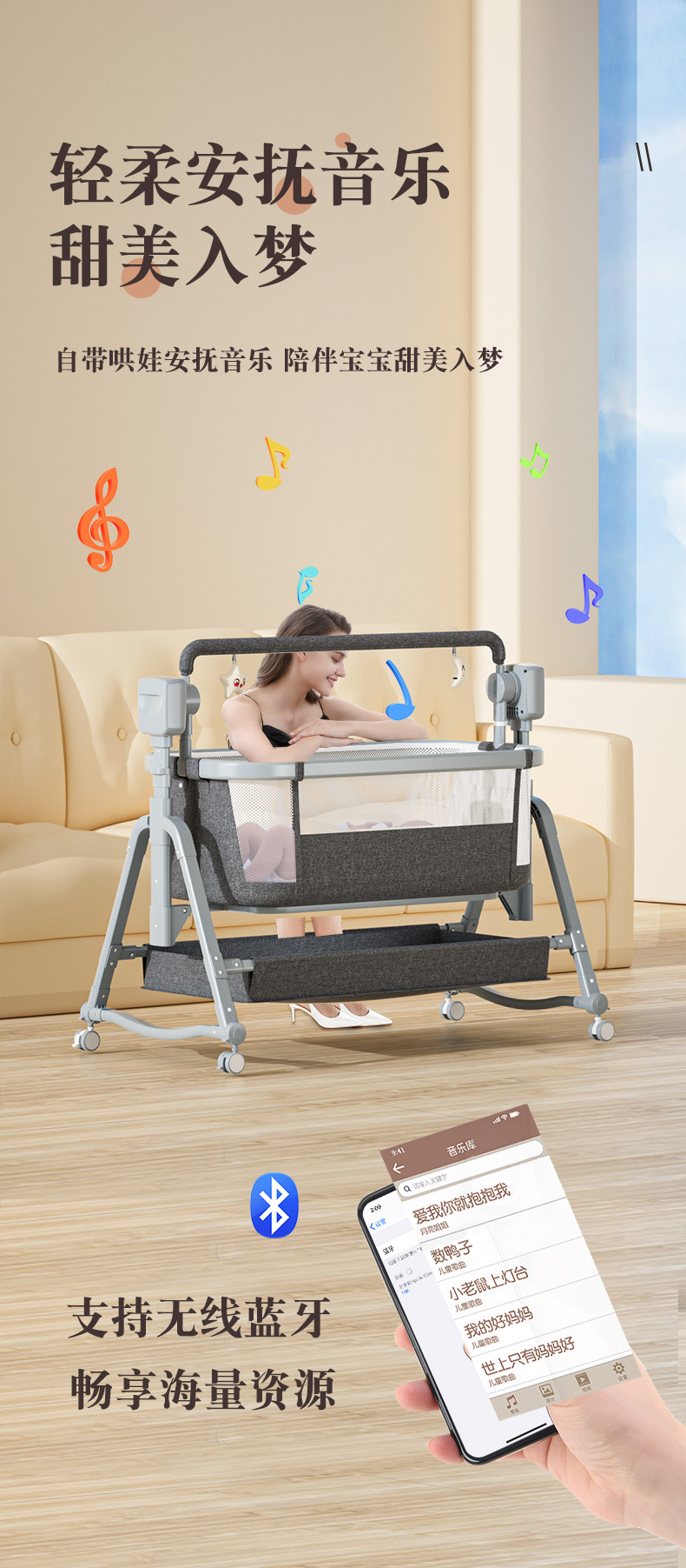 국경 간 아기 다기능 전기 요람 흔들 침대 흔들 의자 신생아 스마트 아기 침대 침대 잠자는 바구니스토어 가기