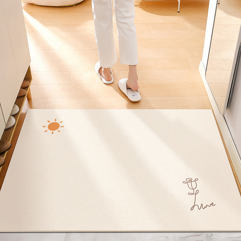 크림색 현관 매트, 문앞 매트, 닦을 수 있고 자를 수 있는 가정용 방수 및 방유 가죽 매트, 귀여운 동물 디자인스토어 가기