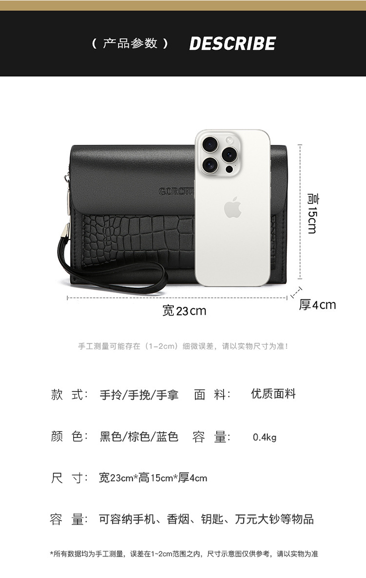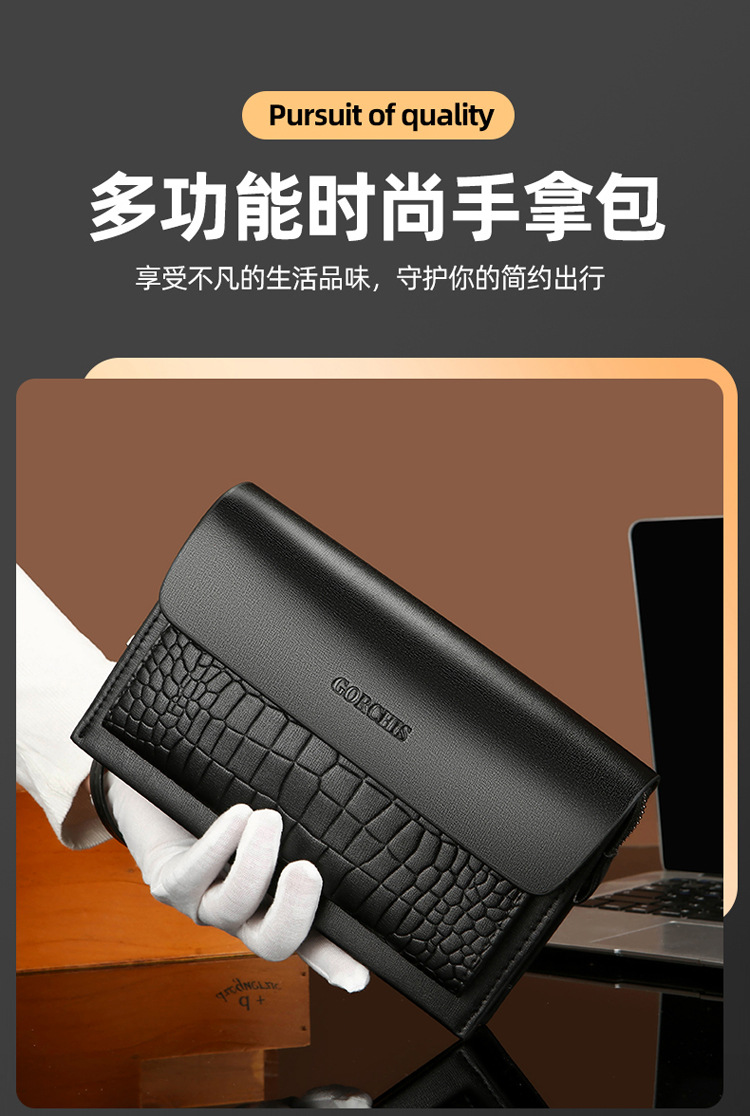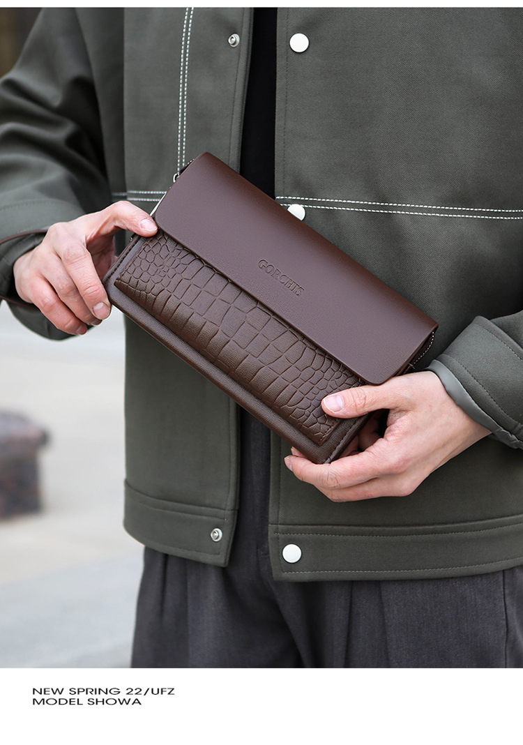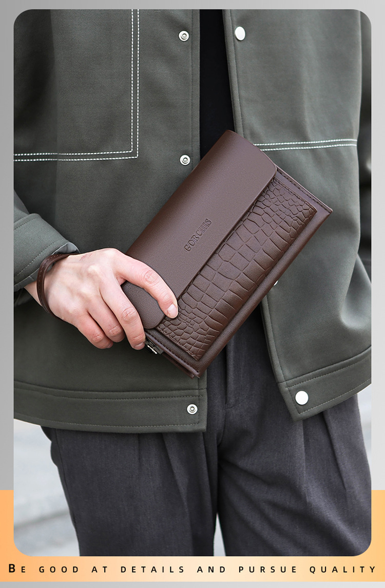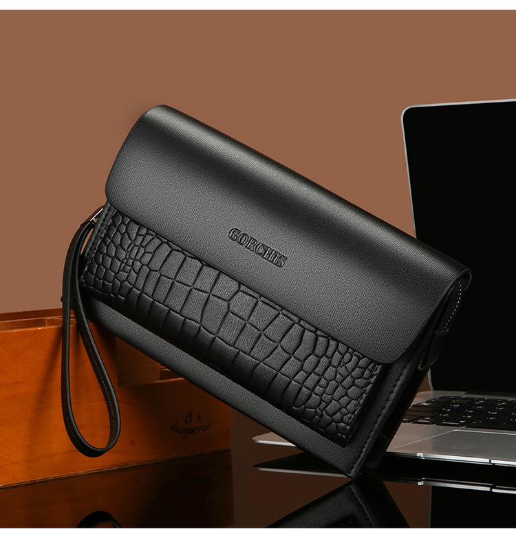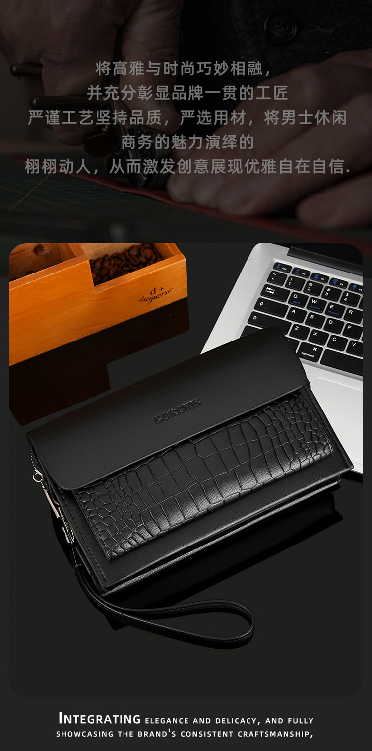 새로운 남성용 클러치 백 조합 잠금 악어 패턴 핸드 백 지갑 멀티 카드 트렌디 남성용 소프트 가죽 클러치 백