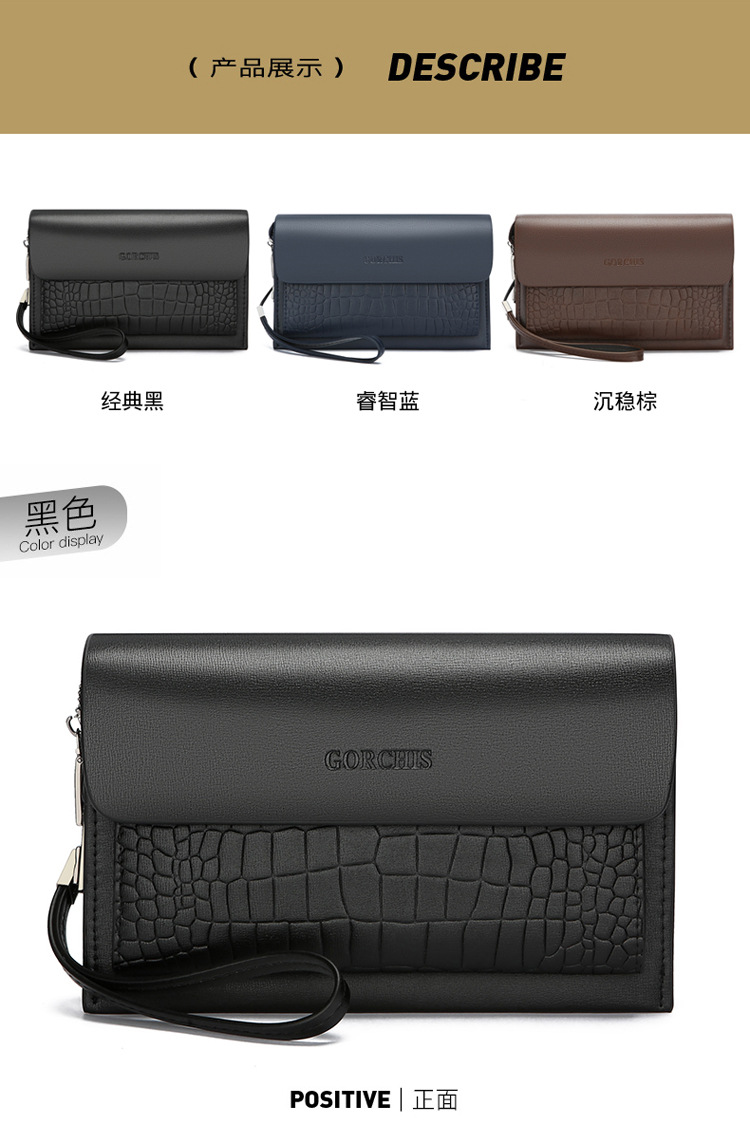 새로운 남성용 클러치 백 조합 잠금 악어 패턴 핸드 백 지갑 멀티 카드 트렌디 남성용 소프트 가죽 클러치 백스토어 가기