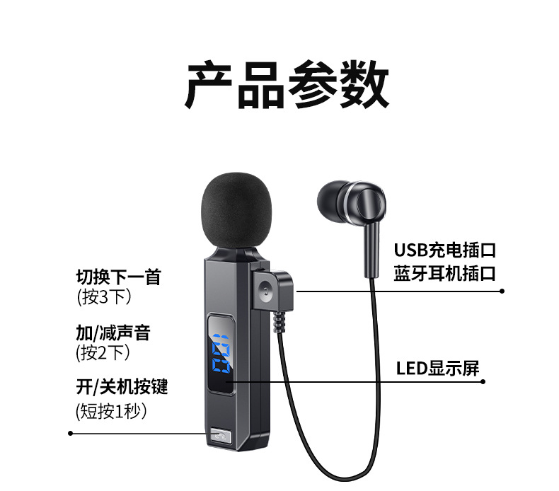 M1 마이크 이어폰 블루투스 무선 스포츠 클립형 사이클링 운전 통화 소음 감소 라이브 방송 노래방 이어폰