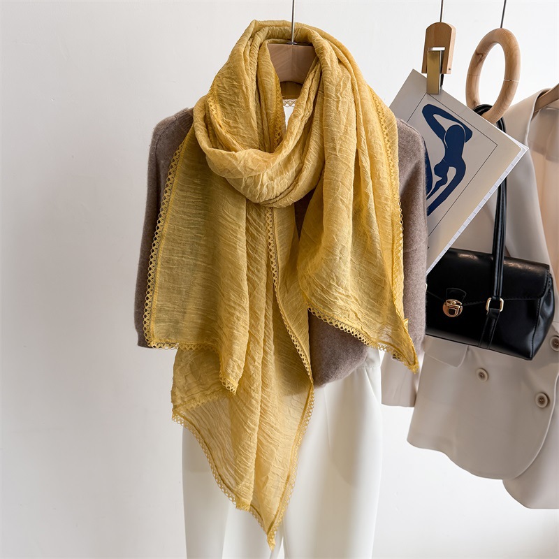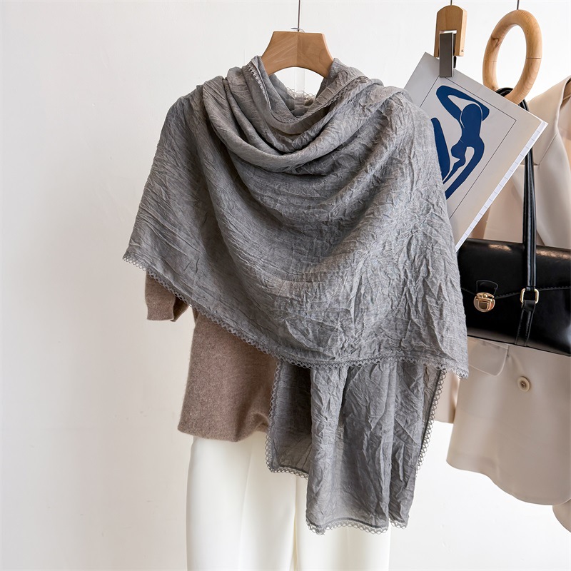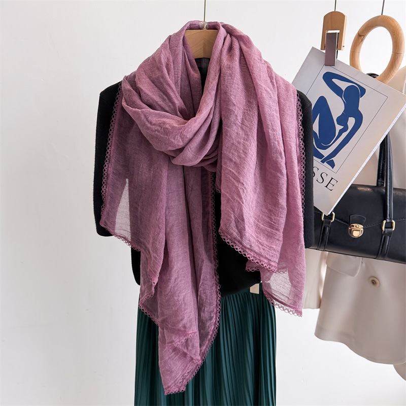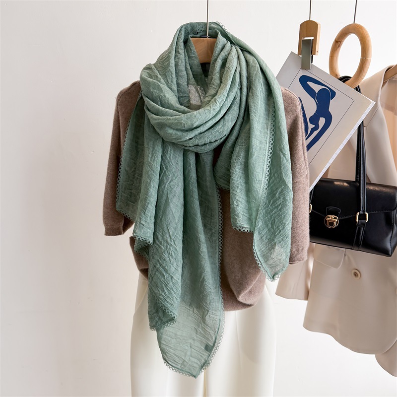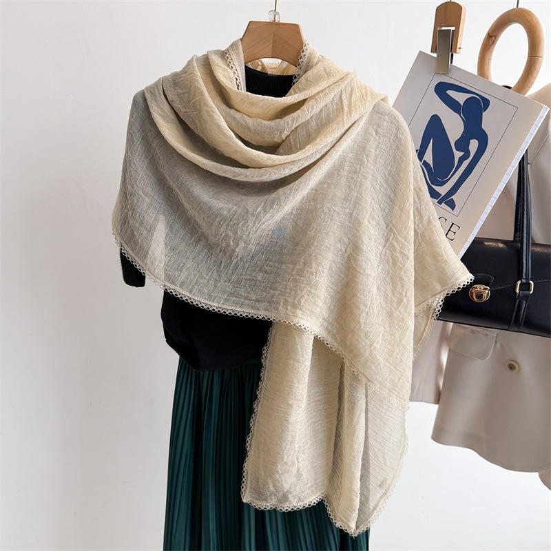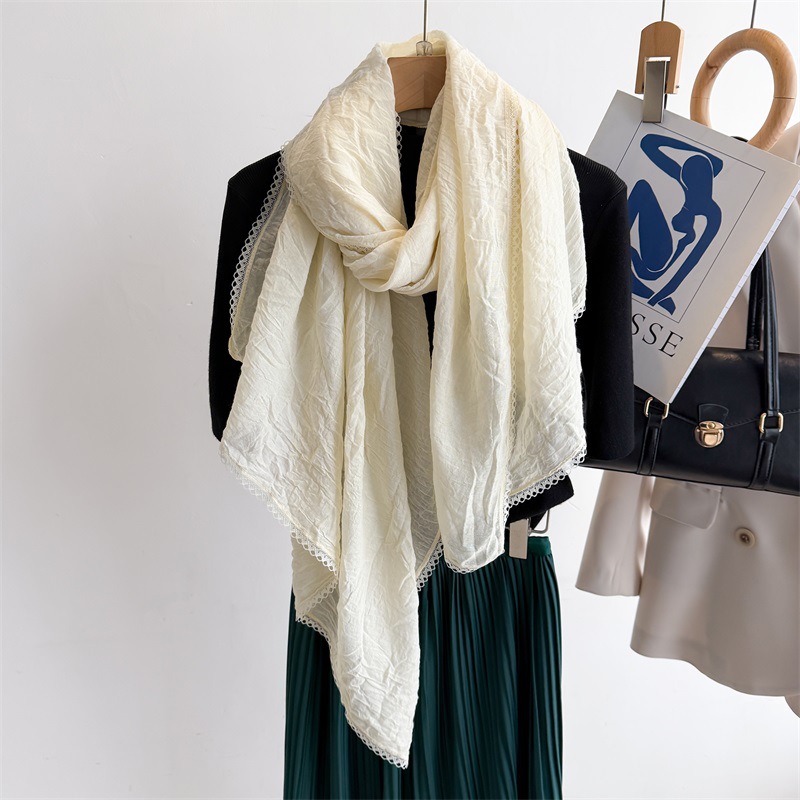 리넨 레이스 하이 엔드 센스 봄과 여름 솔리드 컬러 주름 스카프 여성 일본인과 한국의 우아한 올매치 코튼 및 리넨 스카프 목도리