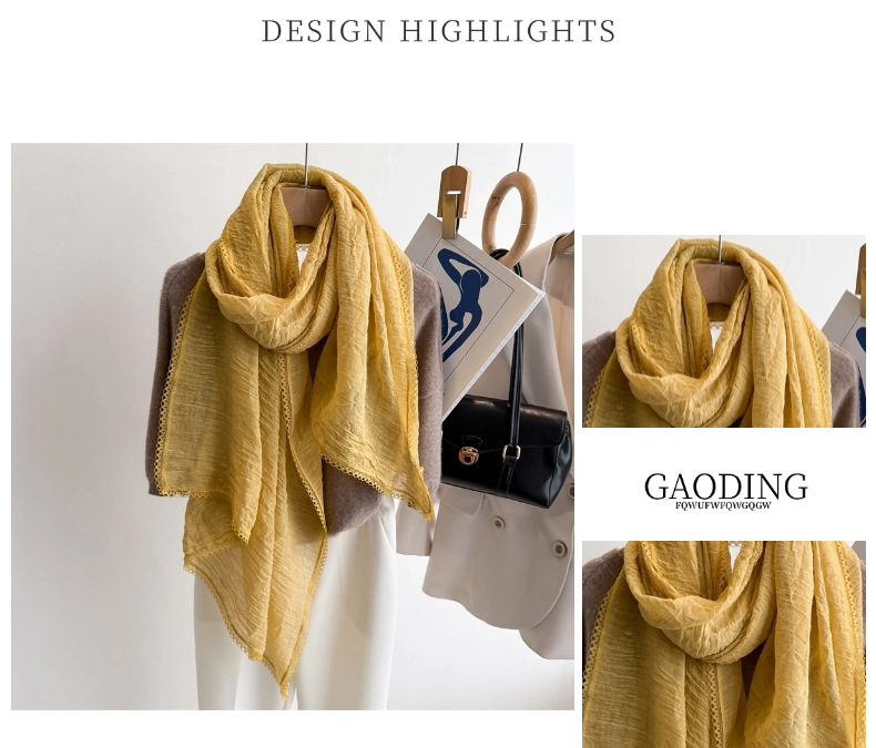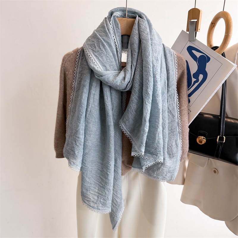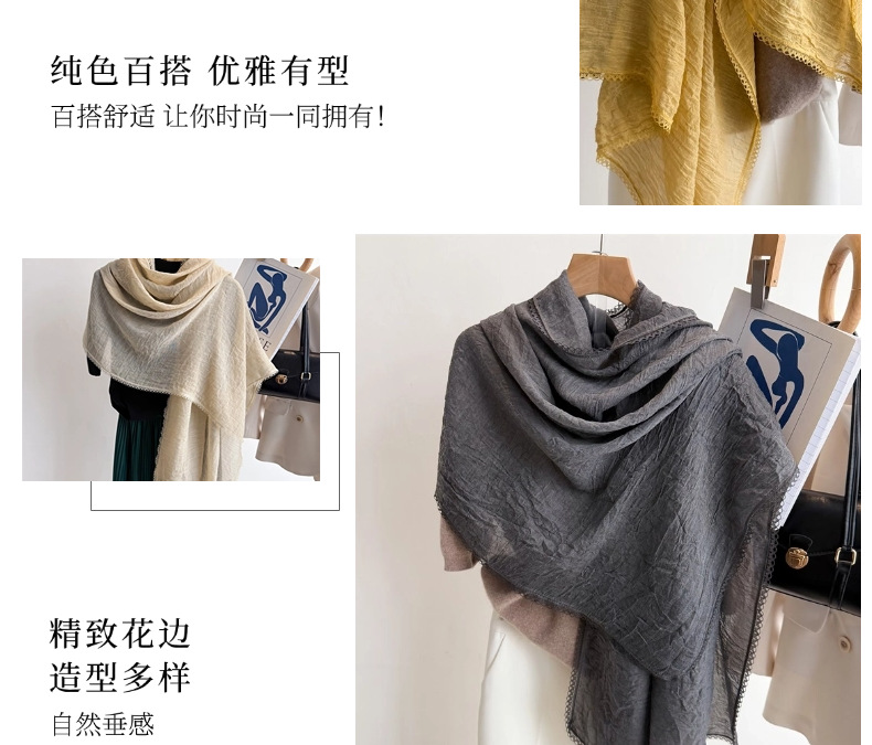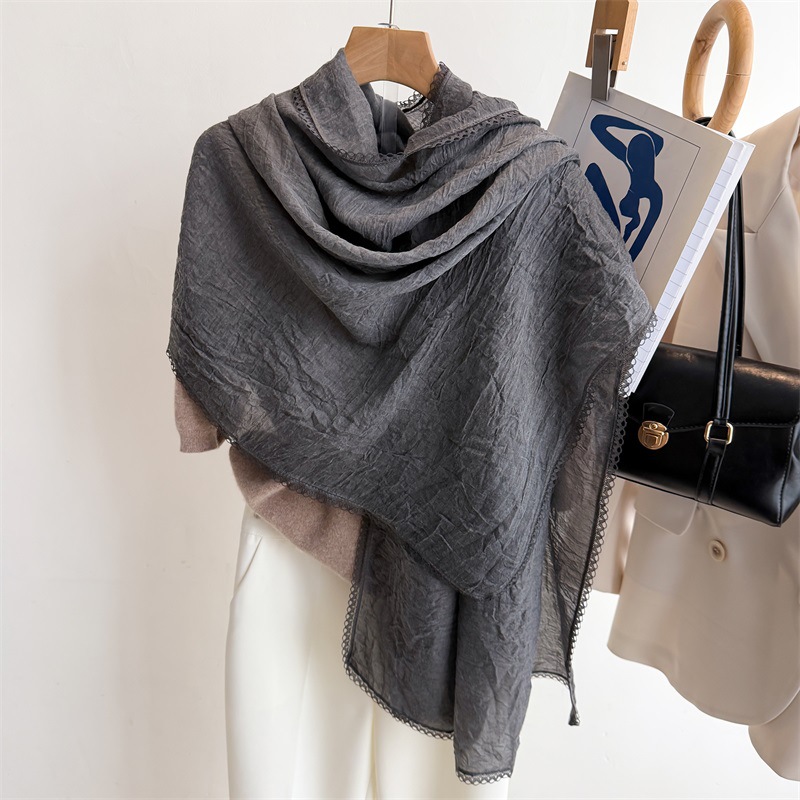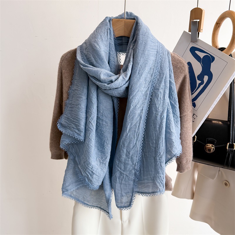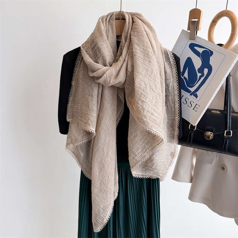 리넨 레이스 하이 엔드 센스 봄과 여름 솔리드 컬러 주름 스카프 여성 일본인과 한국의 우아한 올매치 코튼 및 리넨 스카프 목도리