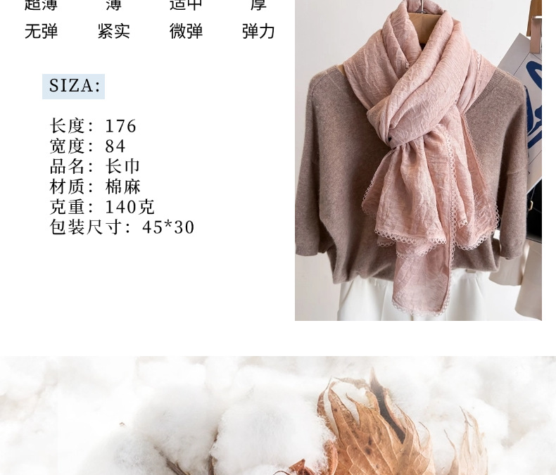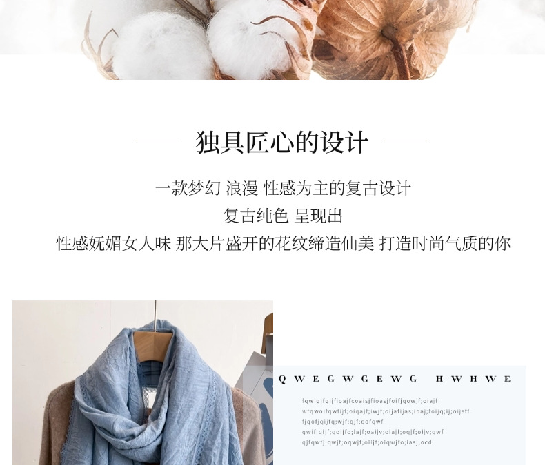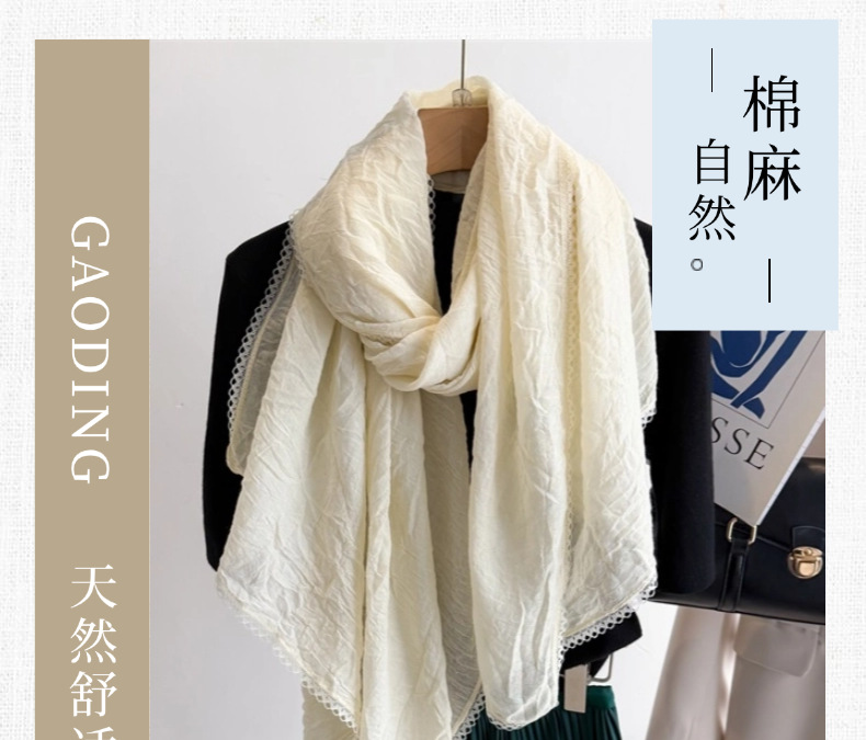 리넨 레이스 하이 엔드 센스 봄과 여름 솔리드 컬러 주름 스카프 여성 일본인과 한국의 우아한 올매치 코튼 및 리넨 스카프 목도리스토어 가기