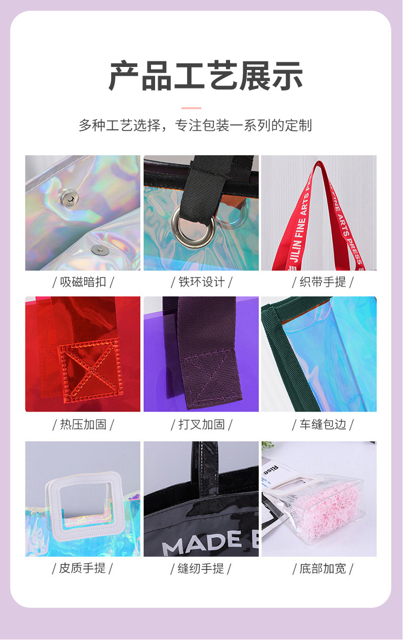 PVC 투명 핸드백, 고급 웨딩 캔디 선물 가방, 플라스틱 선물 가방, 다채로운 레이저 가방 맞춤 제작스토어 가기