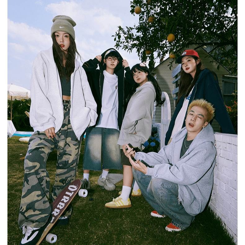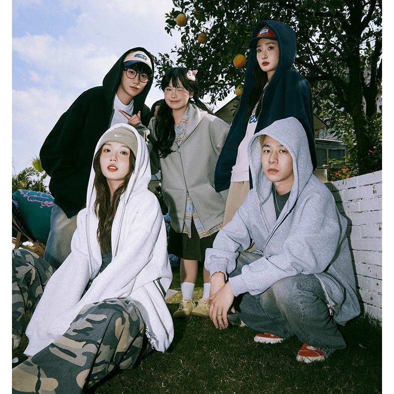 더블 지퍼 헤비 스웨터 재킷 남자 봄과 가을 재킷 커플 올 매치 솔리드 컬러 탑 아메리칸 후드 카디건스토어 가기