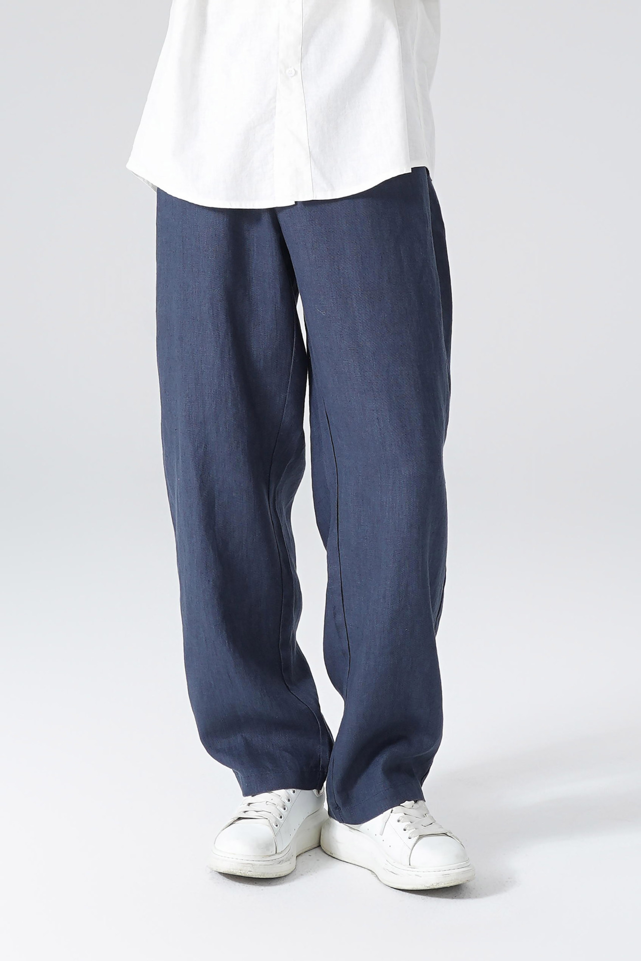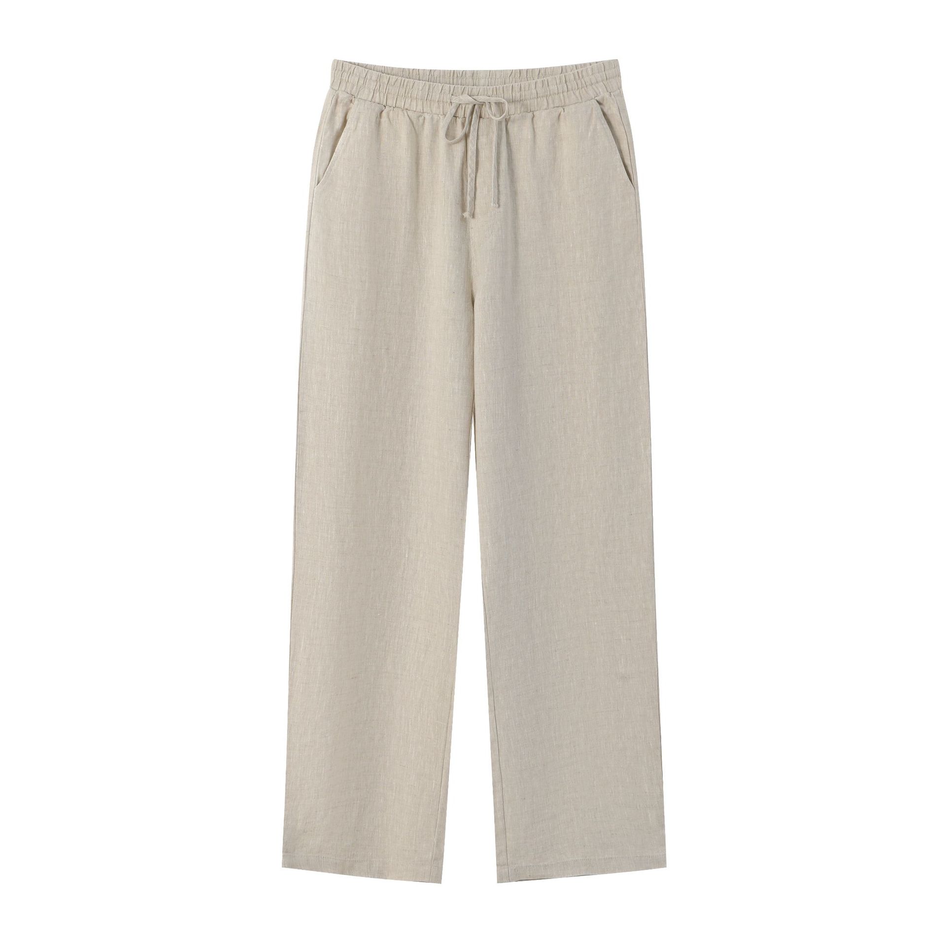 고품질 100% 린넨 남성 바지 봄 가을용 루즈핏 스트레이트 캐주얼 레트로 트렌드 한국 대형 사이즈스토어 가기