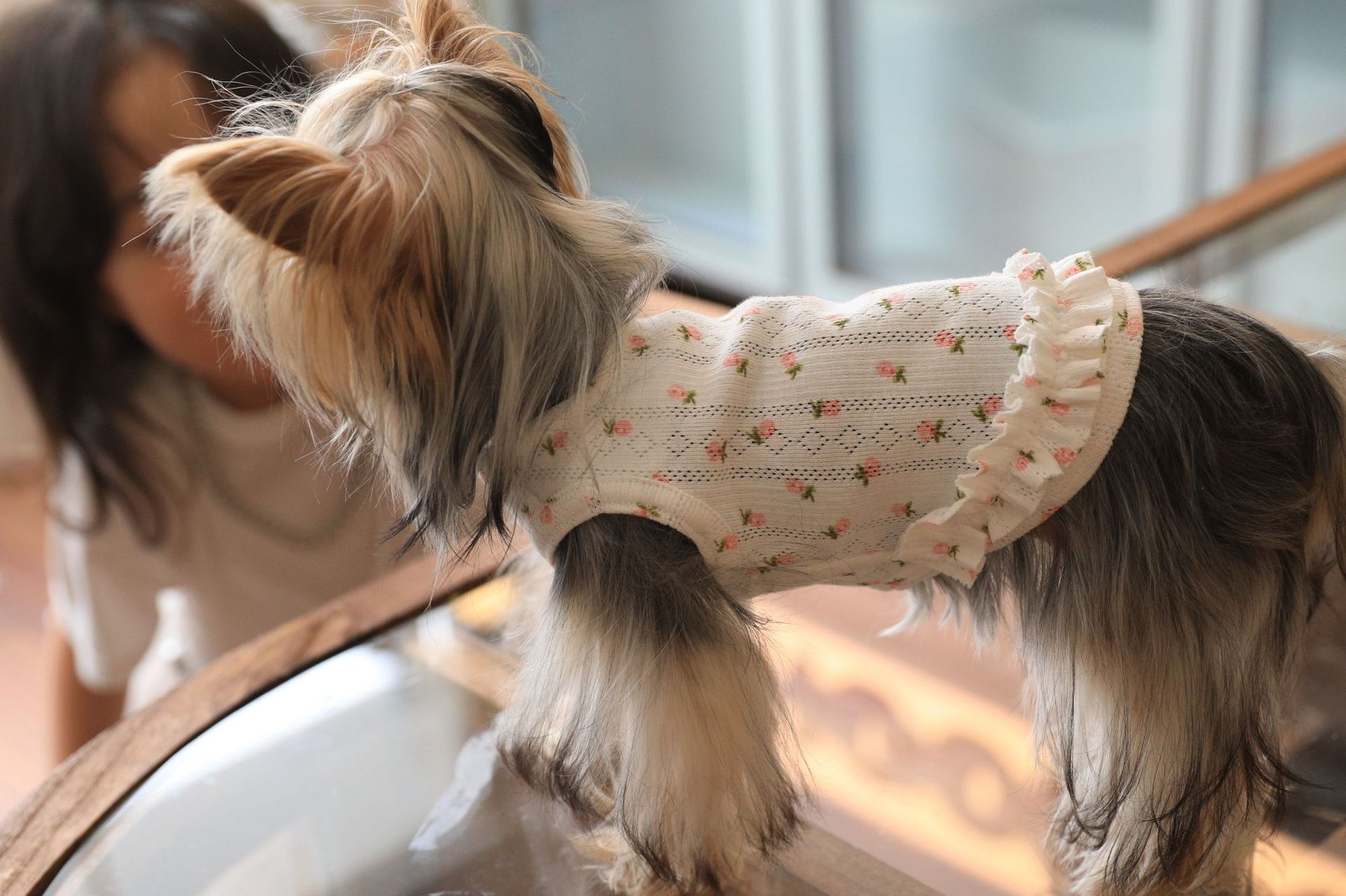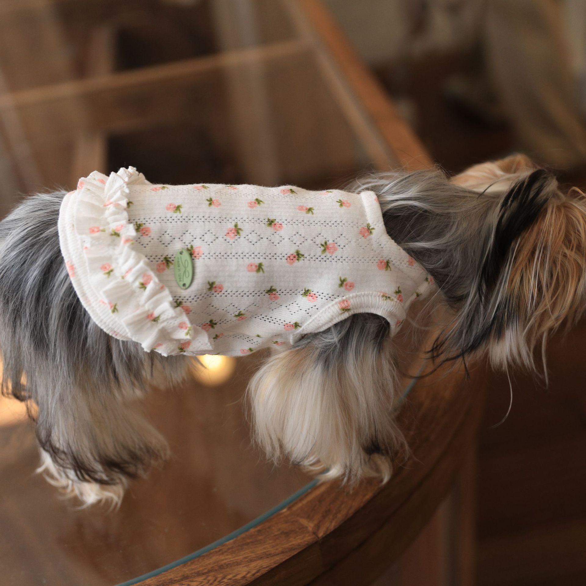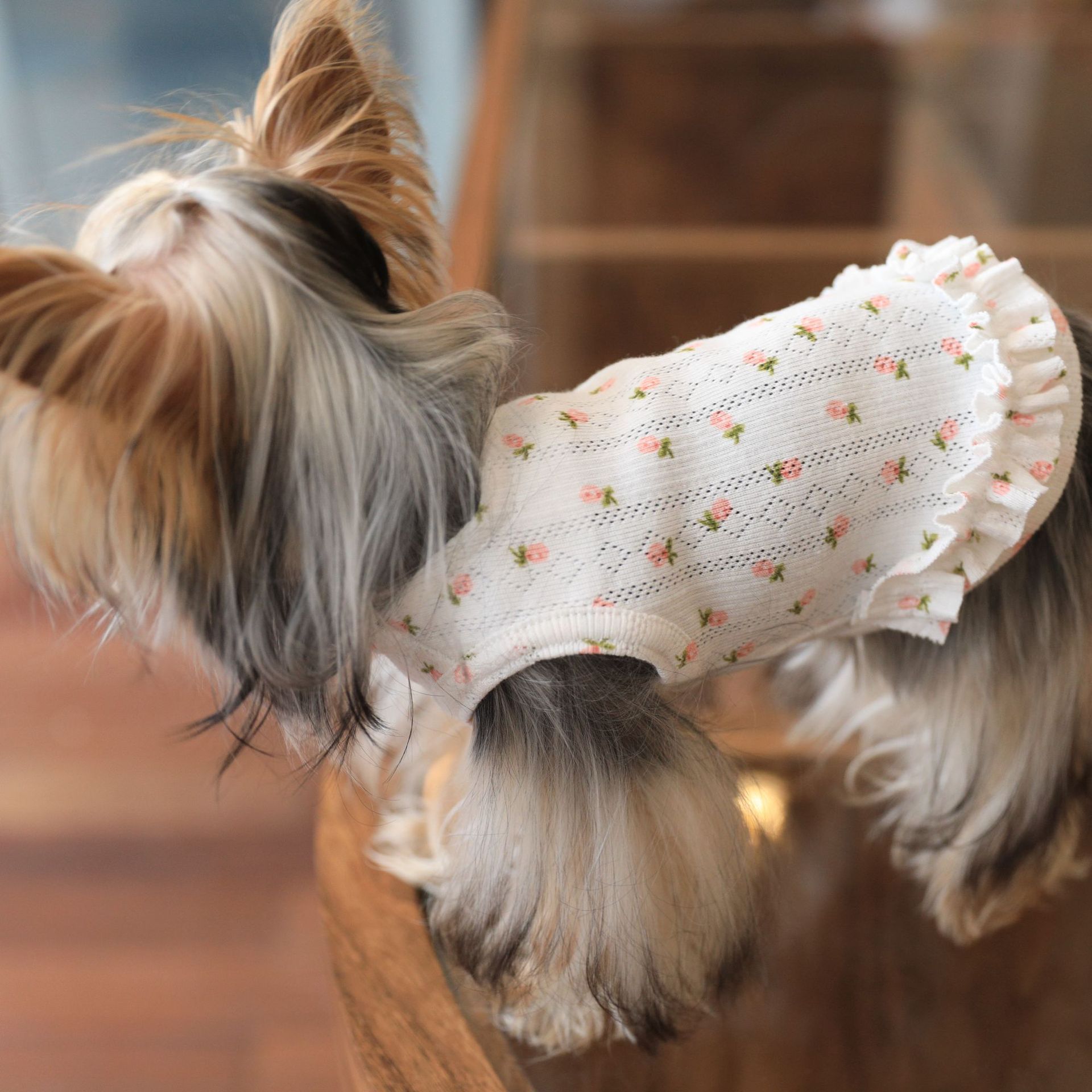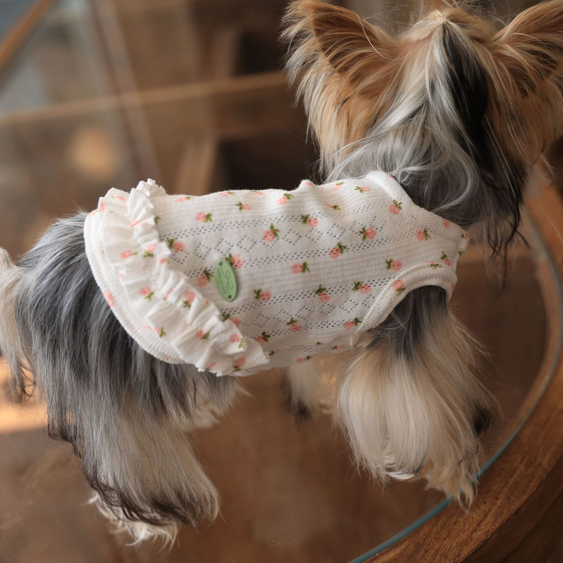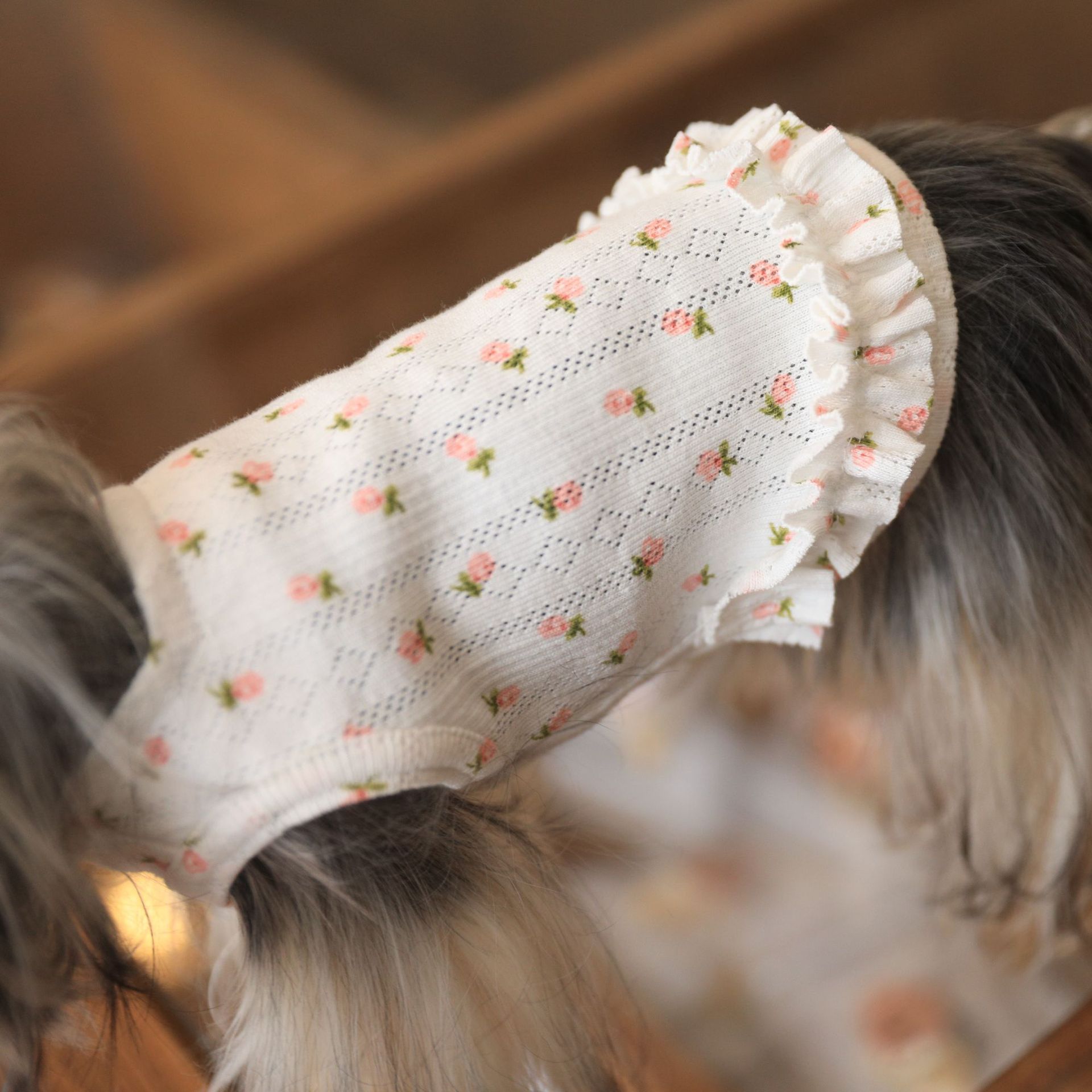 면 부드러운 꽃 인쇄 티셔츠 고양이 쓴 곰 요크셔 개 애완 동물 옷스토어 가기