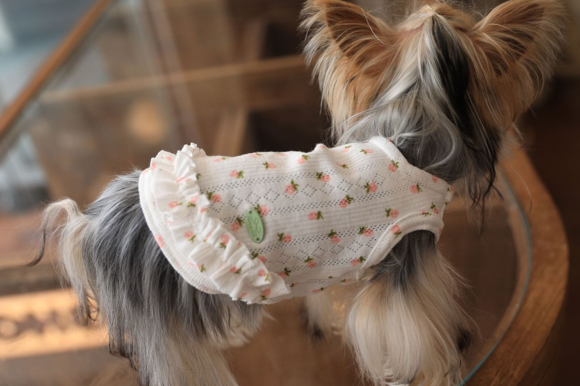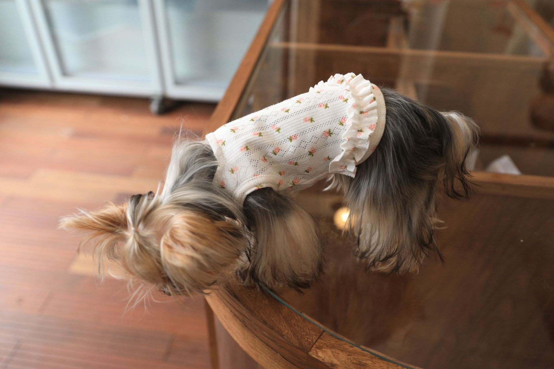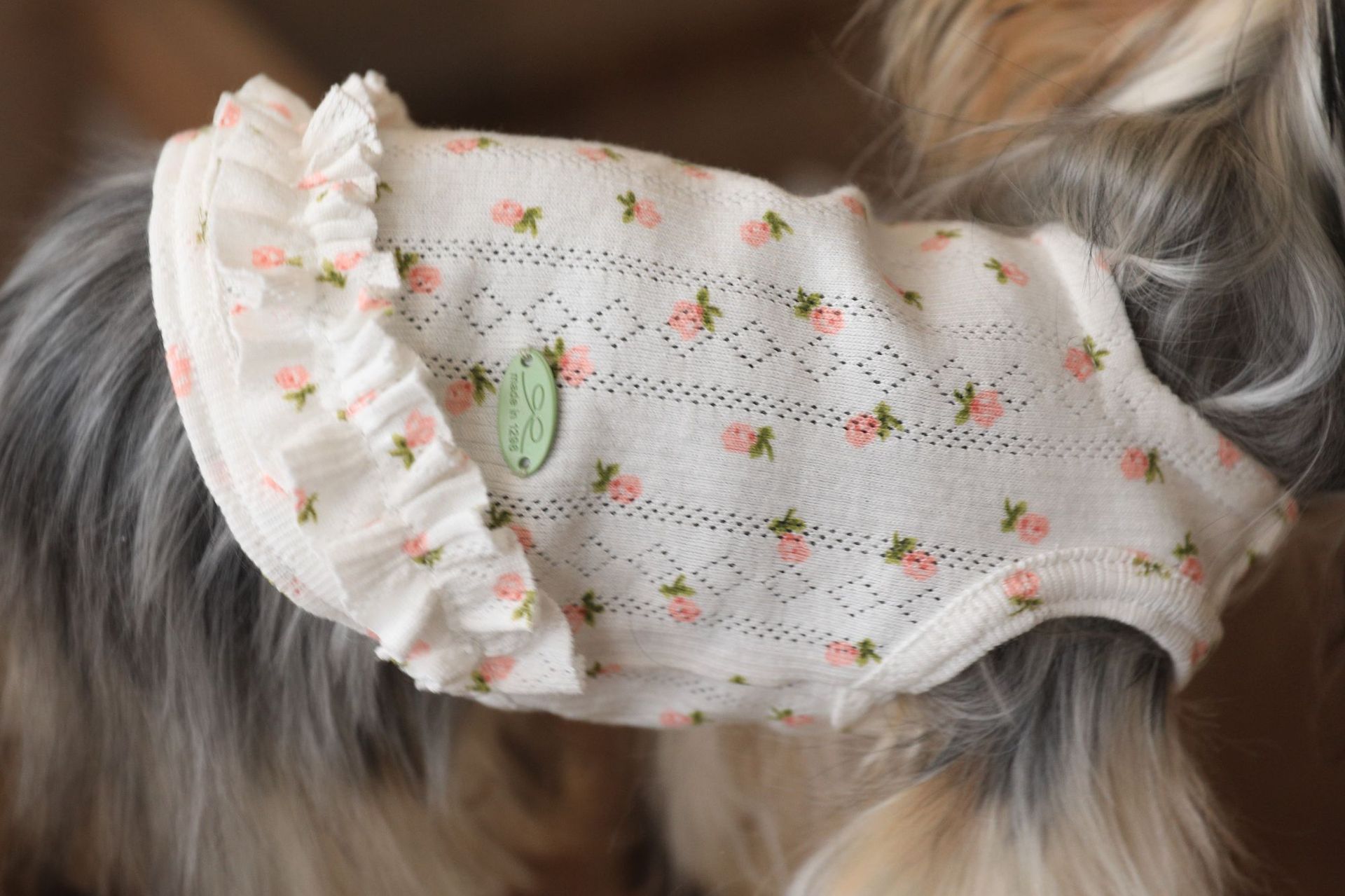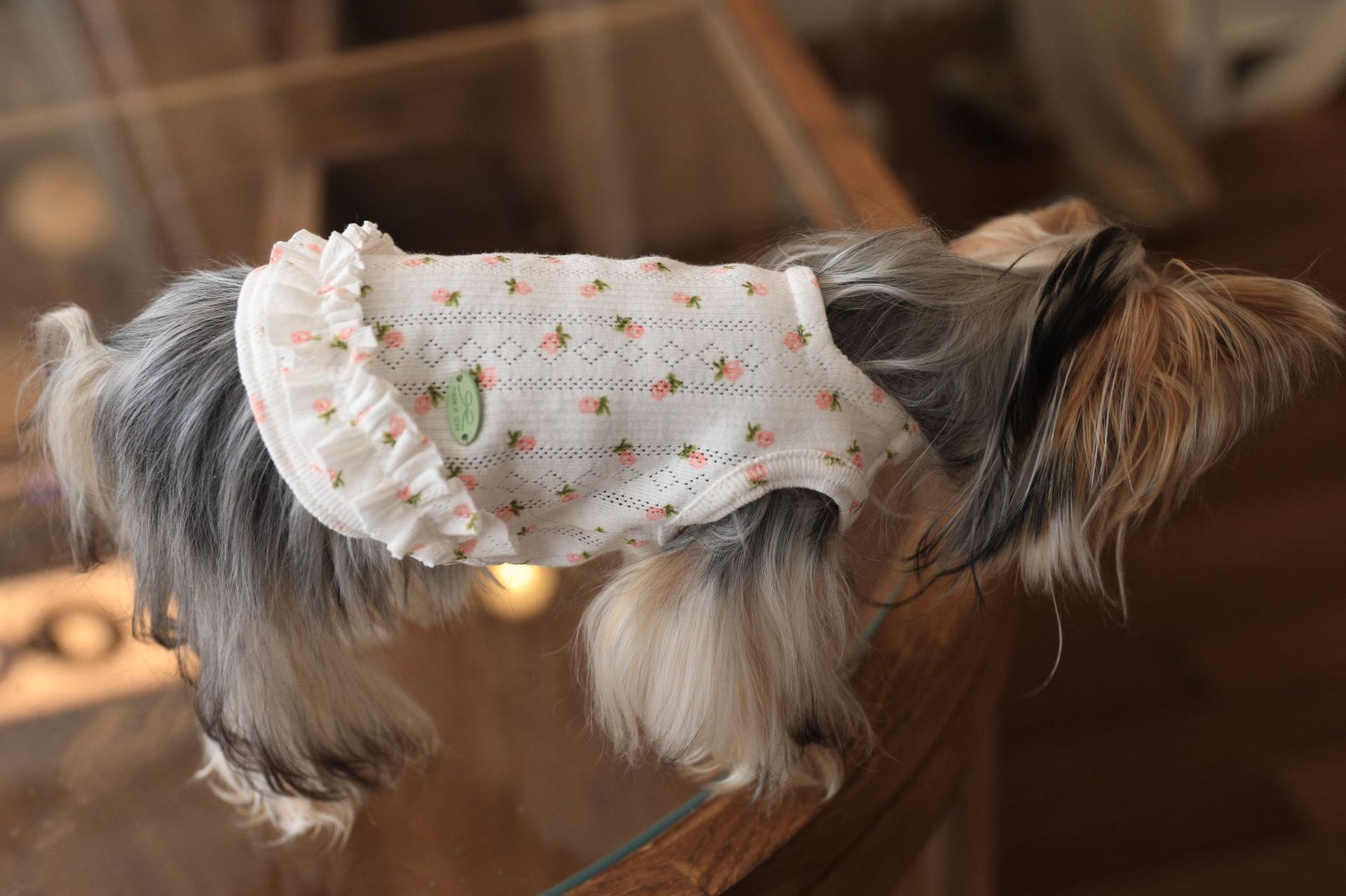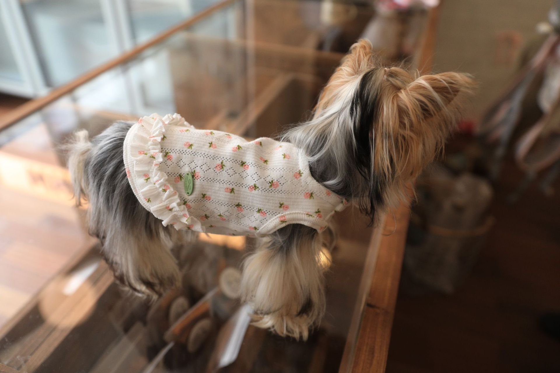 면 부드러운 꽃 인쇄 티셔츠 고양이 쓴 곰 요크셔 개 애완 동물 옷스토어 가기