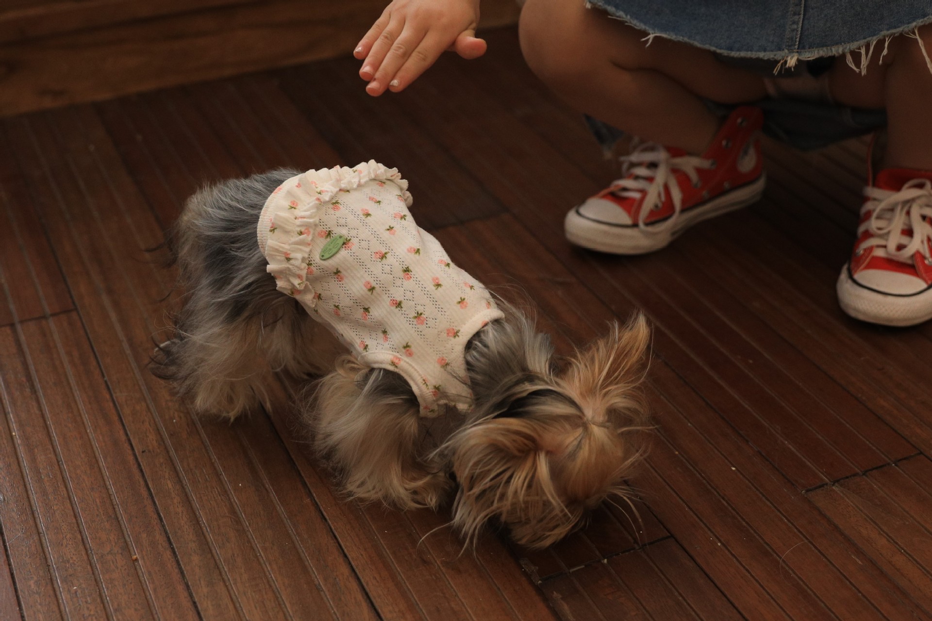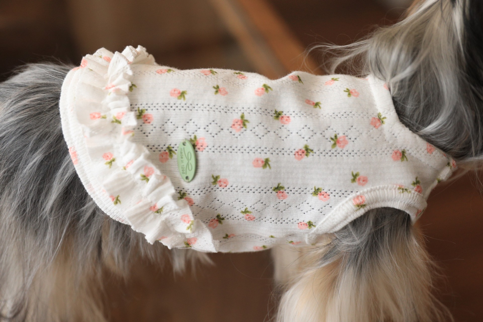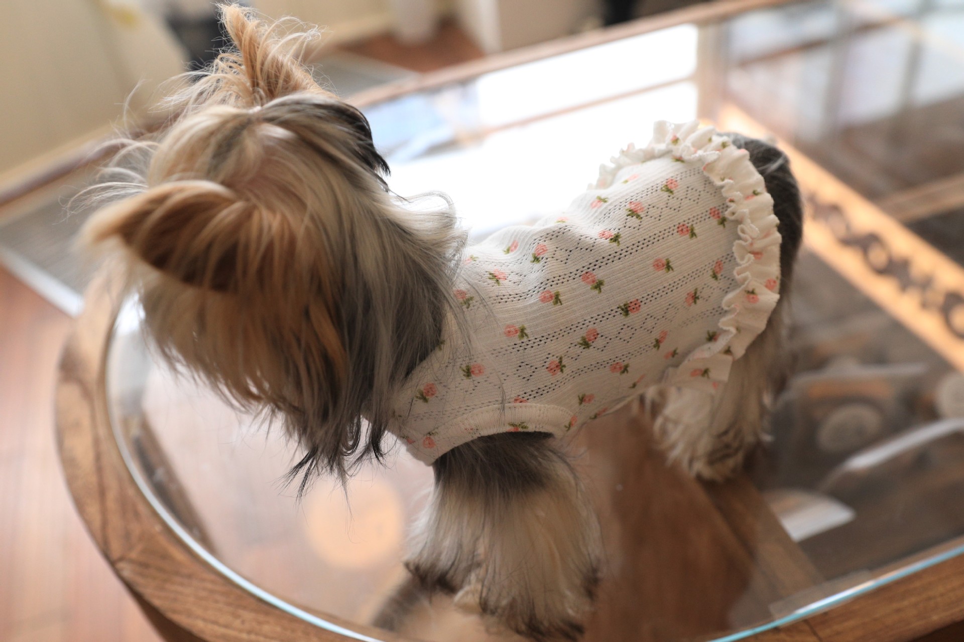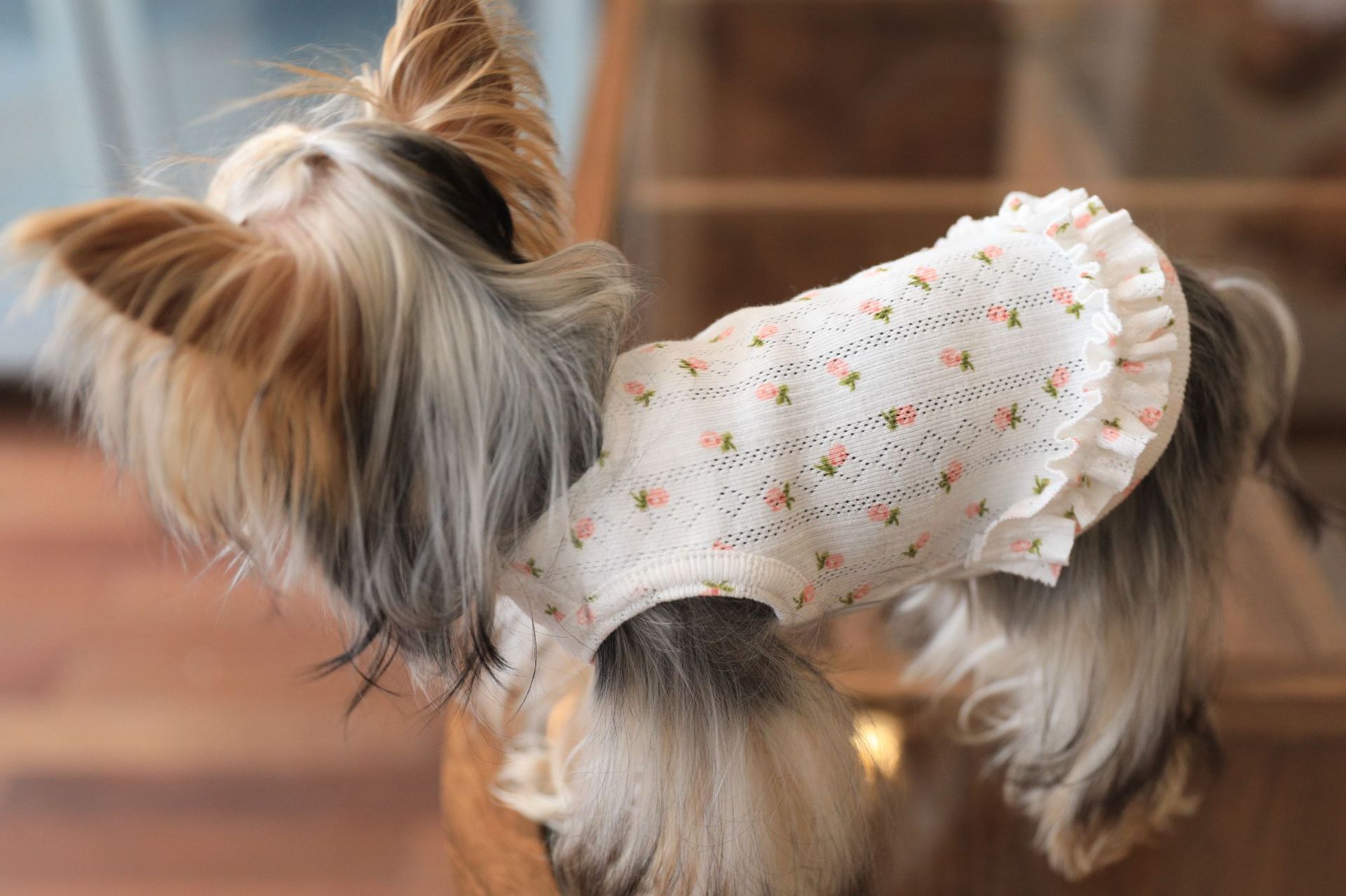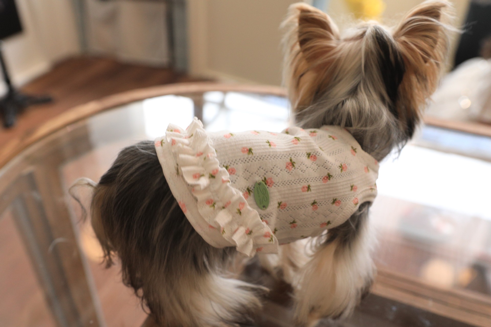 면 부드러운 꽃 인쇄 티셔츠 고양이 쓴 곰 요크셔 개 애완 동물 옷스토어 가기