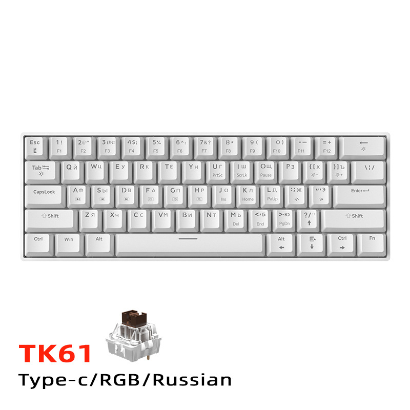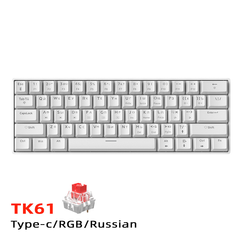 TK61 러시아 유선 전기 경쟁 기계 키보드 RGB 맞춤형 핫 플러그 레드 샤프트 차 샤프트 게임 기계 키보드스토어 가기