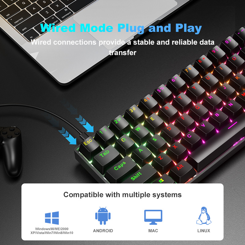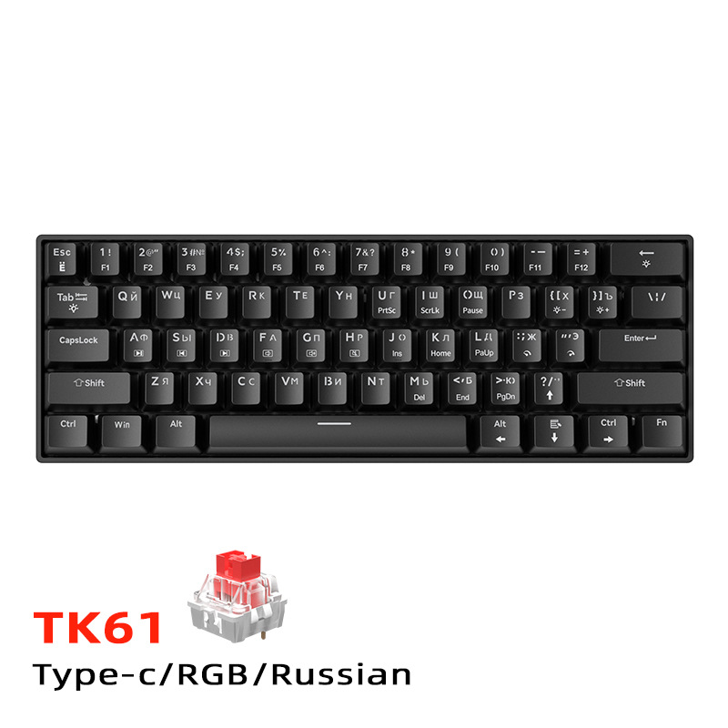 TK61 러시아 유선 전기 경쟁 기계 키보드 RGB 맞춤형 핫 플러그 레드 샤프트 차 샤프트 게임 기계 키보드