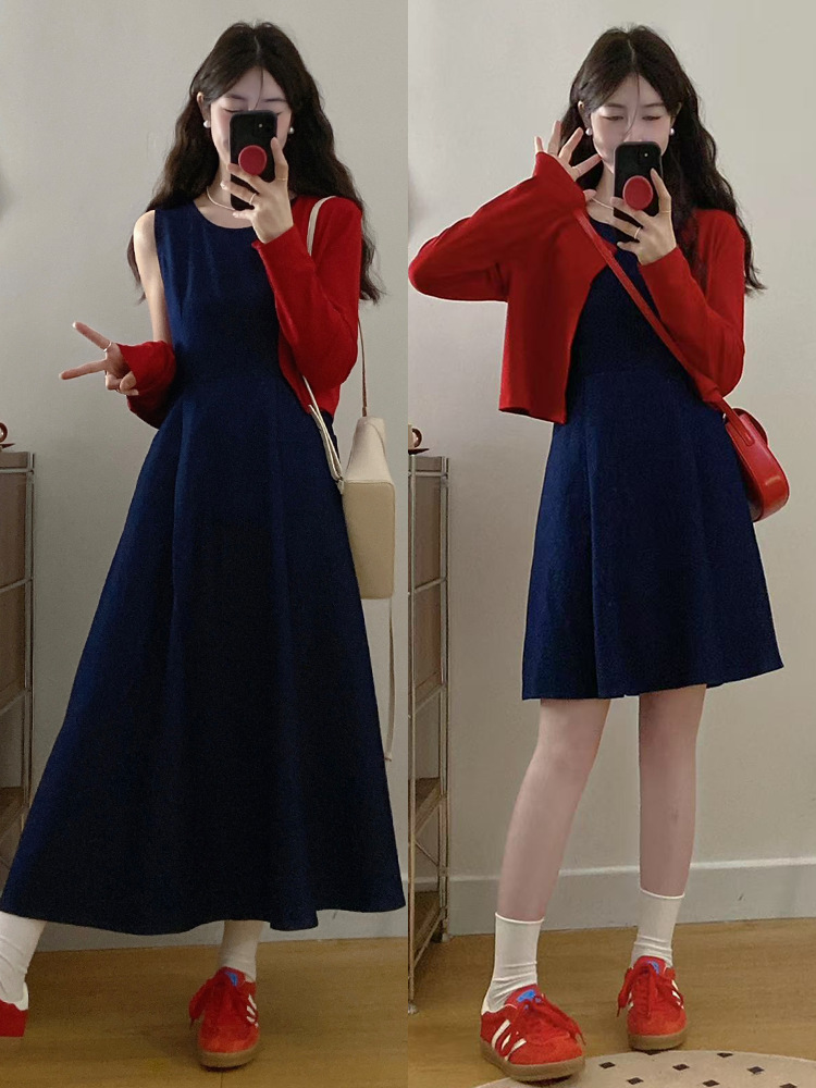 2026년 여름 신상품 플러스 사이즈 여성 의류 뚱뚱한 여성을 위한 새로운 데님 조끼 허리 조절 원피스+긴팔 숄스토어 가기